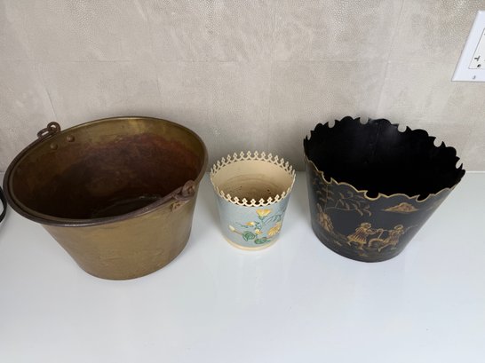 Toll Planters And Antique Brass Bucket