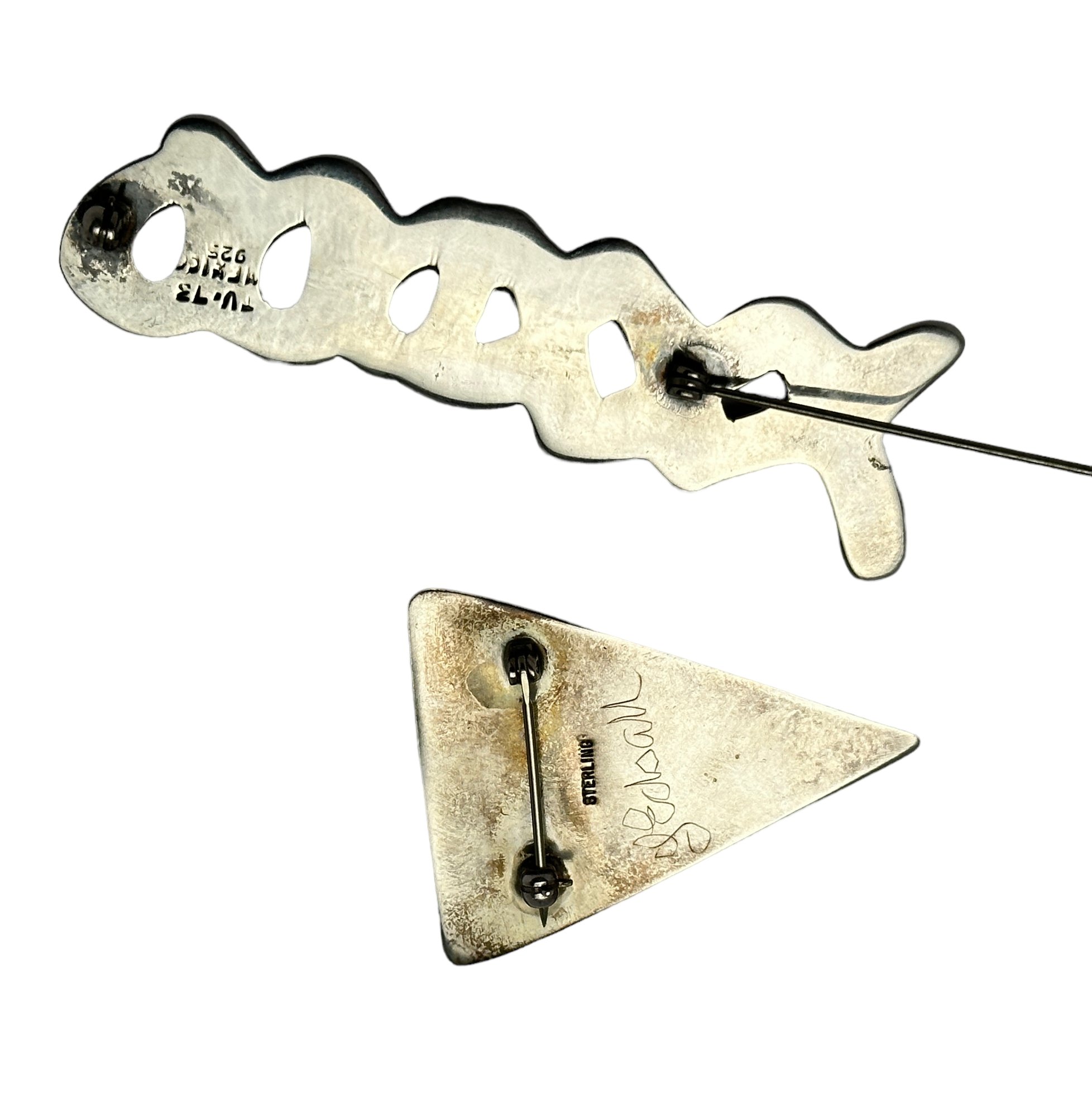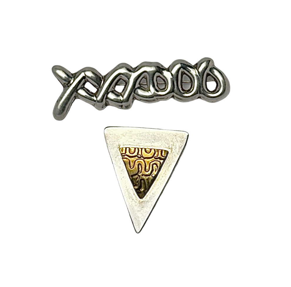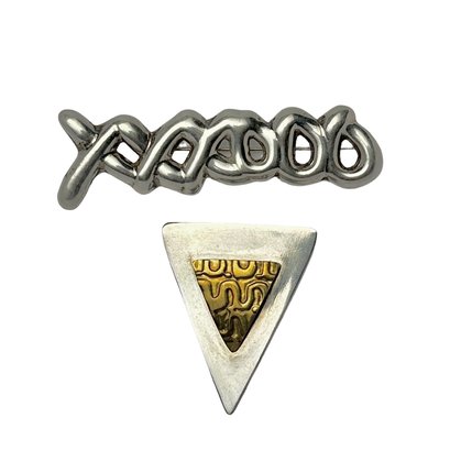Triangular two tone (Sterling Silver and Brass) Brooch Measures 1 1/2" W x 2" H