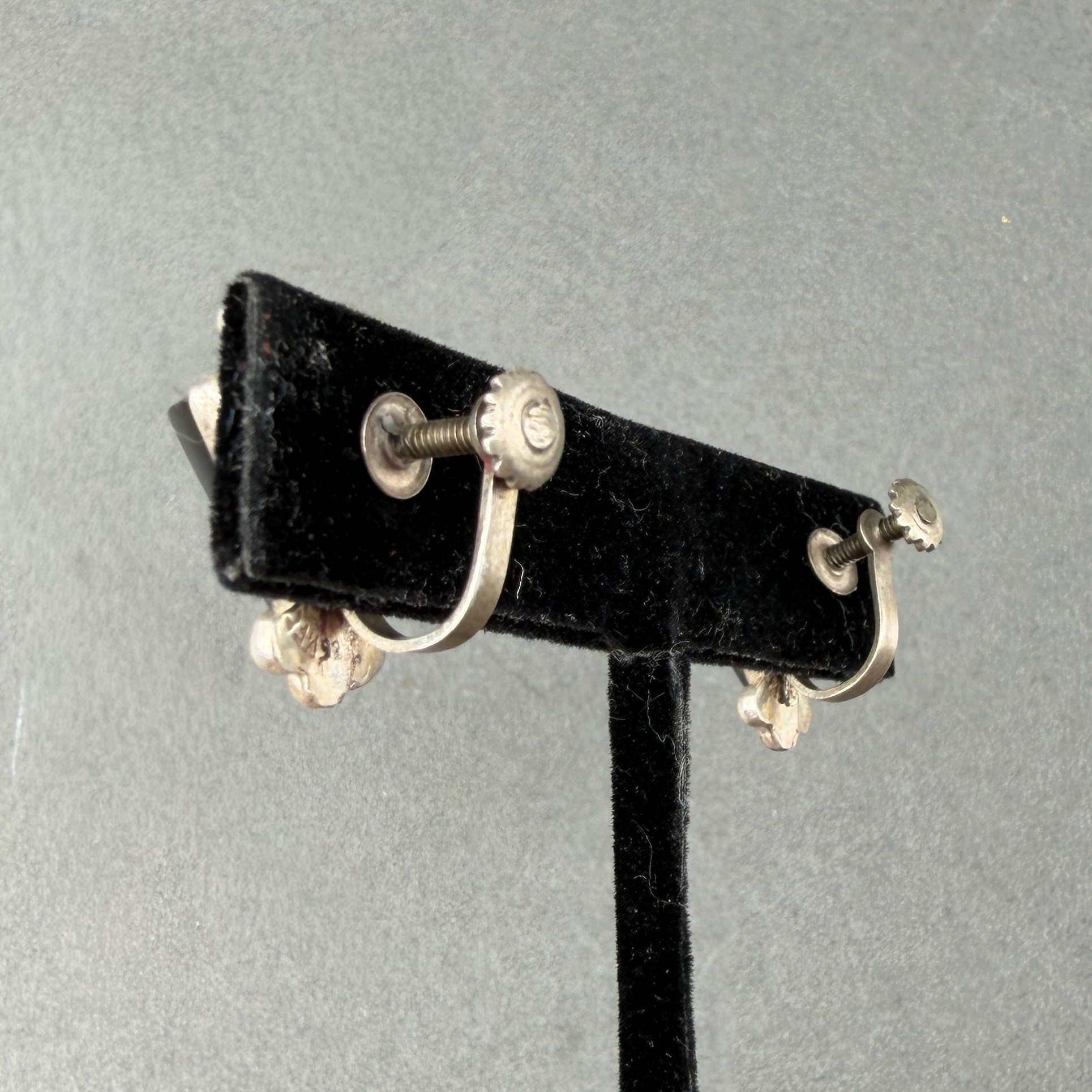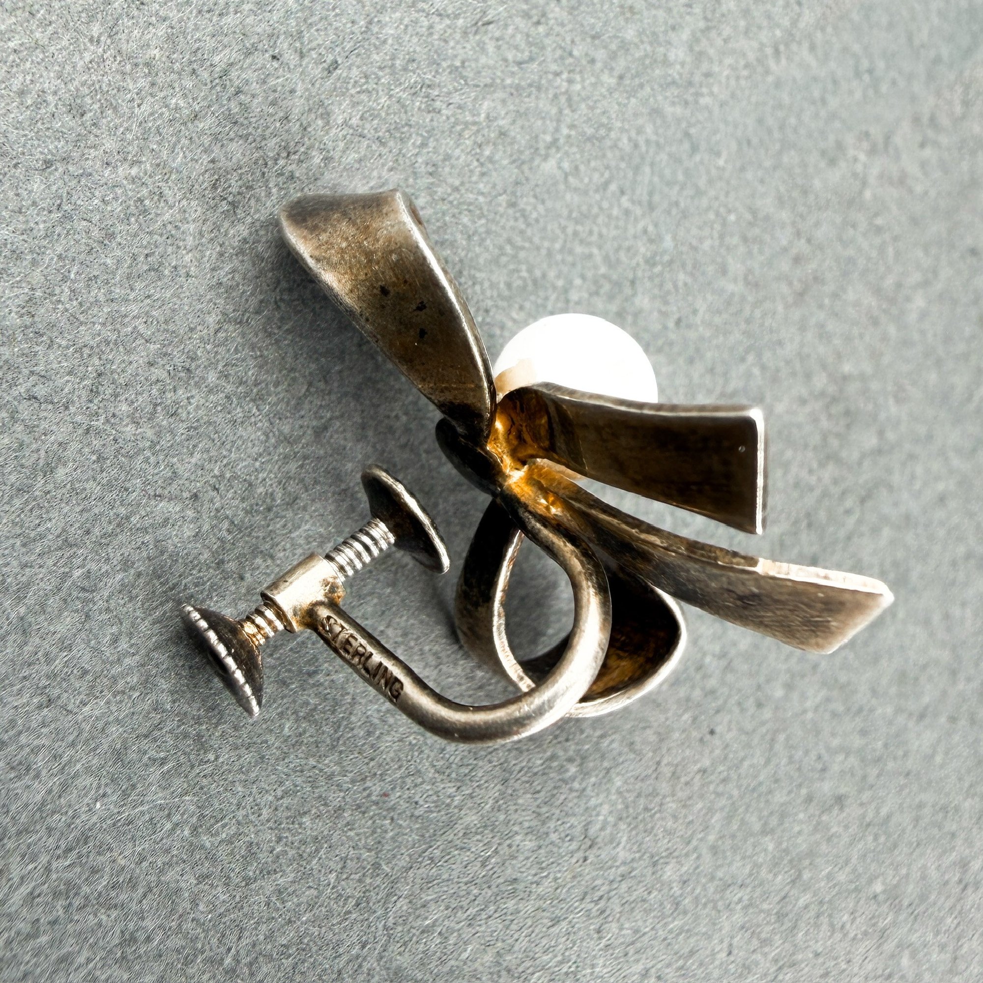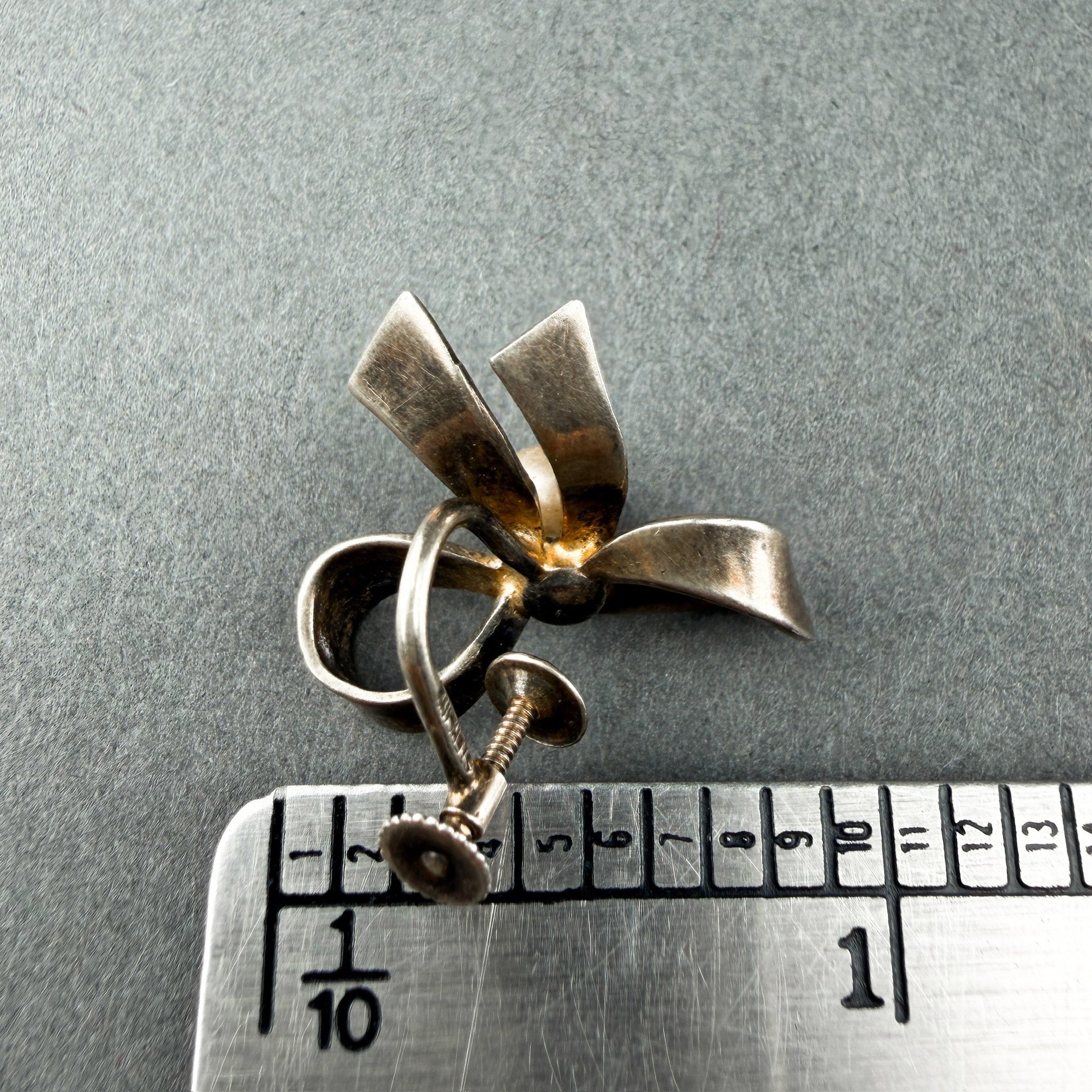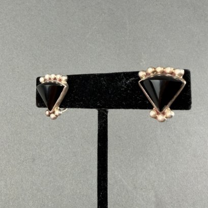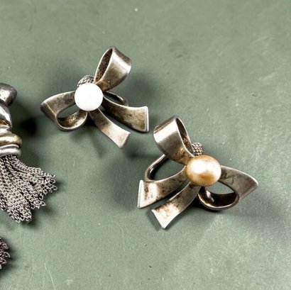 Two Pair Sterling Silver Clip On Earrings-Bow Form And Triangles