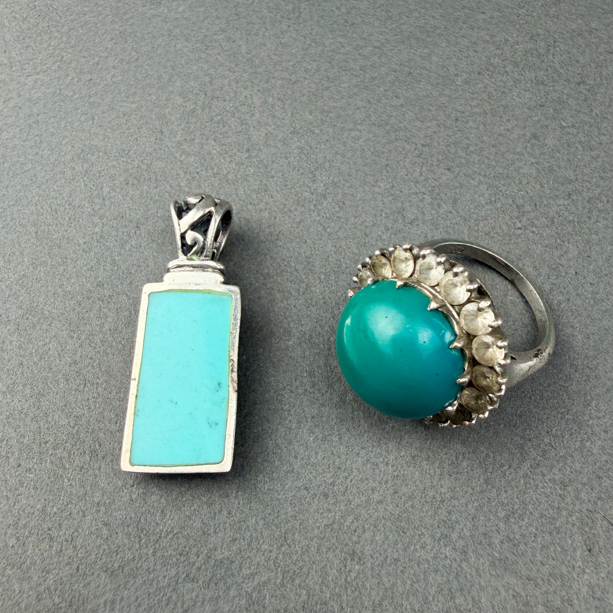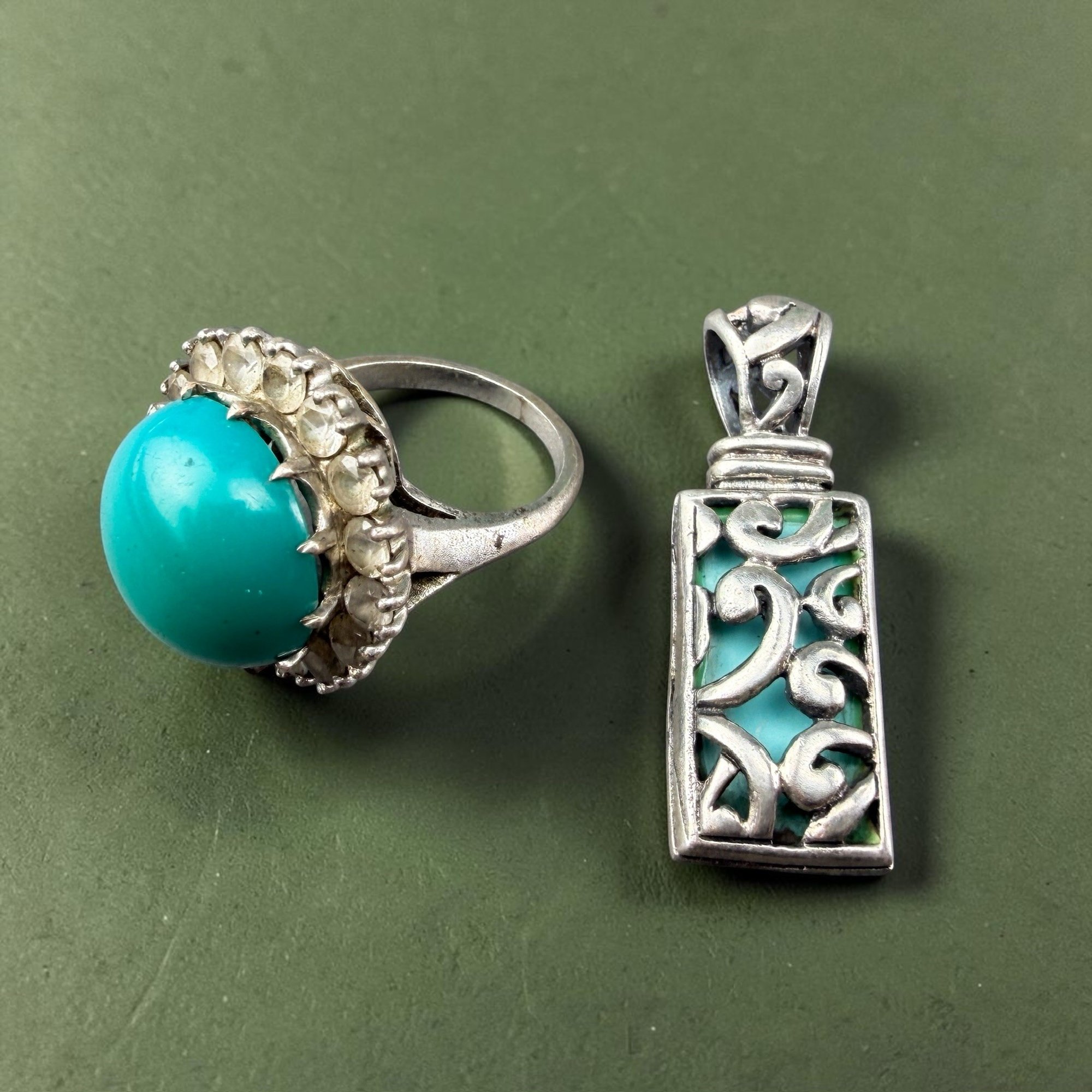 Sterling silver and Turquoise pendant and two cocktail rings.
