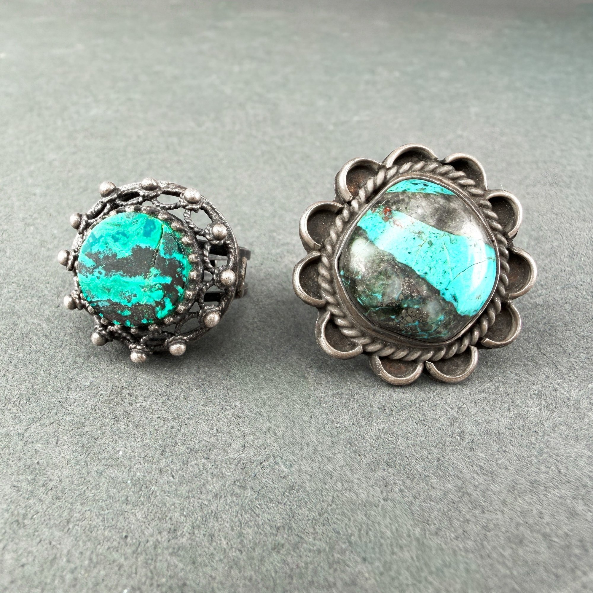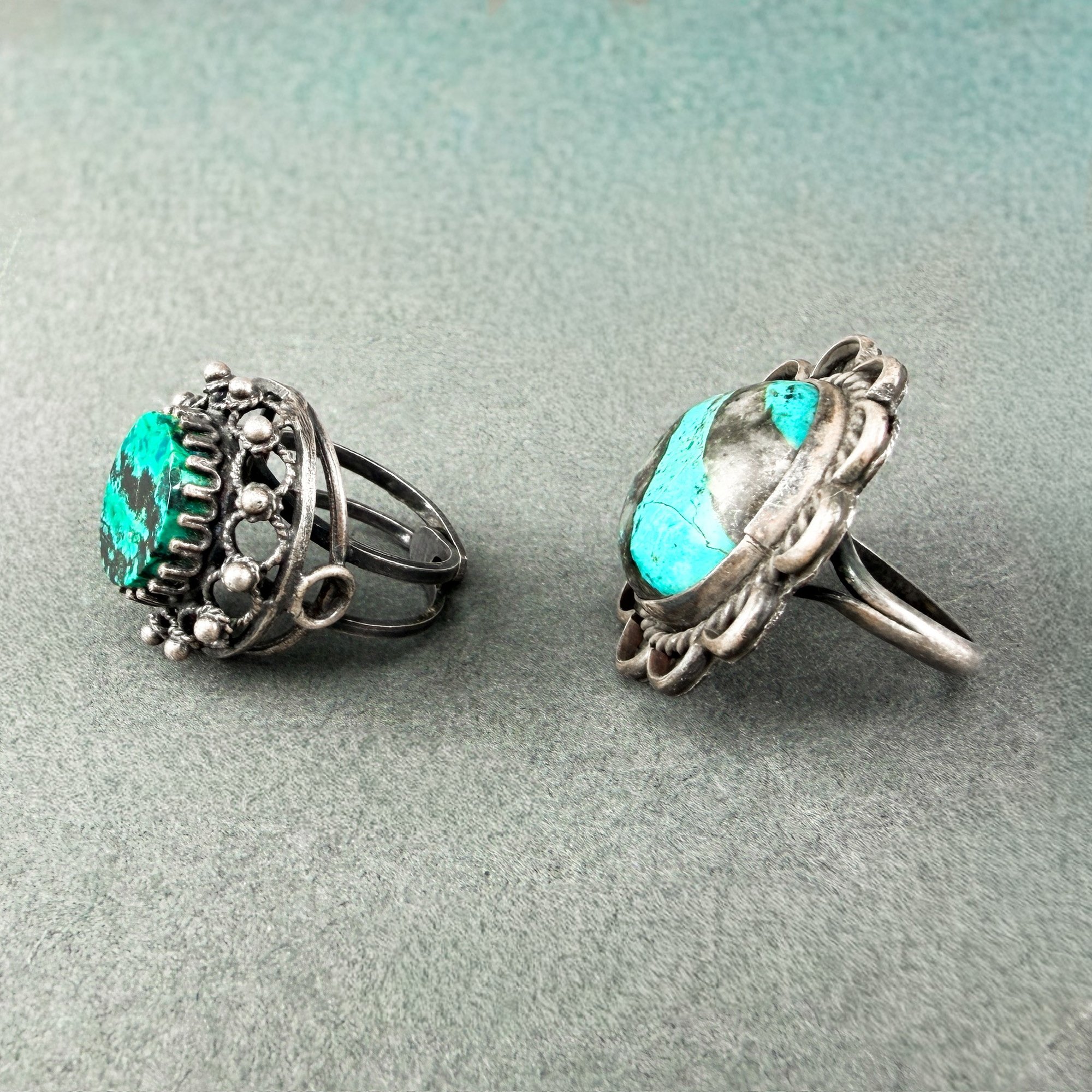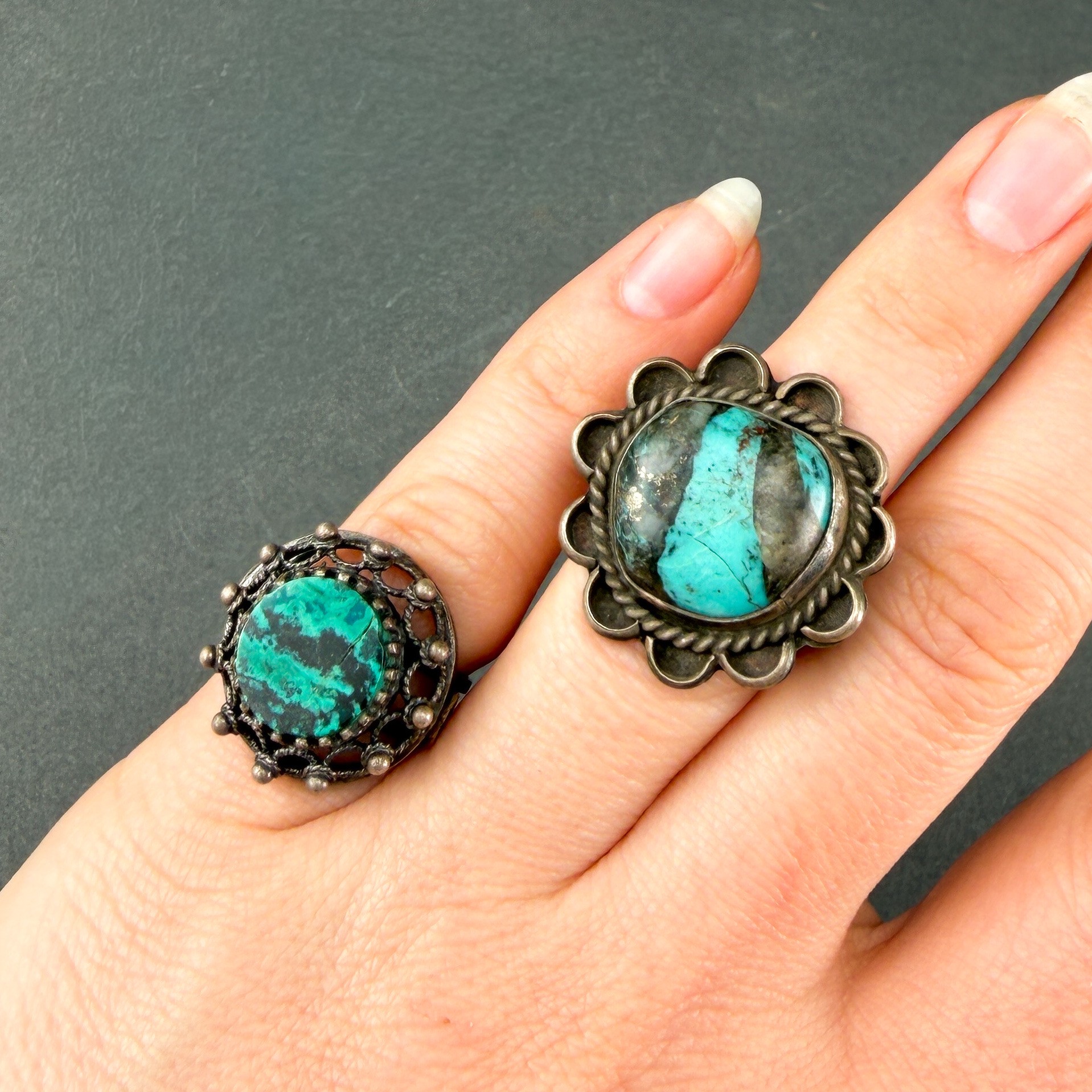 Two Sterling Silver Rings - Floral Form And Israeli Turquoise