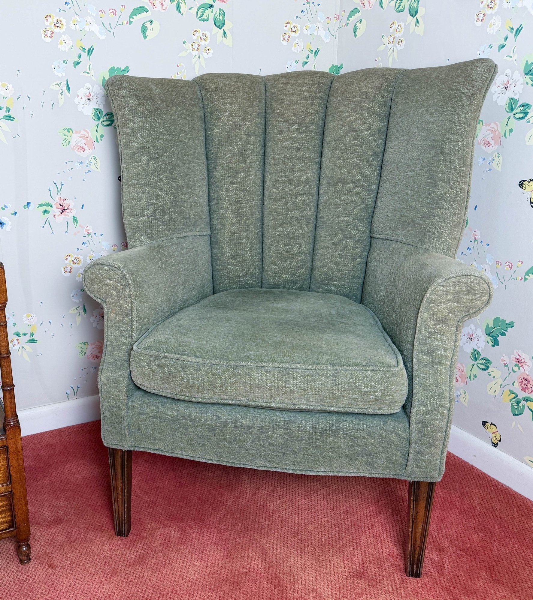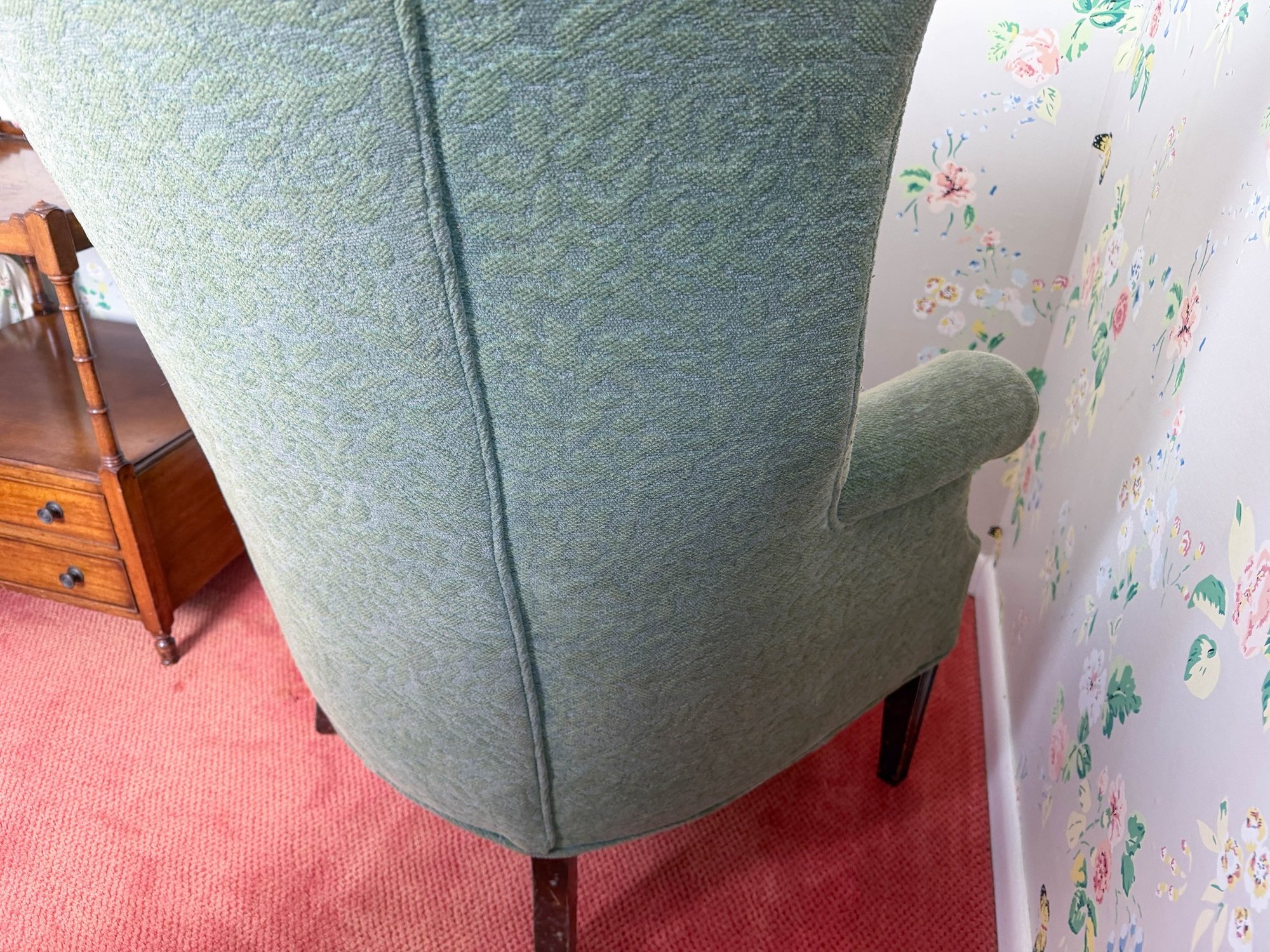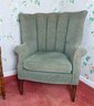 Winged back with scrolled arms in celery upholstery