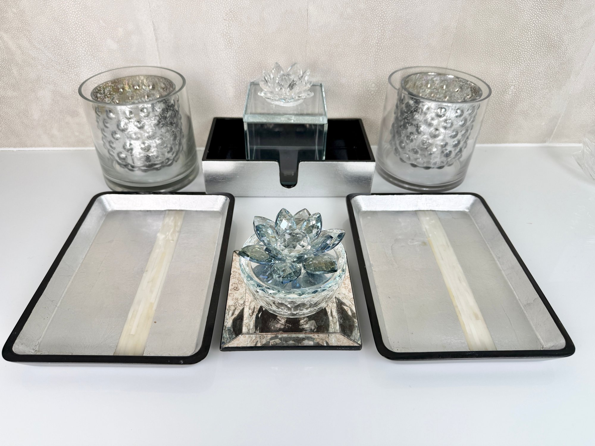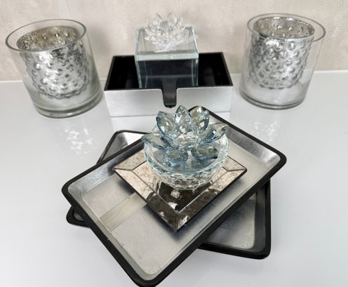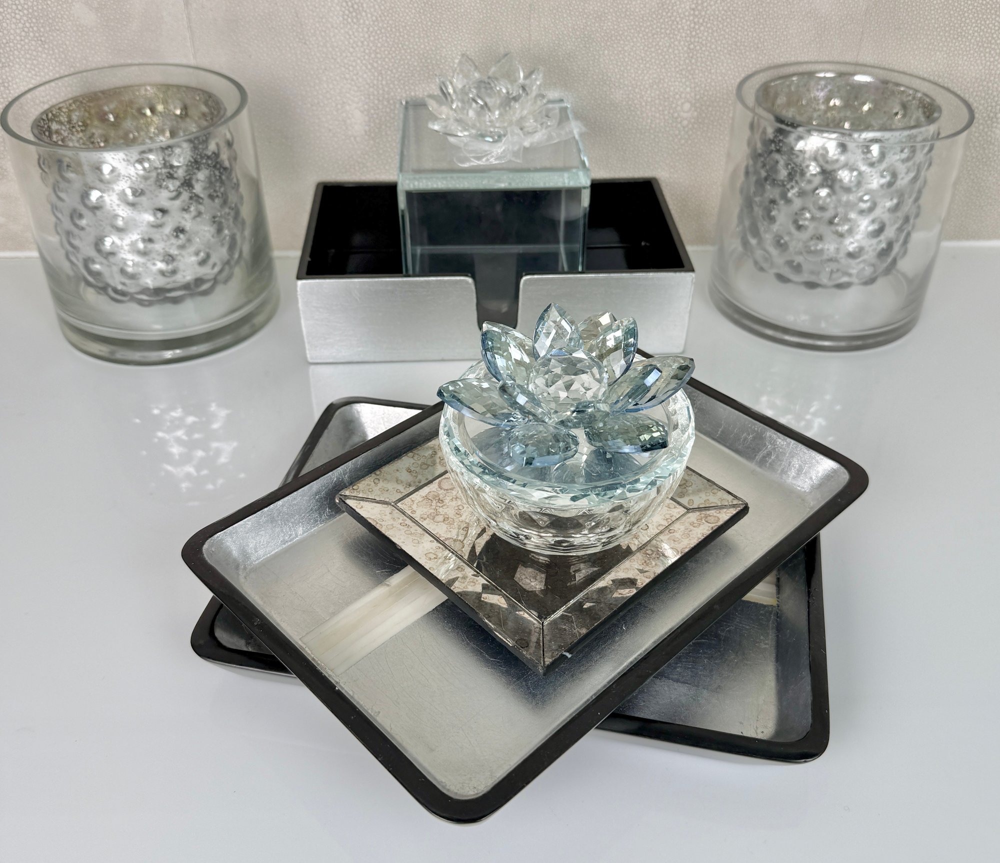 lidded boxes, trays, tea lights