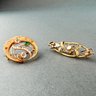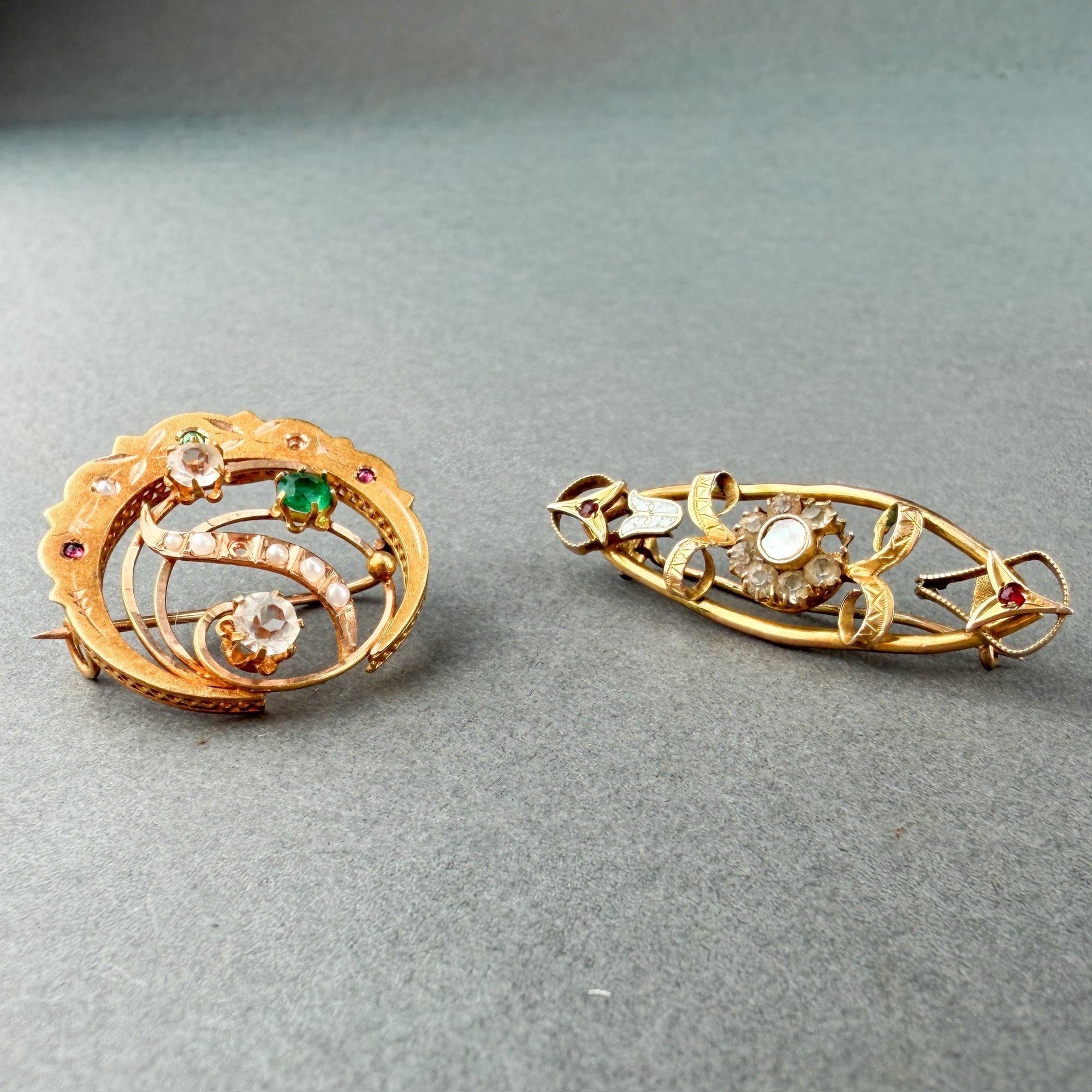 Antique Victorian 10kt gold pin or brooch with enamel, garnet and diamonds in