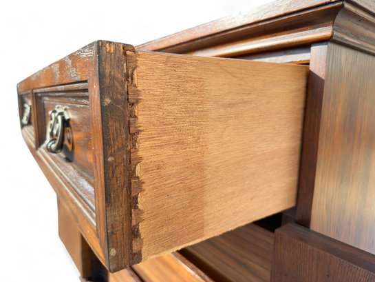 Wonderful condition. Excellent as an etry piece...change the hardware to modernize it...paintit to modernize it and you have a life long quality piece of furniture. Could be great in a lacquer or well painted chalk paint.