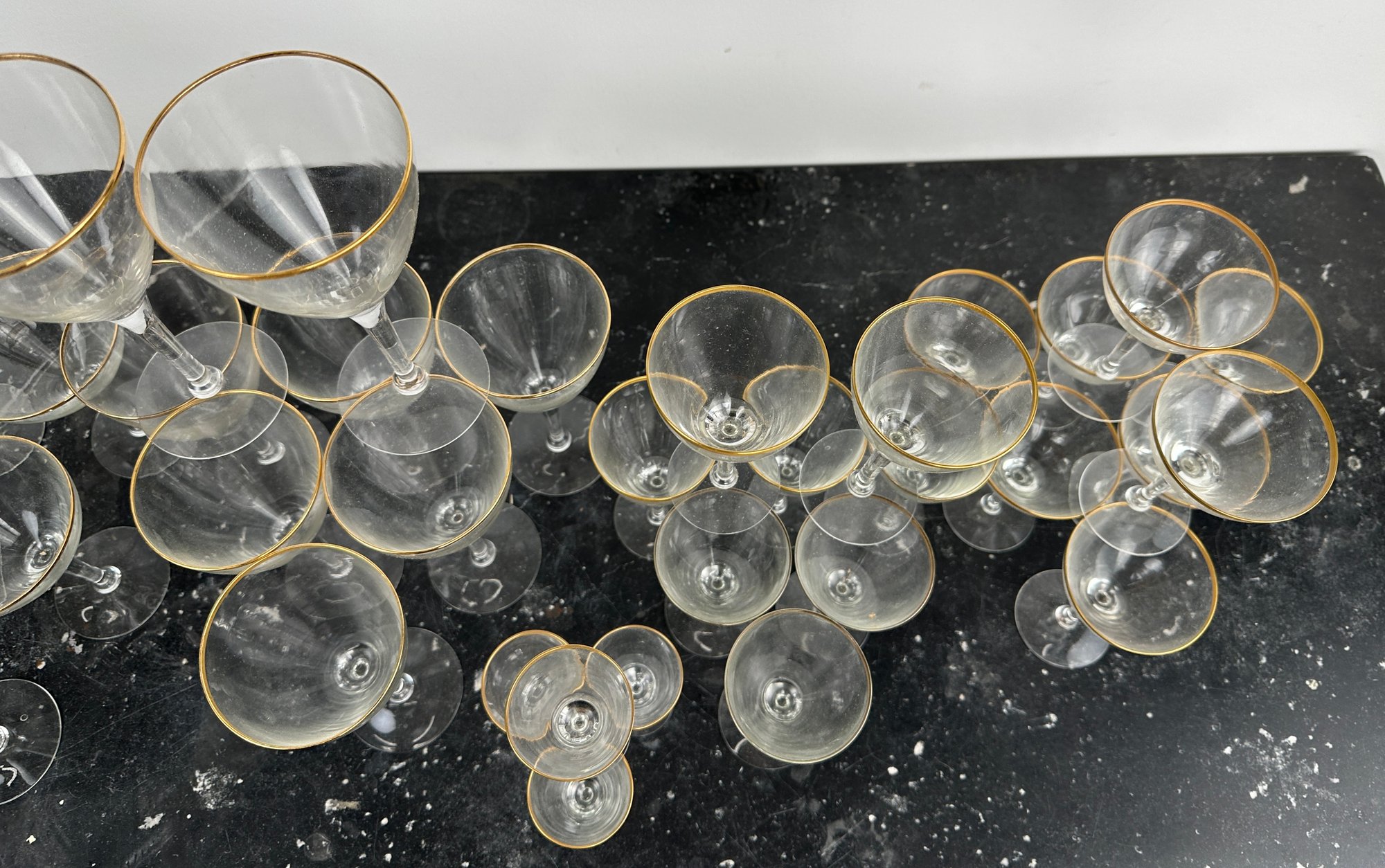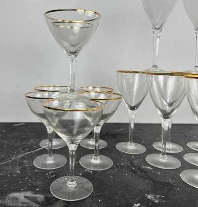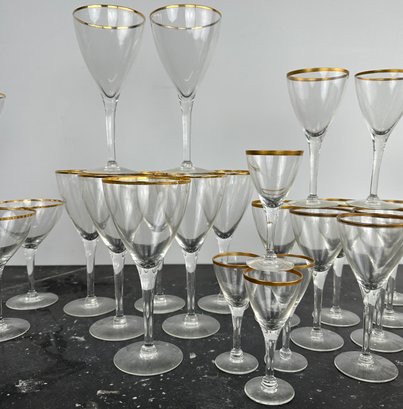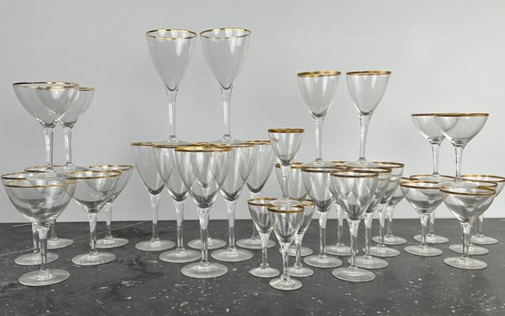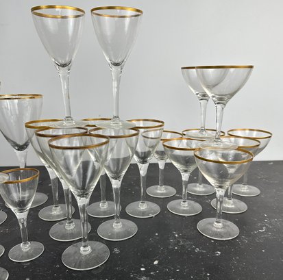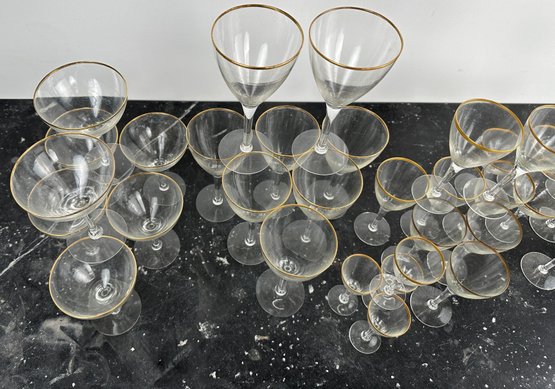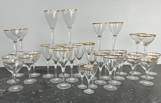 Vintage Gold Rimmed Stemware - Wine And Gimlet Glasses 35 Pieces