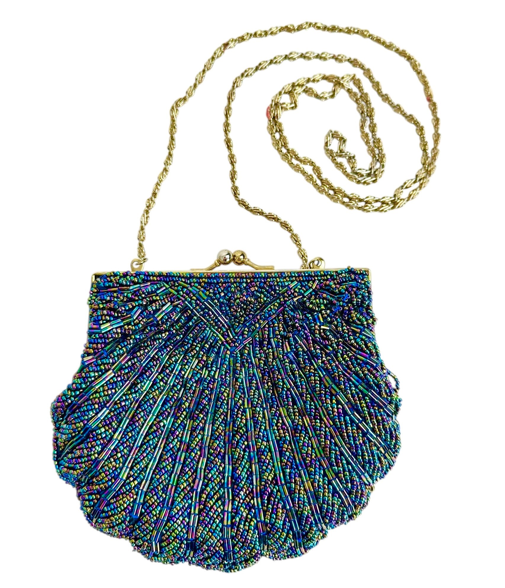 Vintage Iridescent Bead Evening Bag Clutch Or Shoulder Style