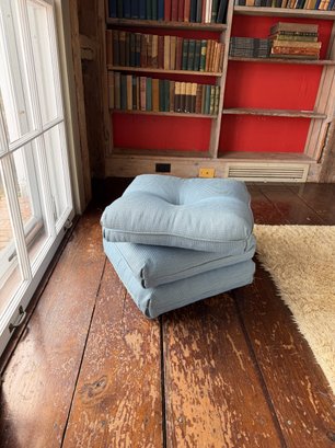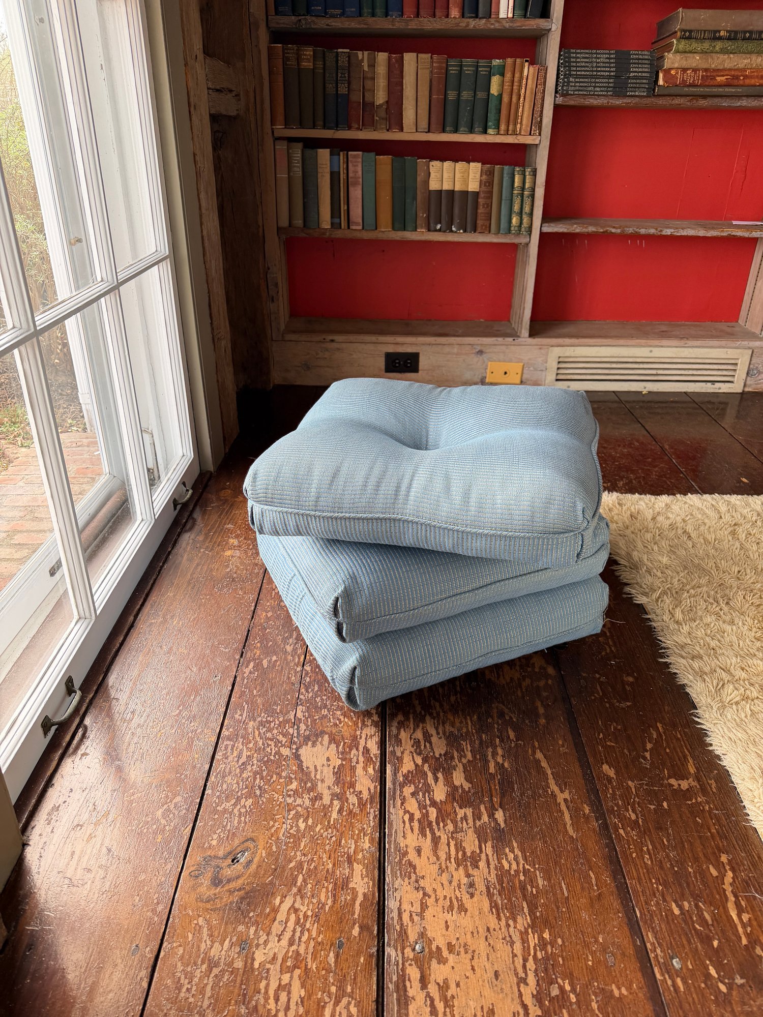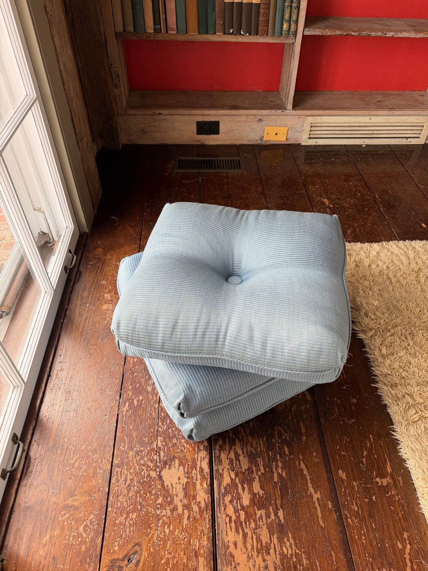 WHIMSICAL MID-CENTURY THREE PILLOW OTTOMAN ON CASTORS