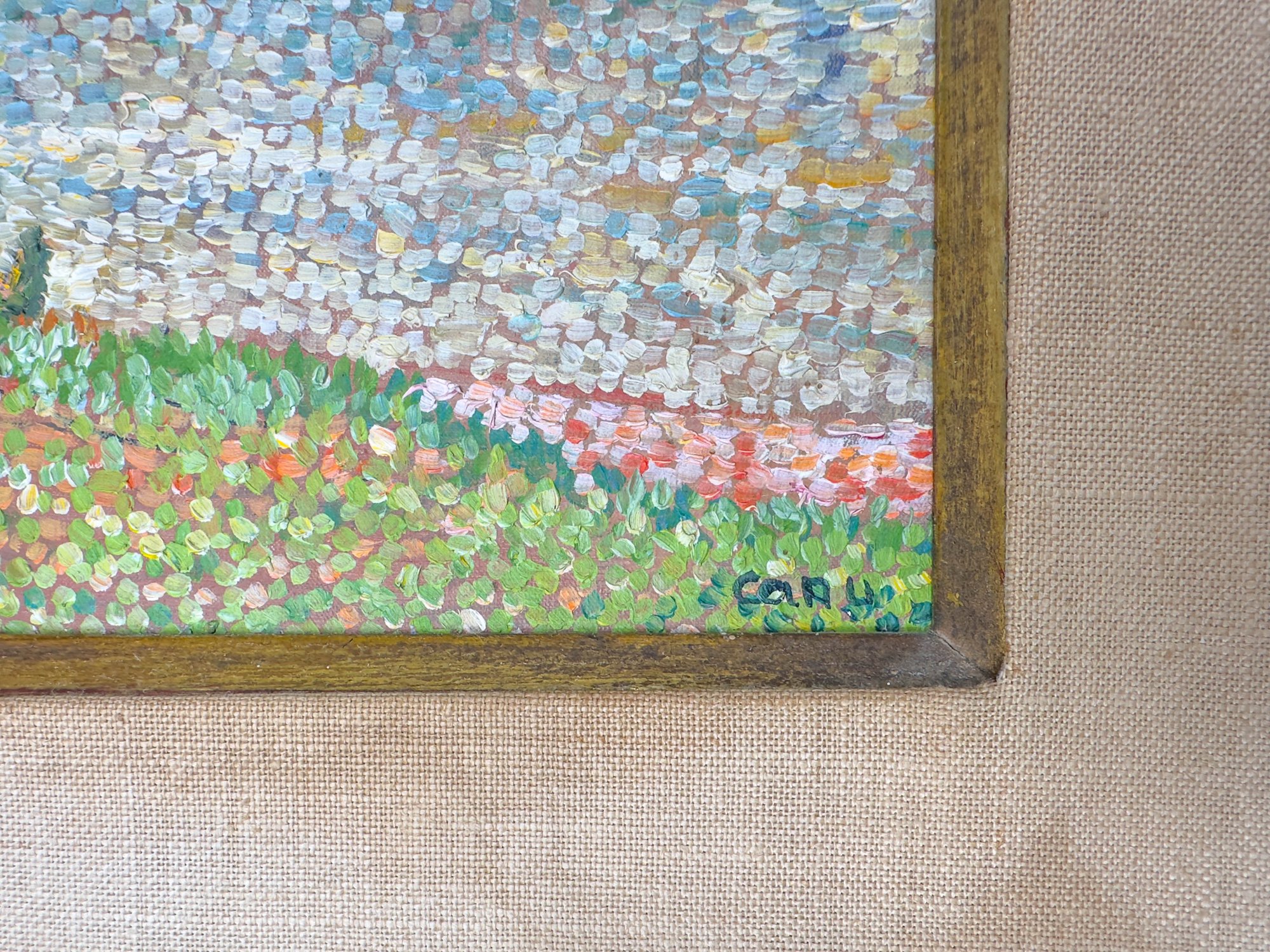Les Mouttes as is written on the back of the canvas translates to the mosses possibly in Alsace France.