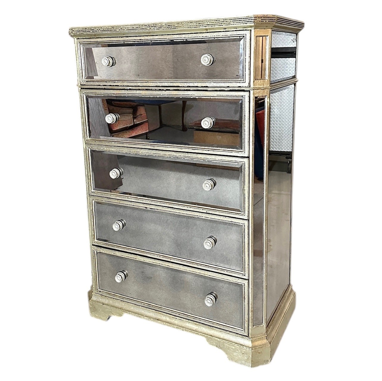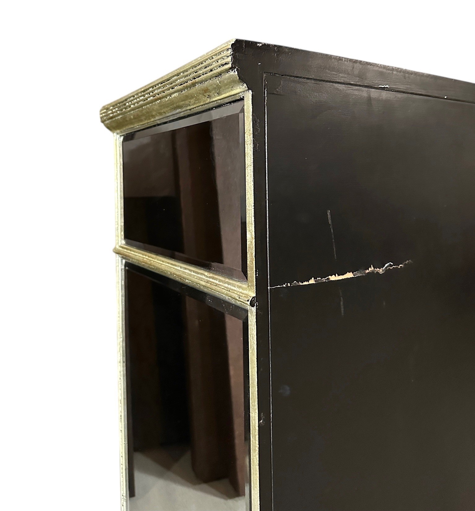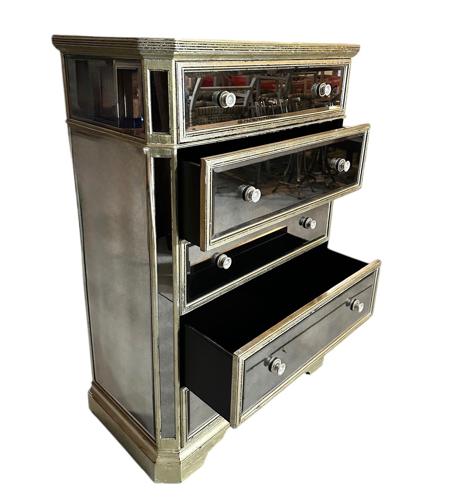 gilt and silver gilt wood surrounding 5 mirrored drawers with metal pulls