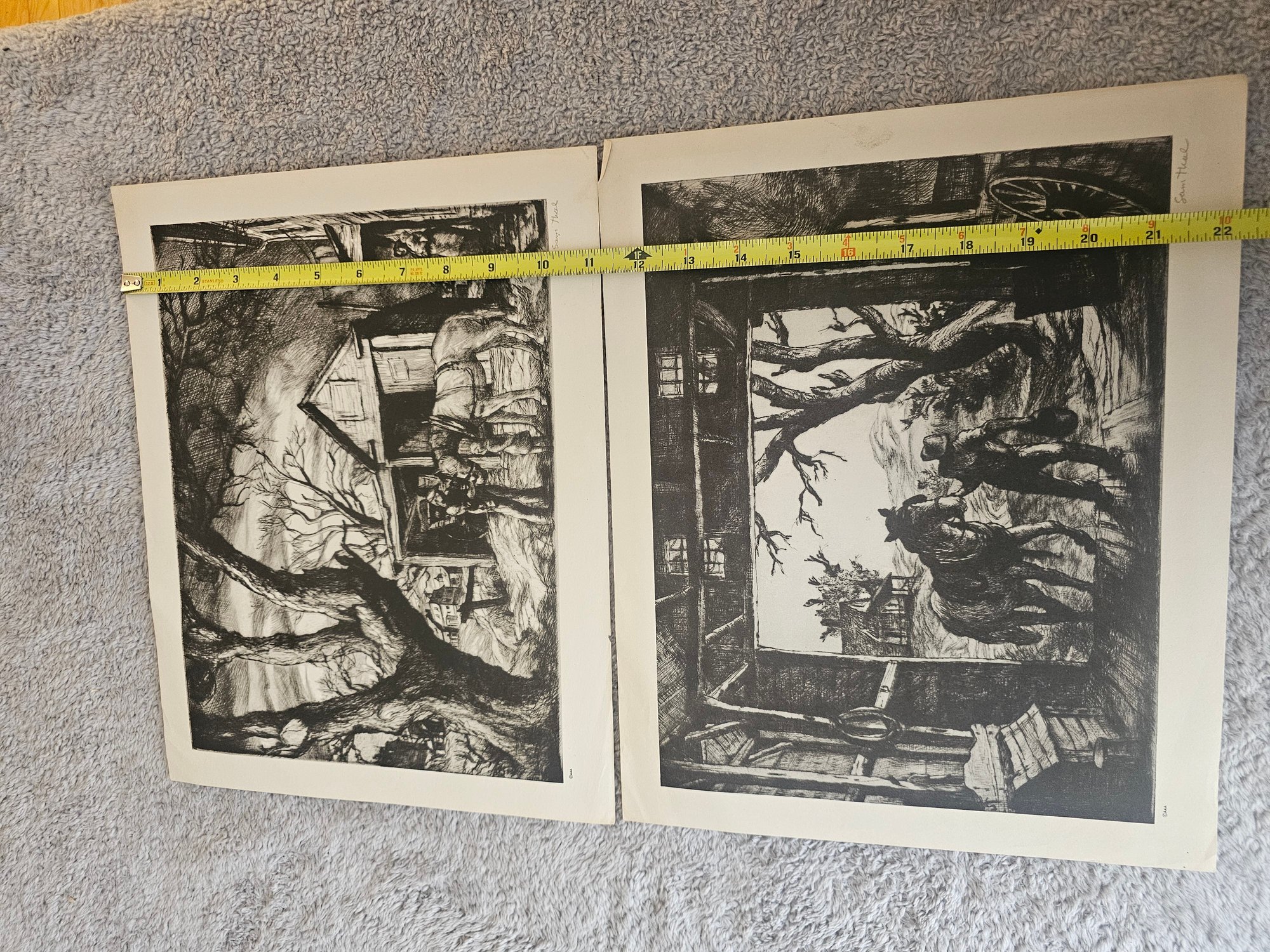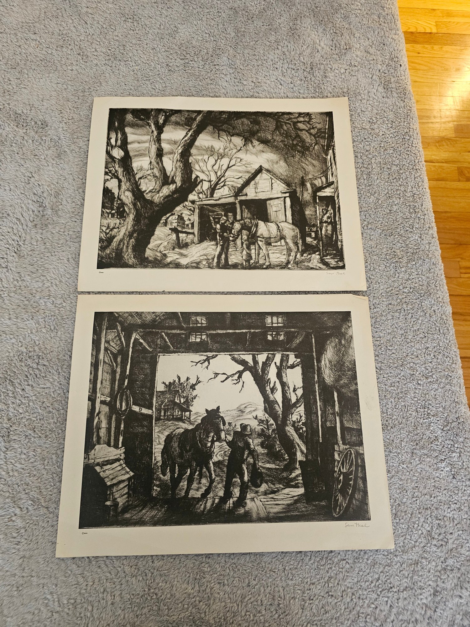 2 Sam Thal AAA Label Signed Prints Titled Quitting Time And Belmont Farm D91