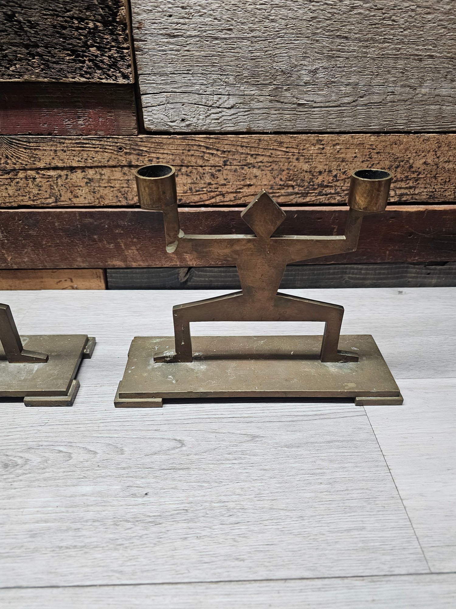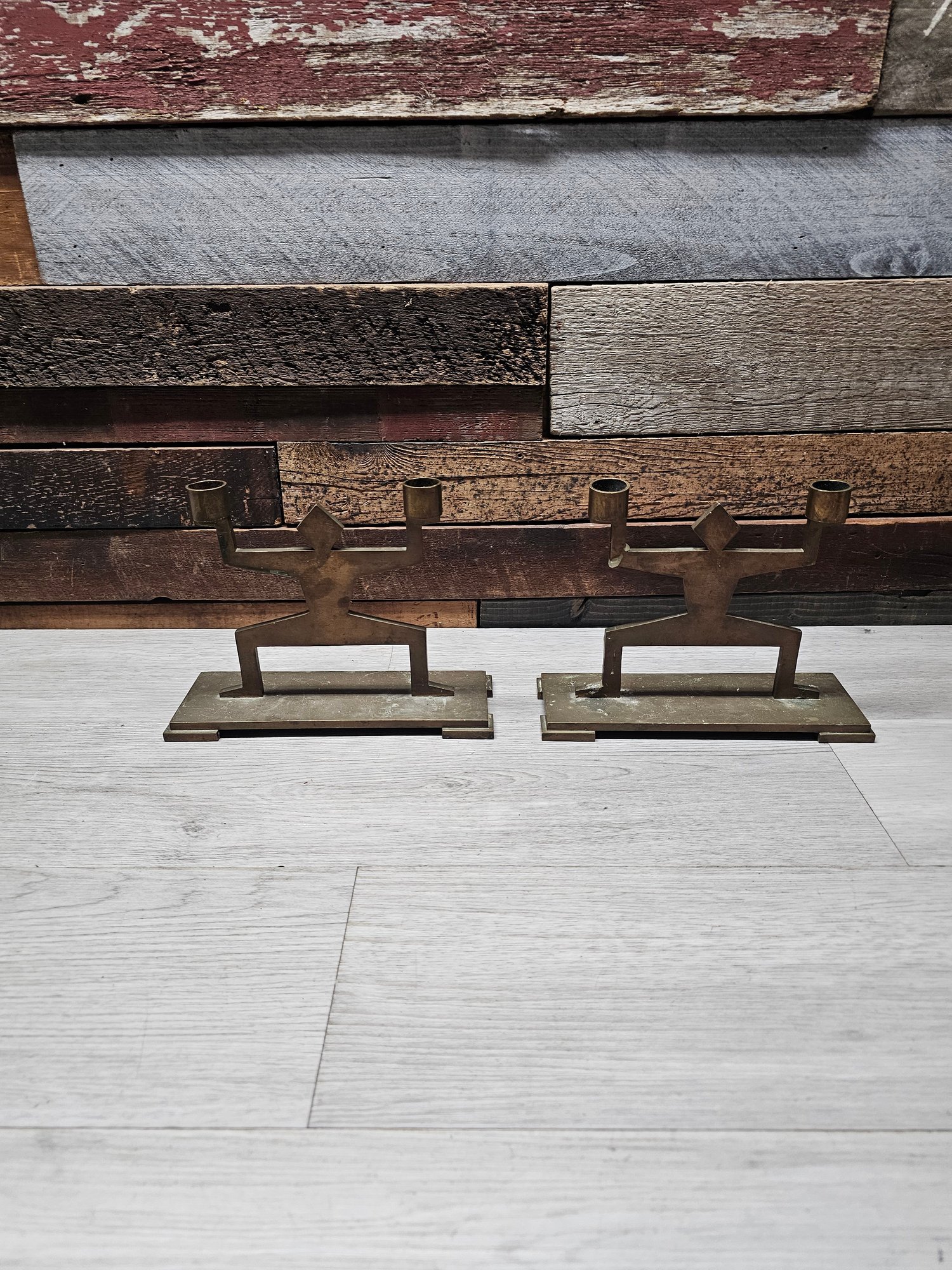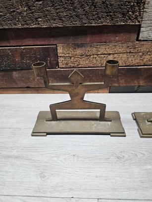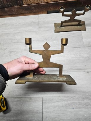 Pair Of Vintage Mcm Brass Kokopelli Pop Art Candlesticks A1