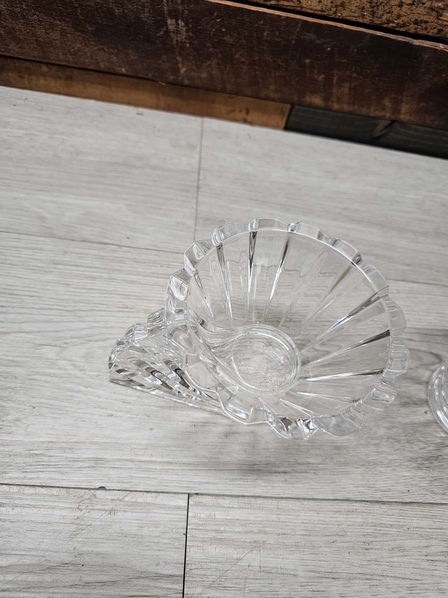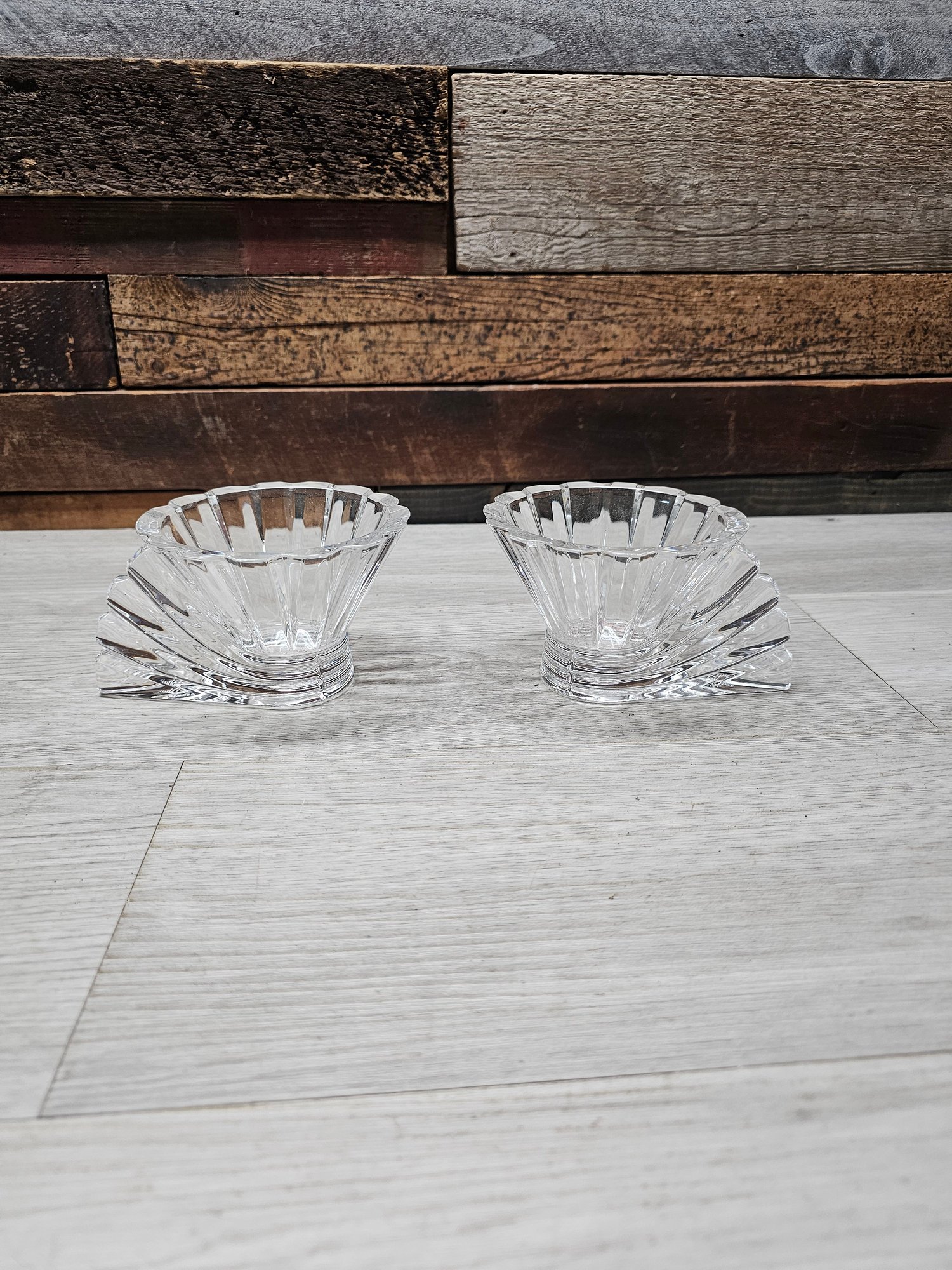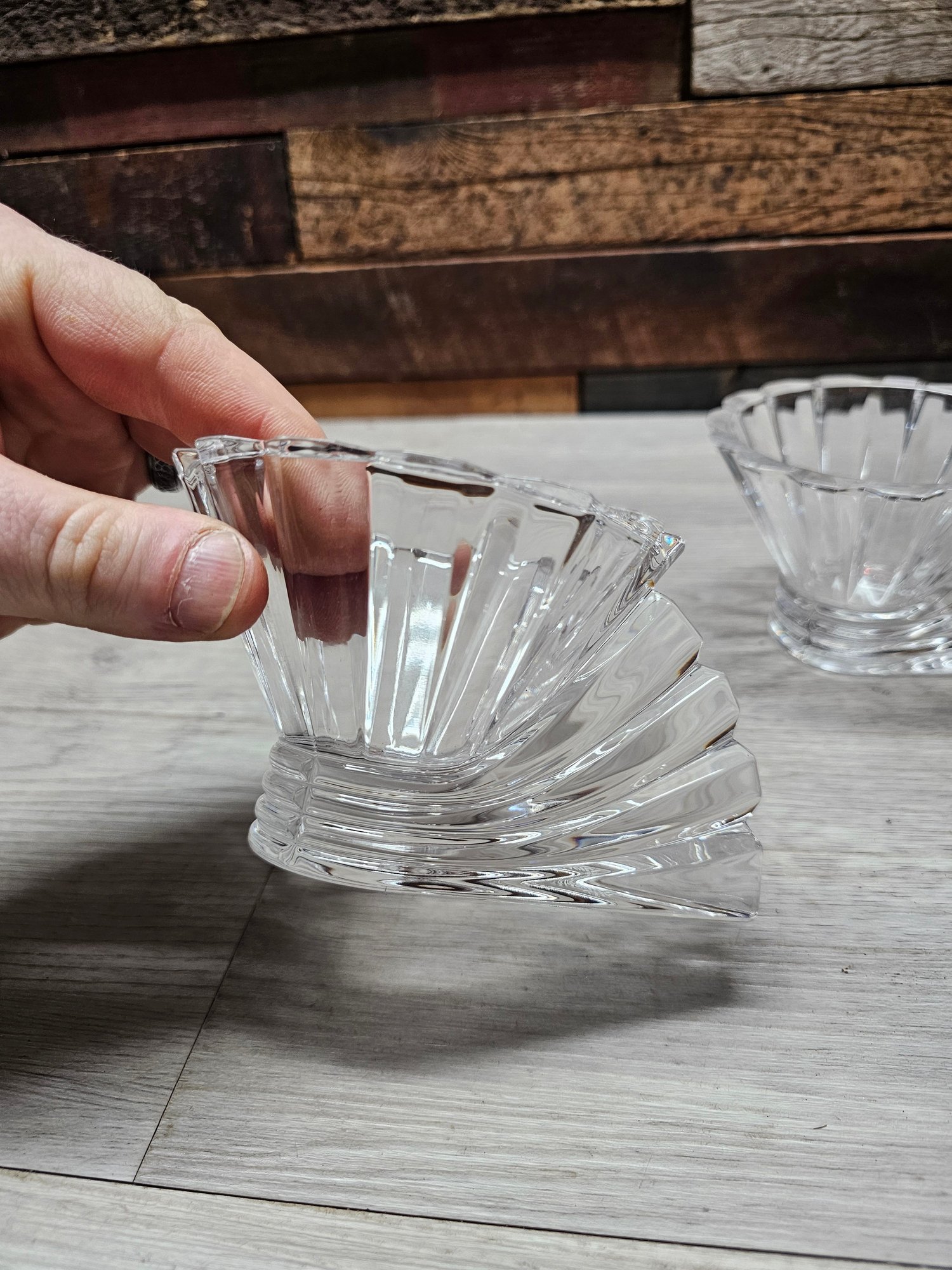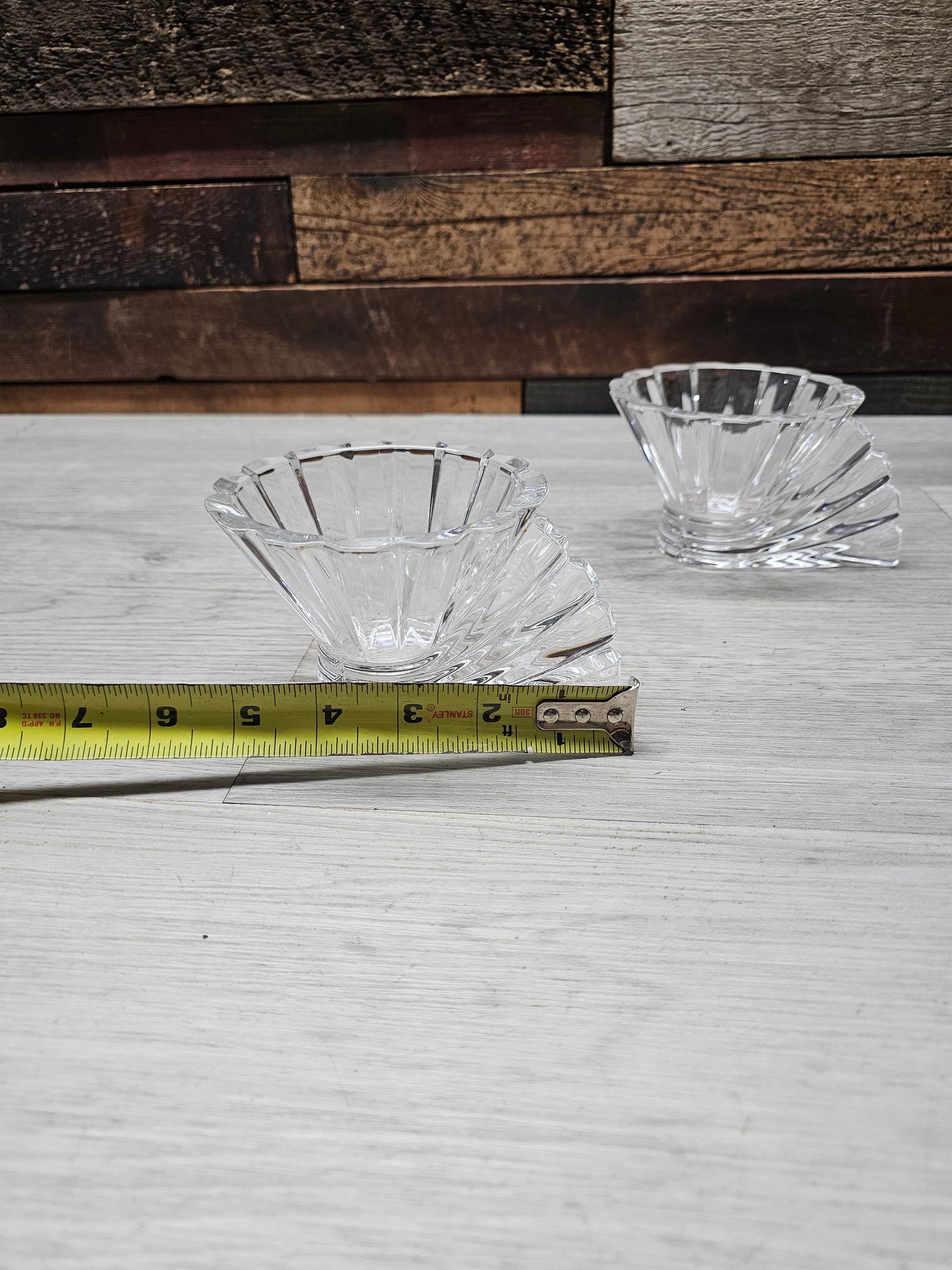 Pair Of Vintage Rosenthal Crystal Art Deco Fan Shell Bowls Germany Signed 4.5 Sculptural A6