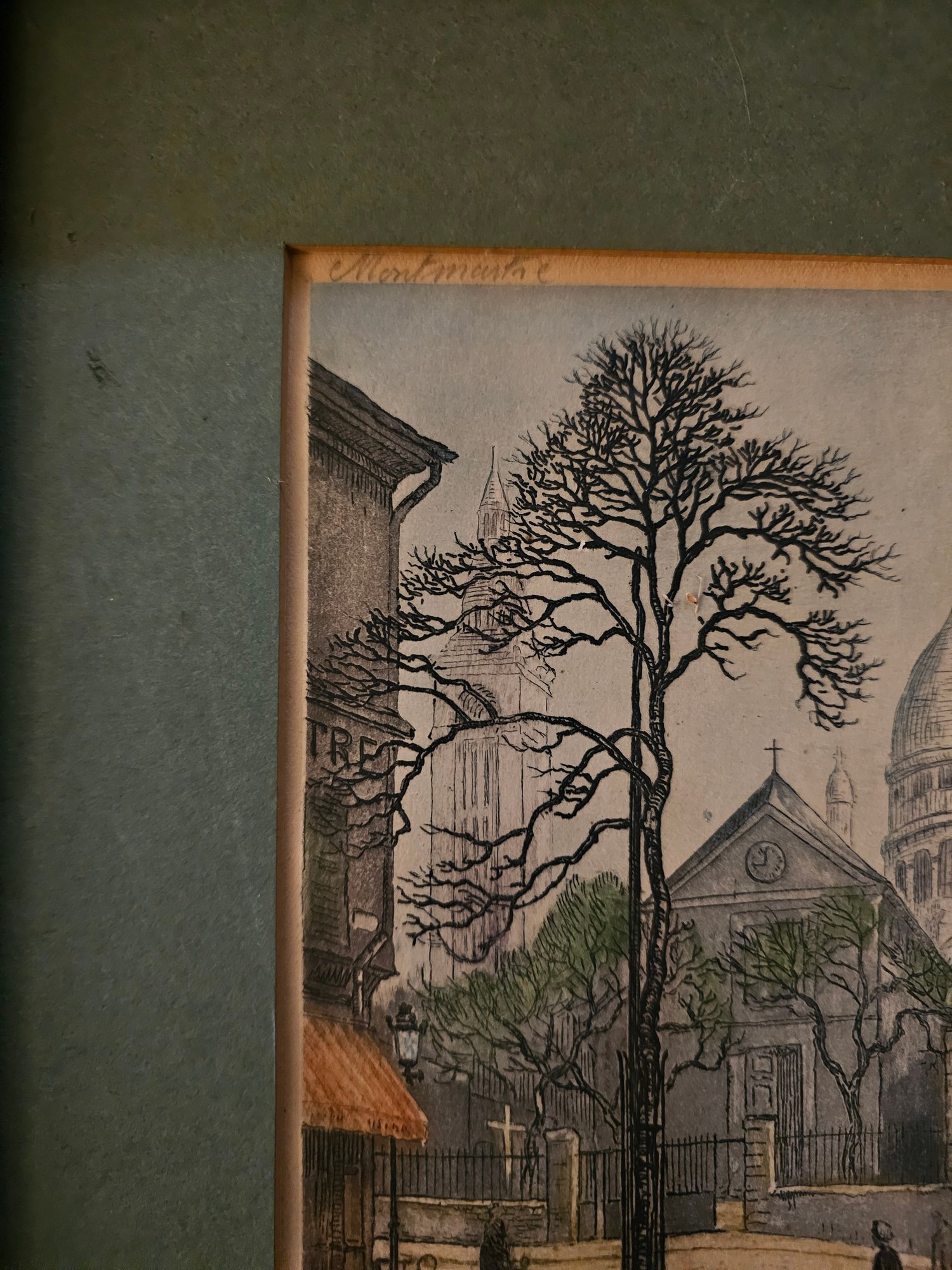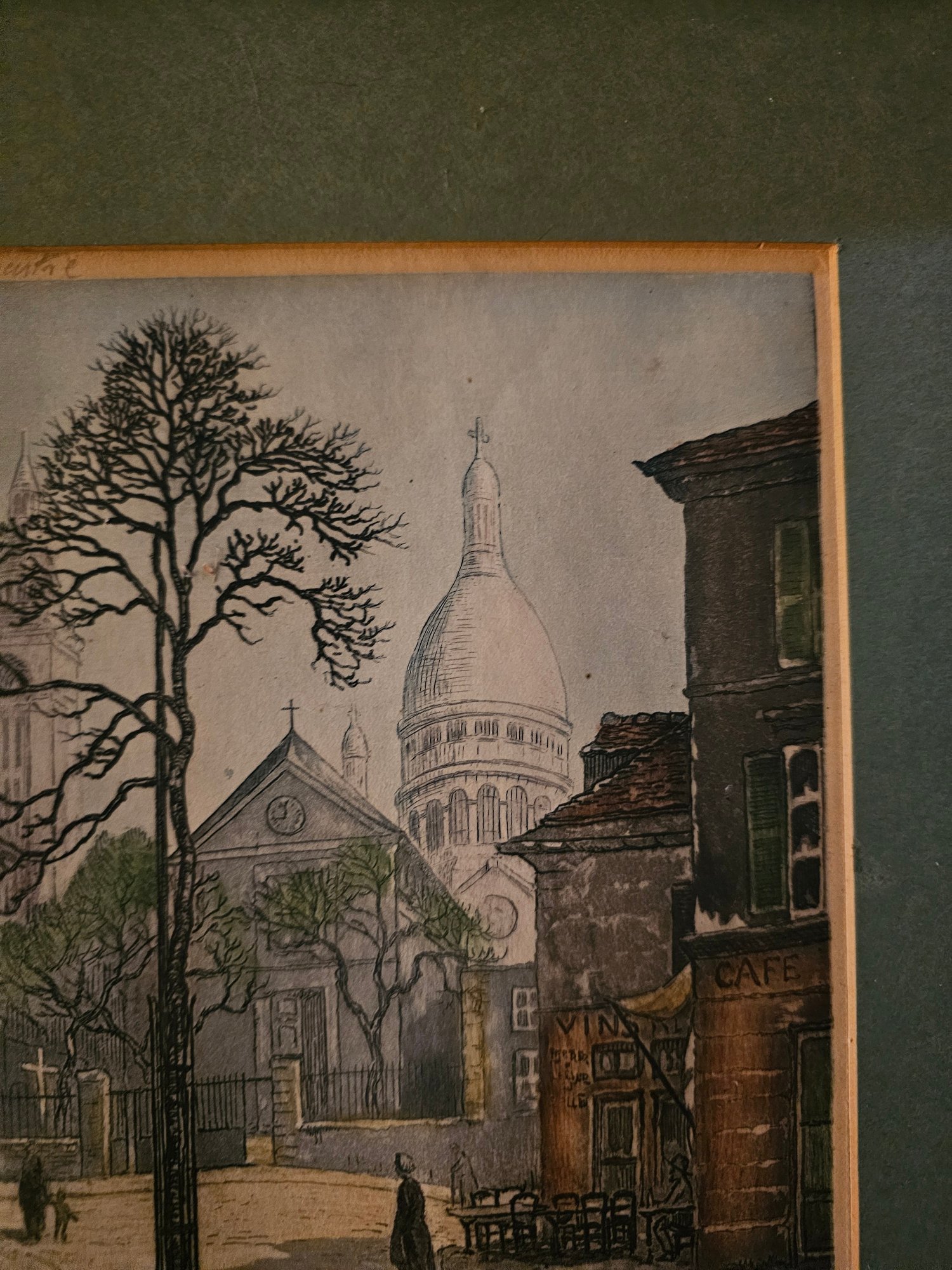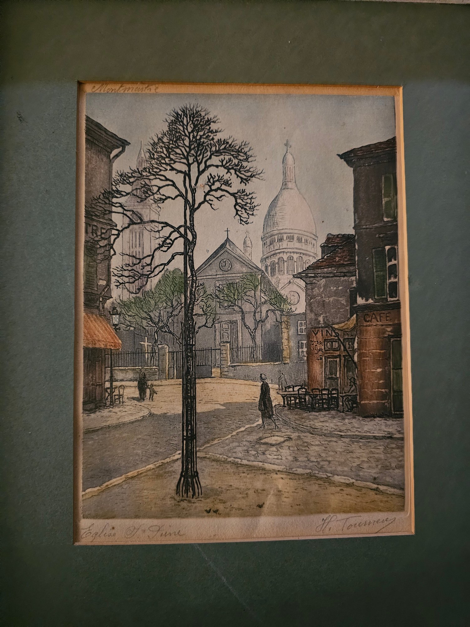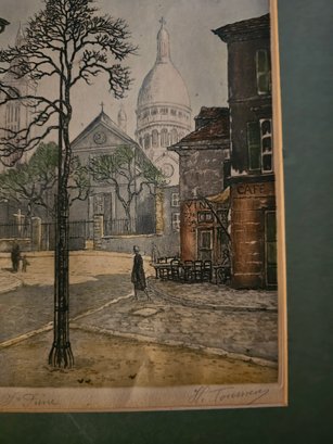 Antique Etching In Colors Artist H. Tourneur Original Signed "Montmartre Eglise B76