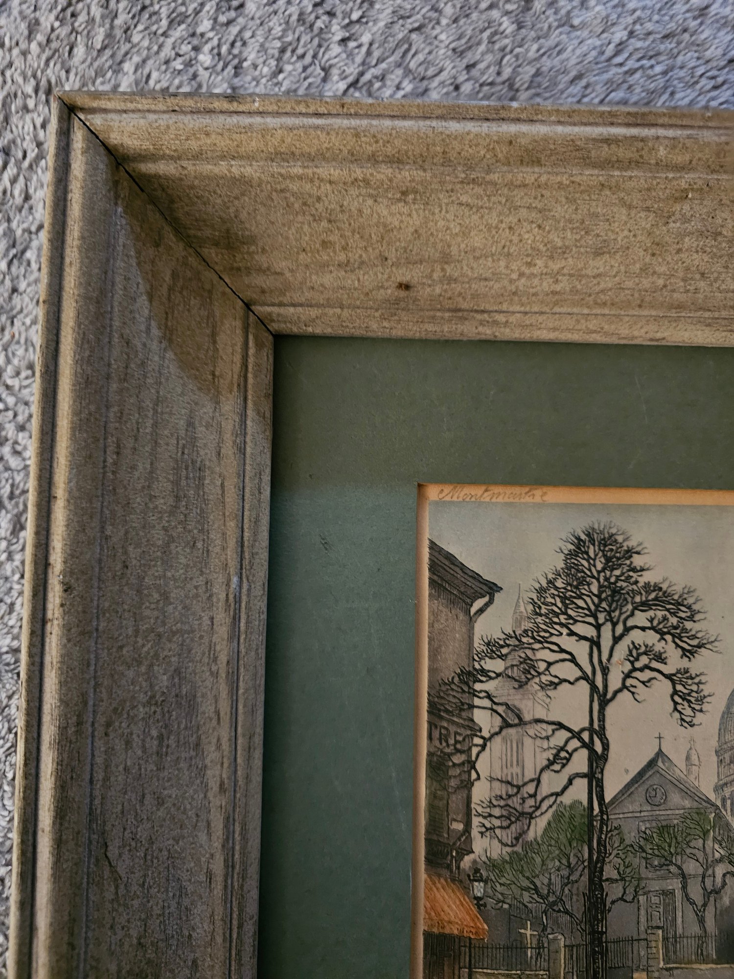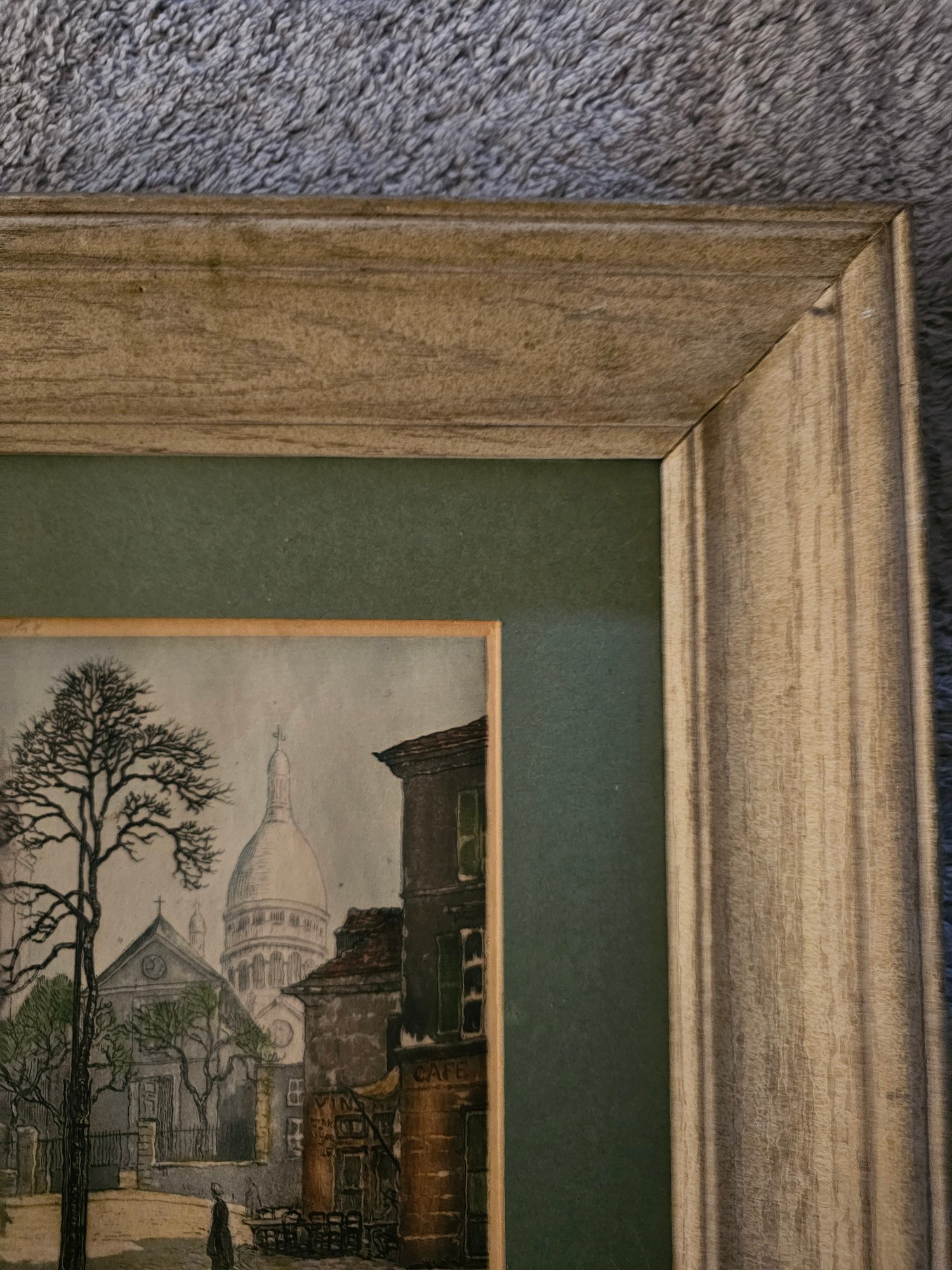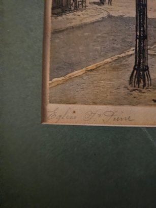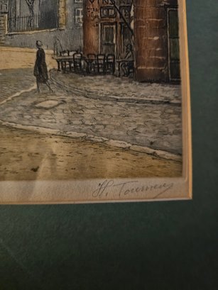 Antique Etching In Colors Artist H. Tourneur Original Signed "Montmartre Eglise B76
