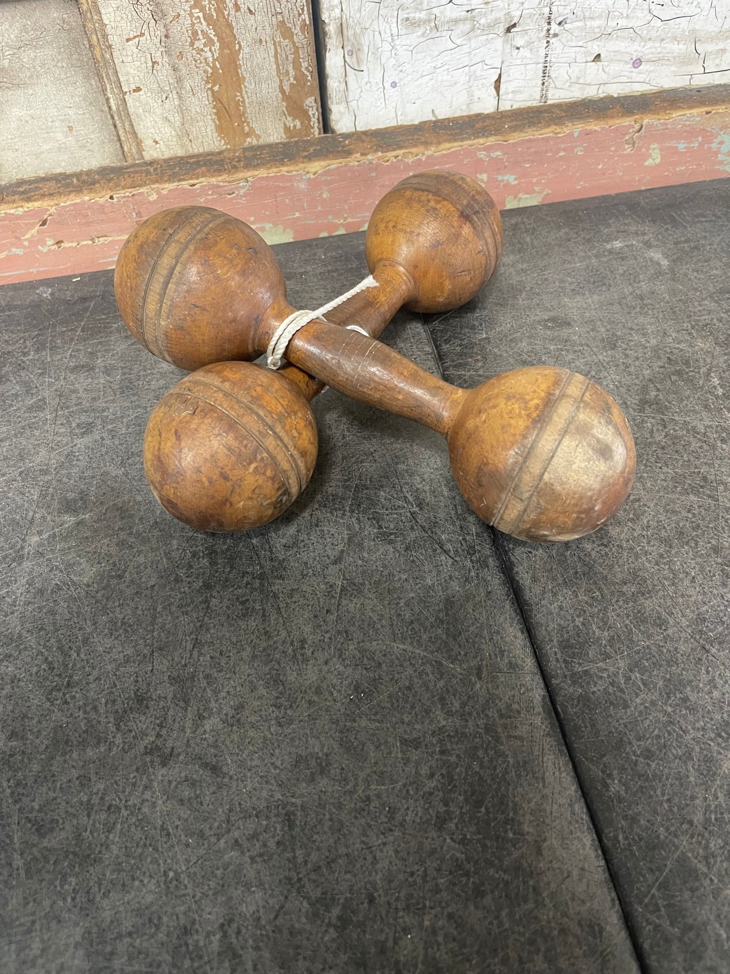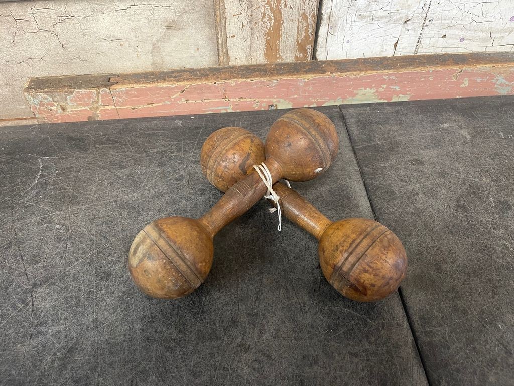 Antique Wooden Dumbbells (g2)