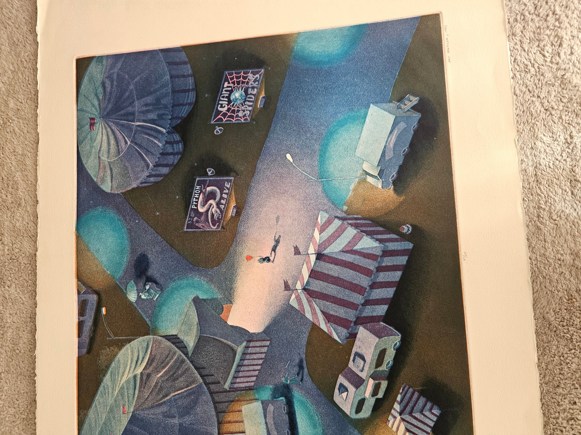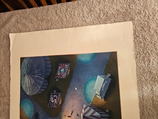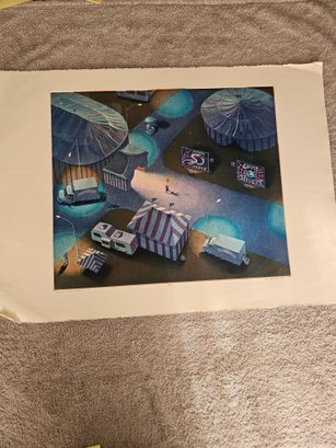 Art Werger Signed And Numbered Etching 20/24 Titled "midnight On The Midway" B59