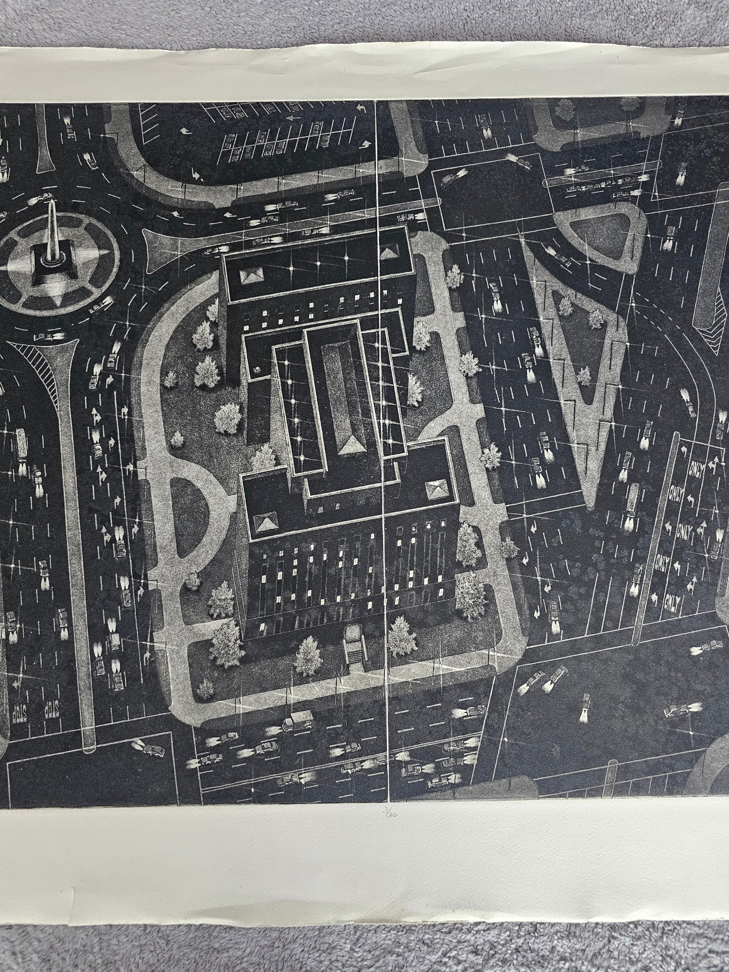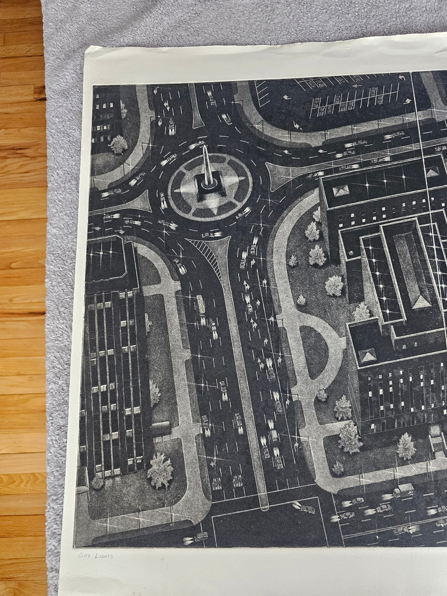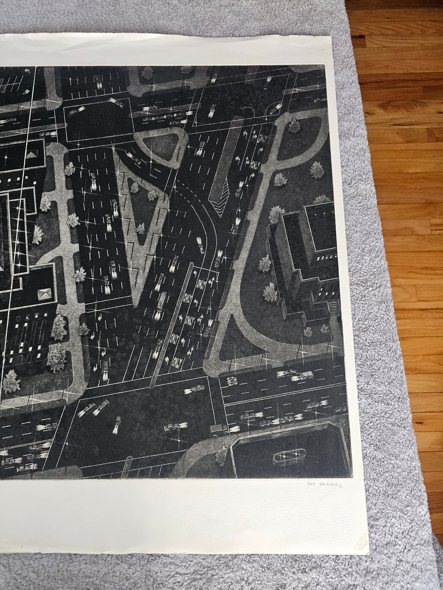 Art Werger Signed Etching Titled City Lights Numberd 3/30 C57