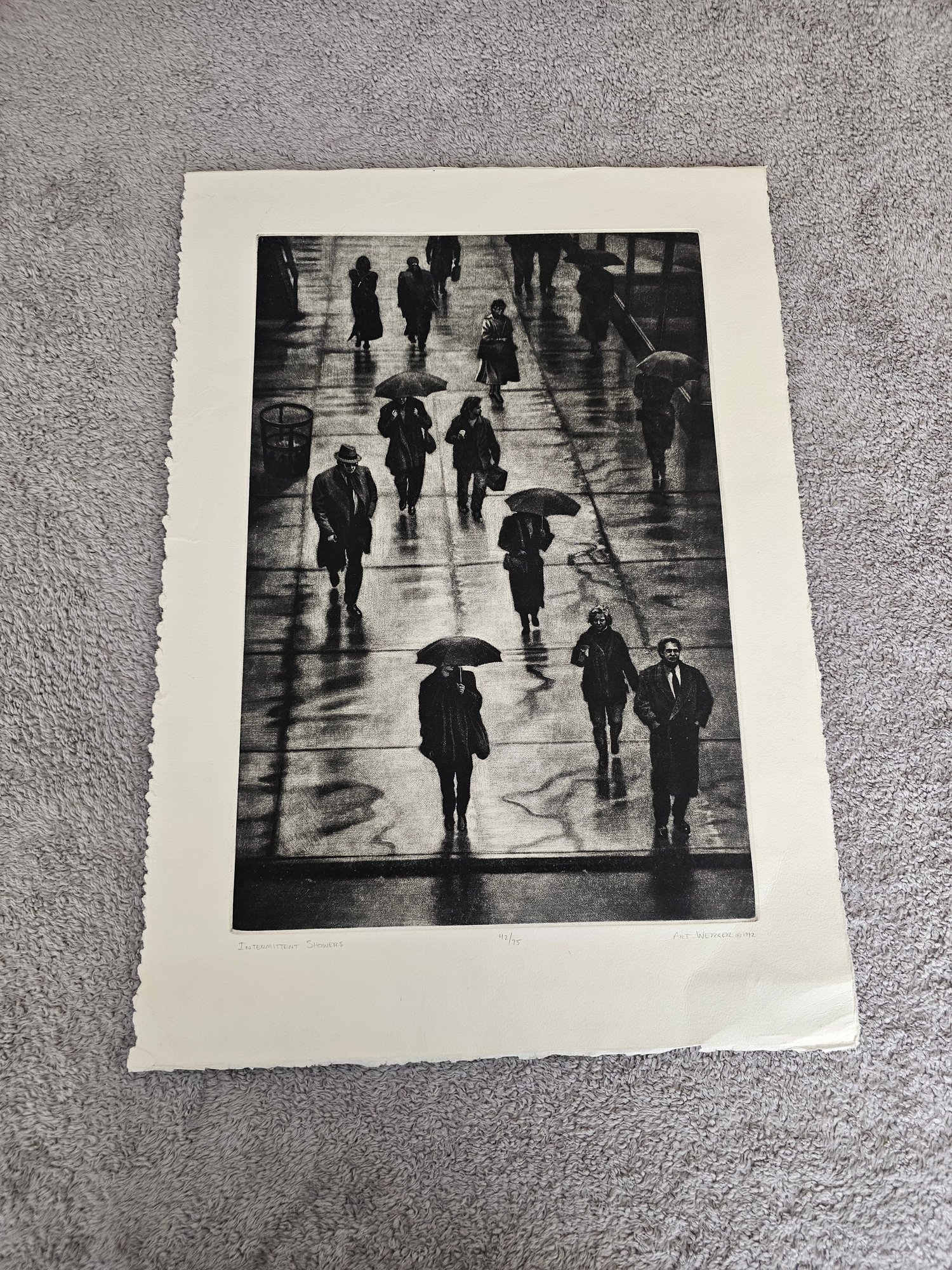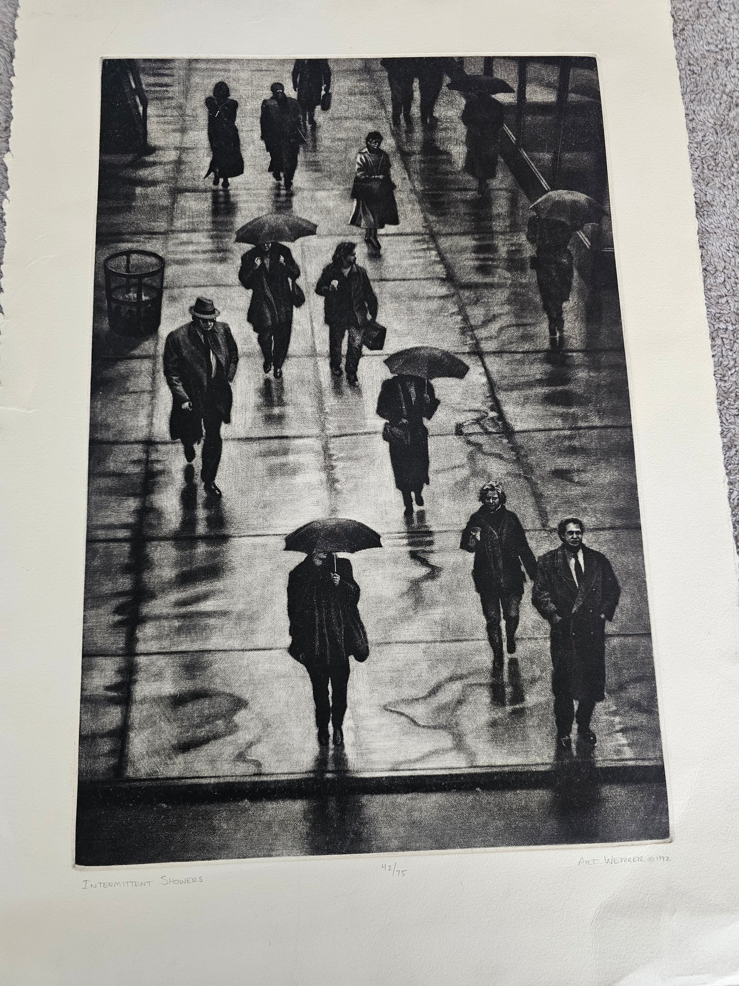 Art Werger Signed Etching Titled Intermittent Showers Numbered 42/75 1992 C98