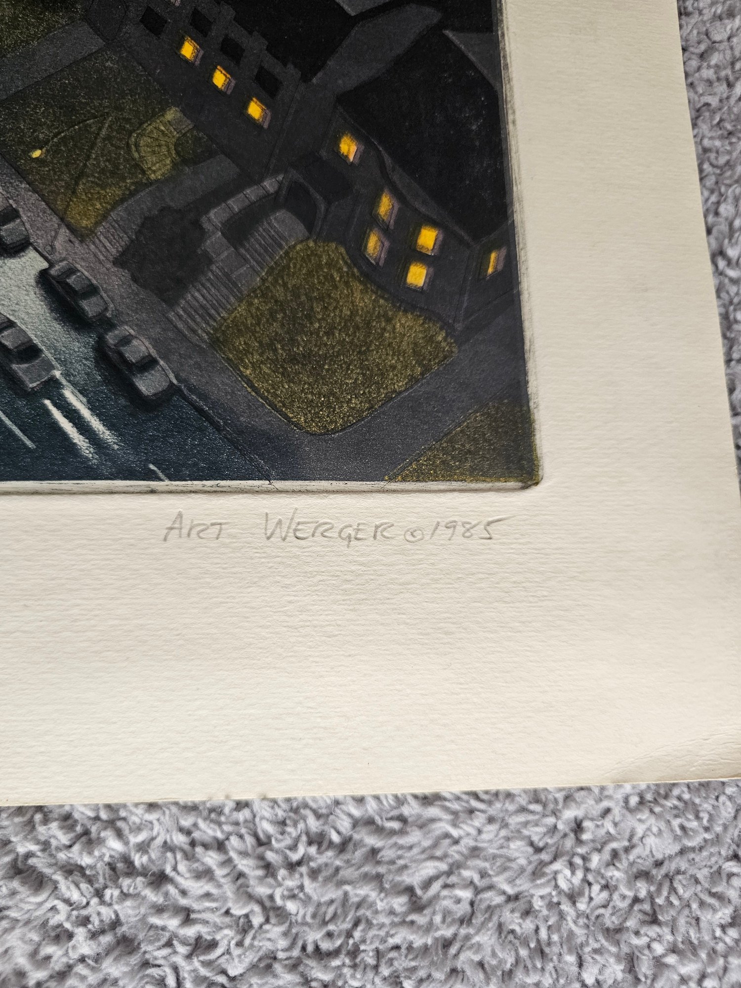 Art Werger Signed Etching Titled Urban Nocturn Numbered 15/25 1985 C64