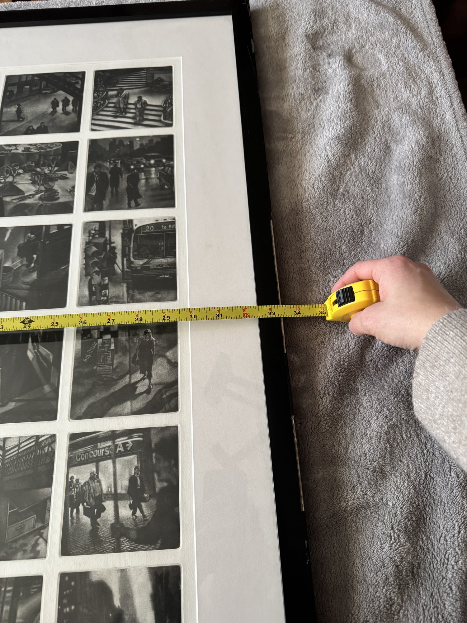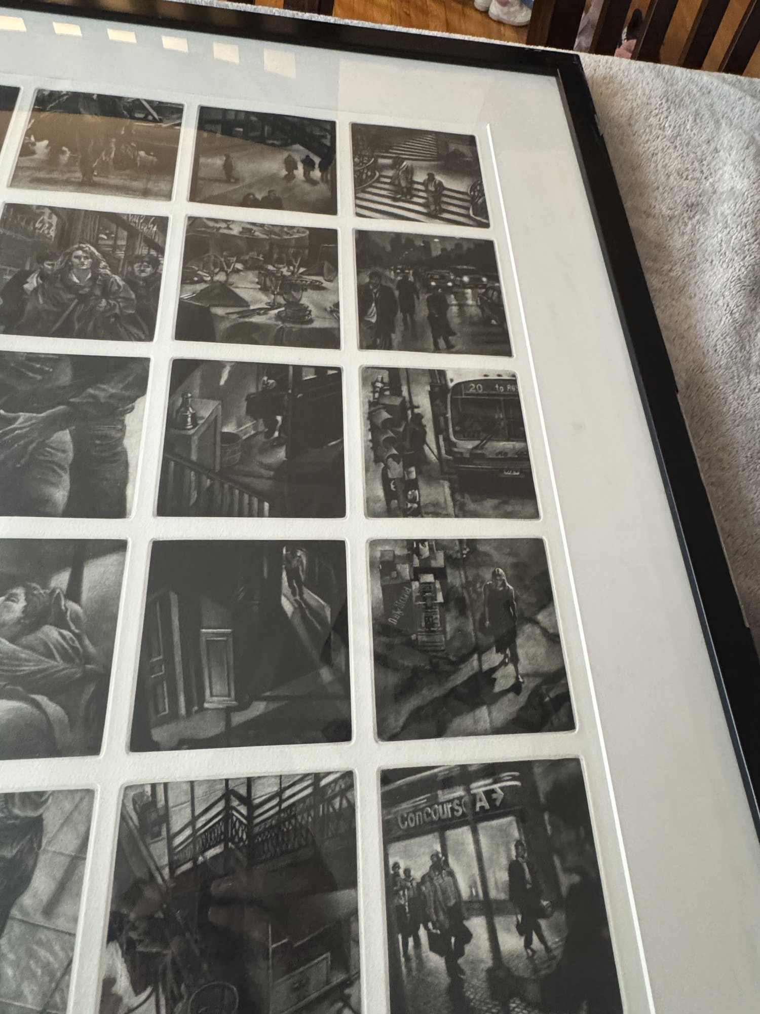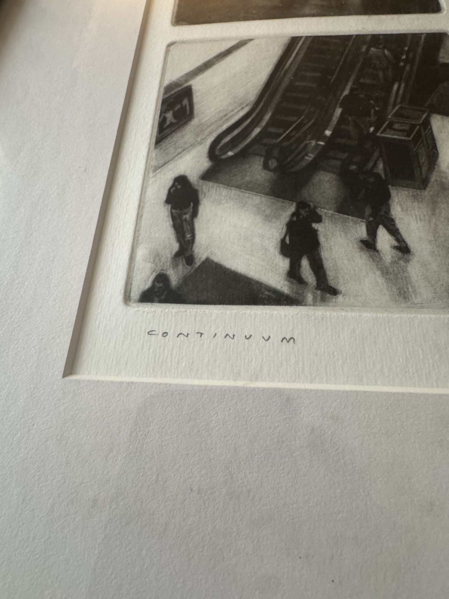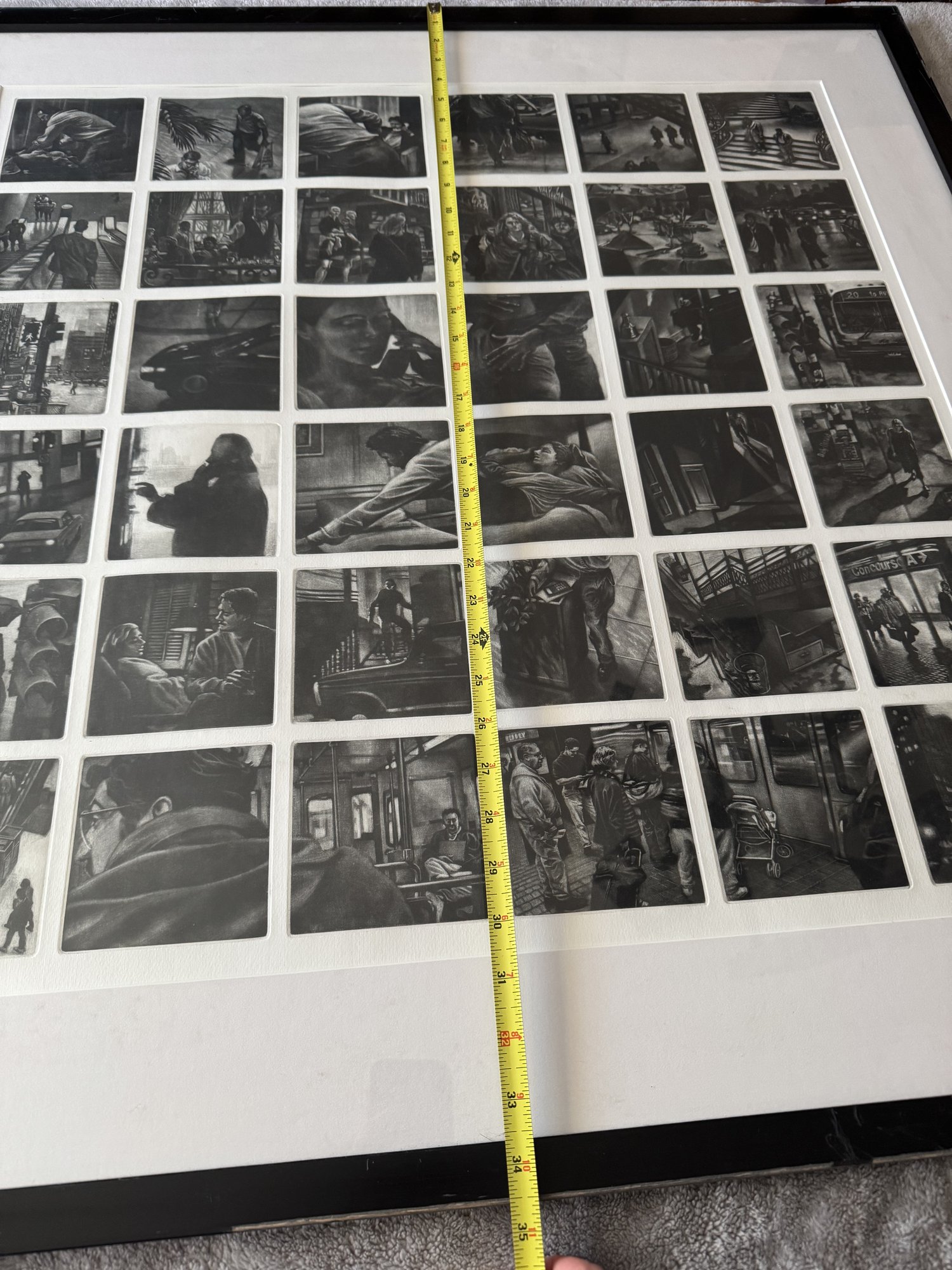 Signed. dated, and titled in pencil. Thirty-six individual plates. Row 1: "Prepared in Haste." "Even behind the Scenes." "She recognized His Voice." "Time Frame."" Almost Coincidence." "Especially Now." Row 2: "What had She said." " Although It Simplified Matters." Curious Indifference." "Their Singlemindedness." "The Setting." "Could go to Greater Lengths." Row 3: "Walk." "Pay Closer Attention." "Shifting Intentions." "An Obvious Question." "The Oddness of Your Home." 'Whatever Occurs" Row 4: "Vanishing." "Just a Reminder." "The Power of Concentration." "Fragmented Thoughts." "Through Corridors." "Late Afternoon." Row 5: "During His Absence." "Beyond a Basic Premise." "Events Pending." "An Eye for Meticulous Detail." "Barely a Month Had Elasped." "Central Nervous." Row 6: "Only a Community by Definition." "The Atrophy of Memory." "Within a Normal Life." "Forgotten Names." "Rising Expectation." "Obscured Goals."