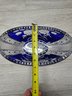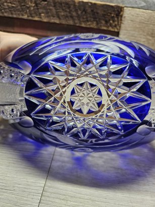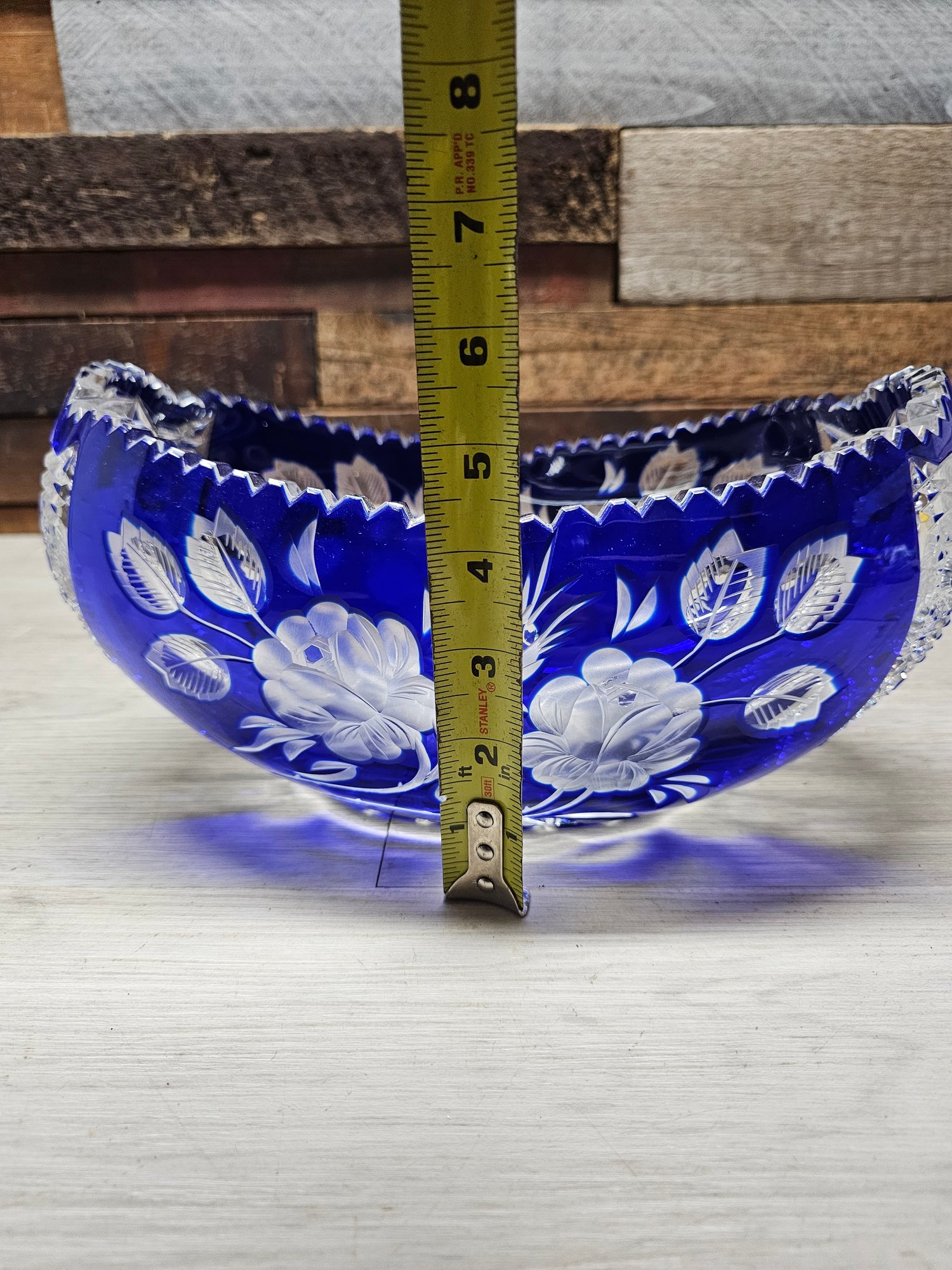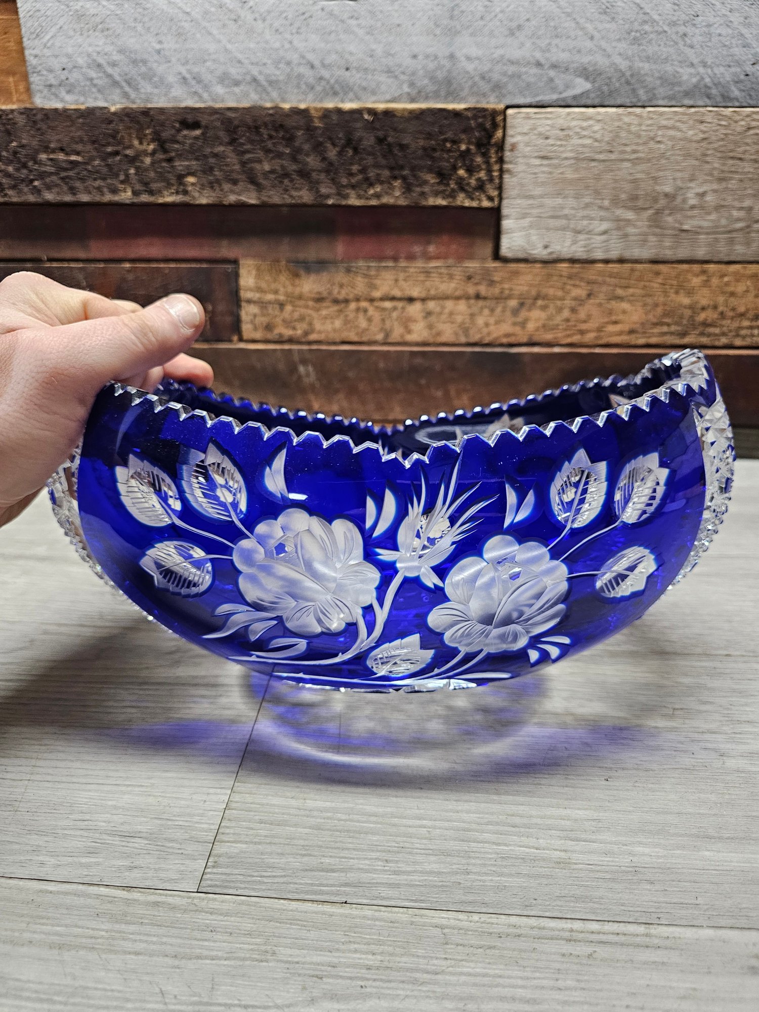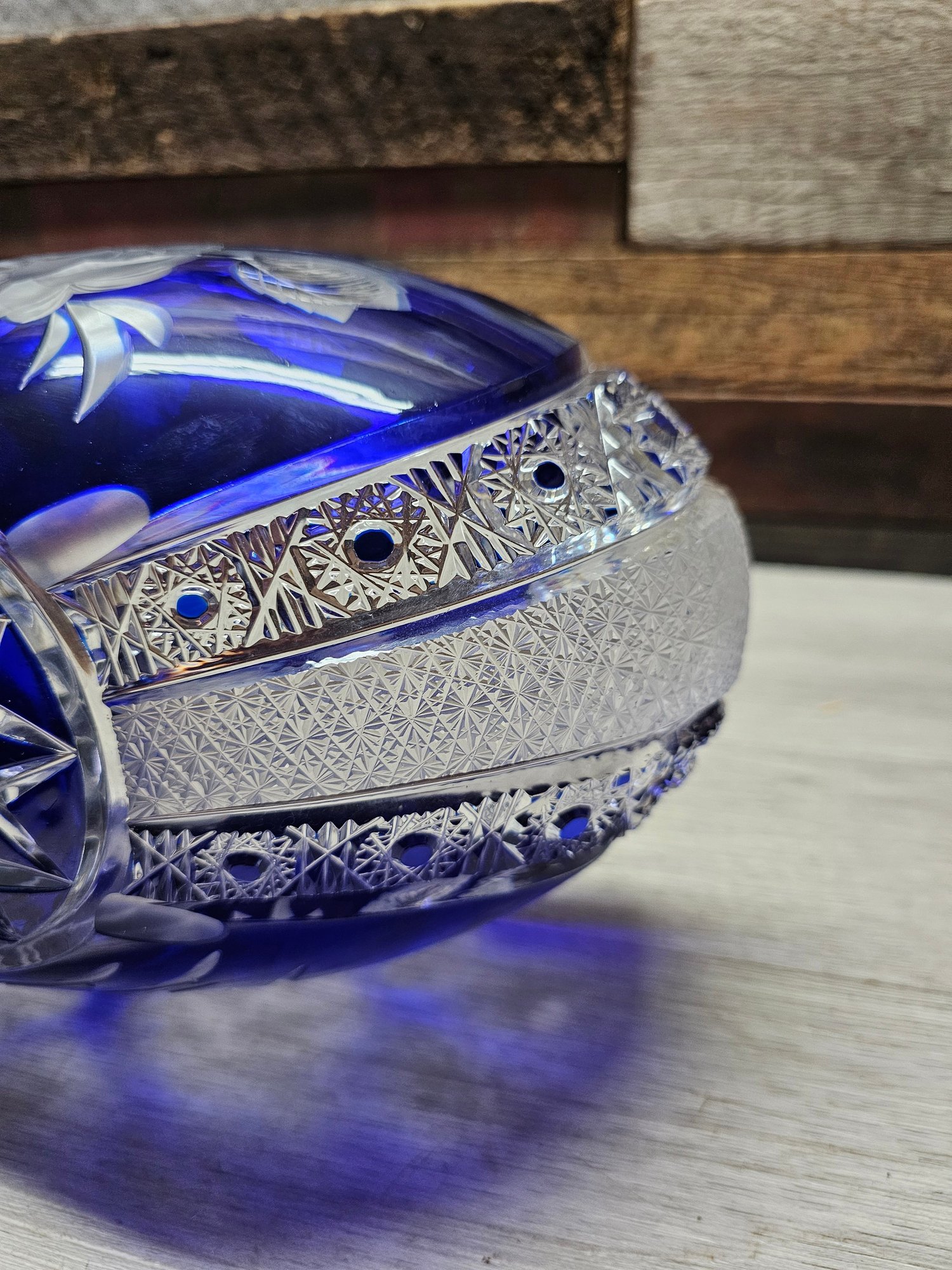 Awesome Ornate Cut Blue Glass Display Oval Bowl A6