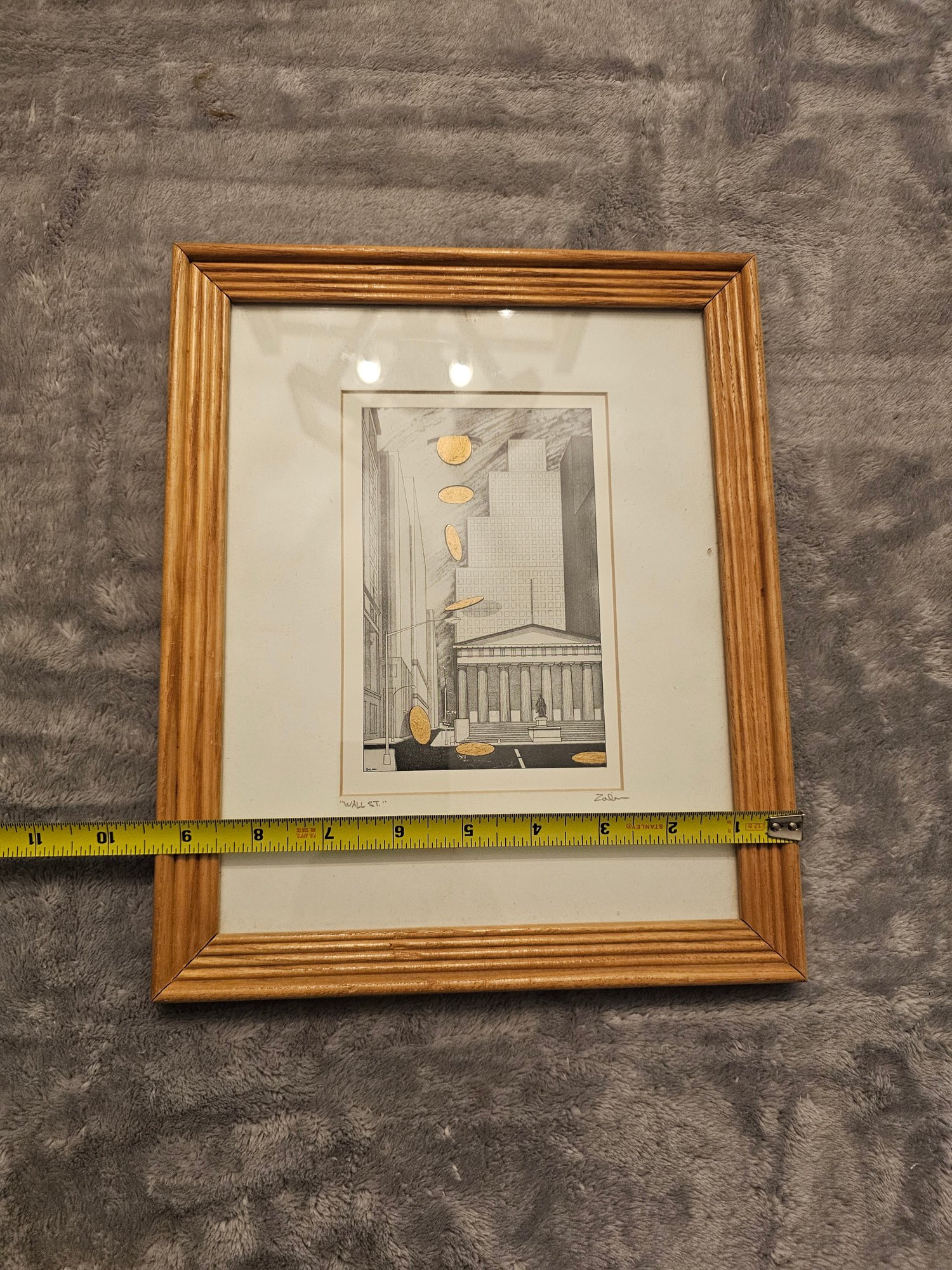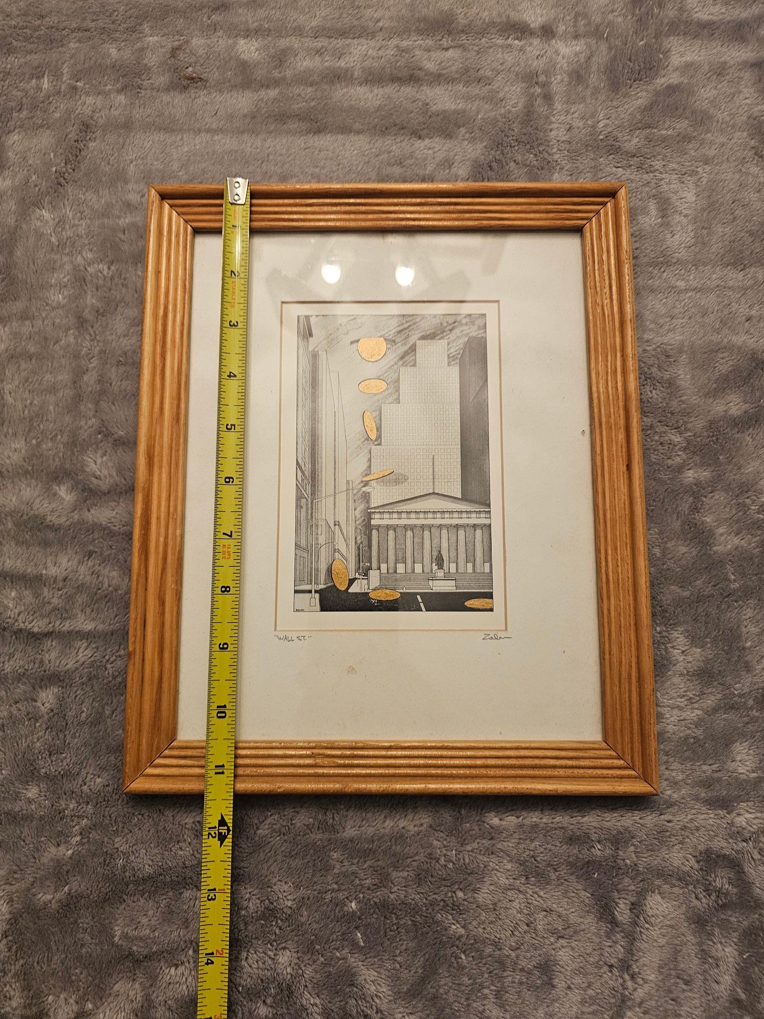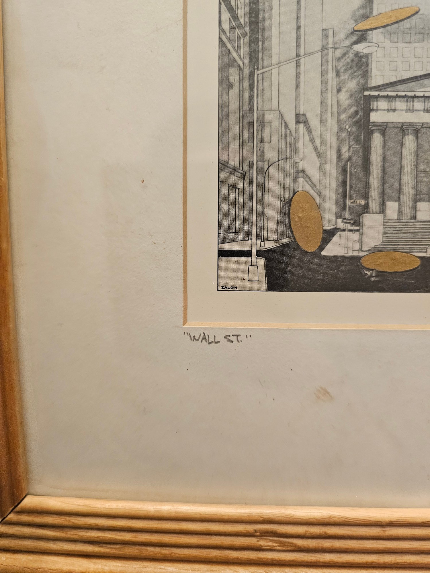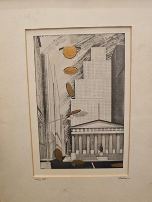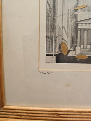 Bernard Zalon Wall Street Etching Embossed Signed Framed Matted E88