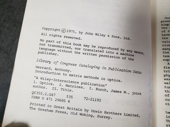 Book: 1975 Intro To Matrix Methods In Optics D1 Stack 1
