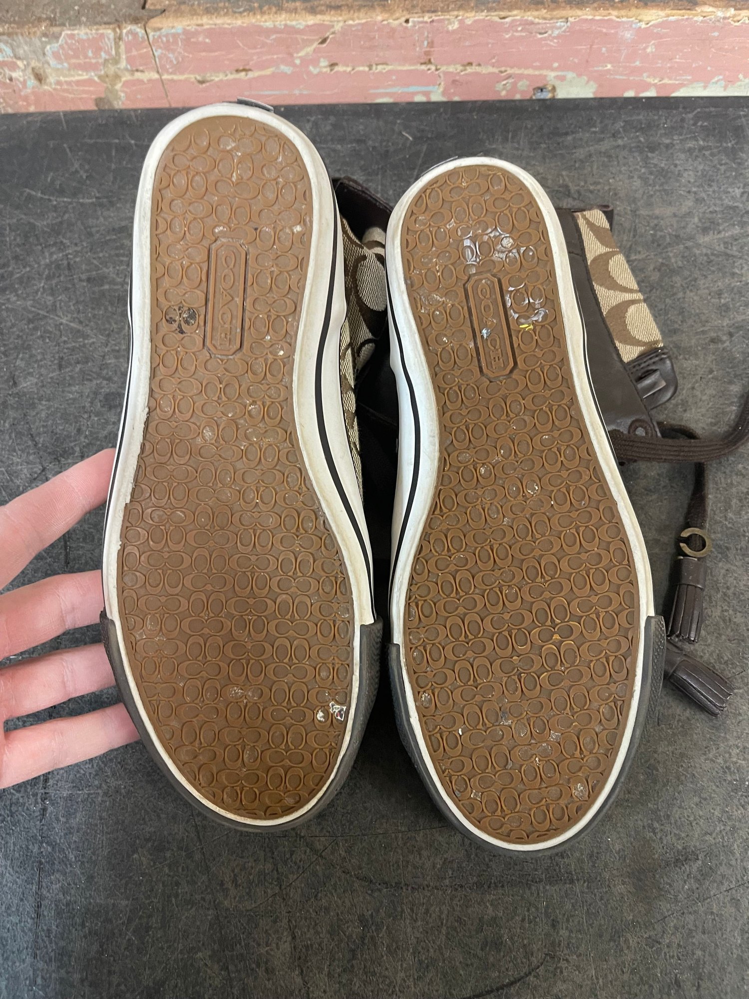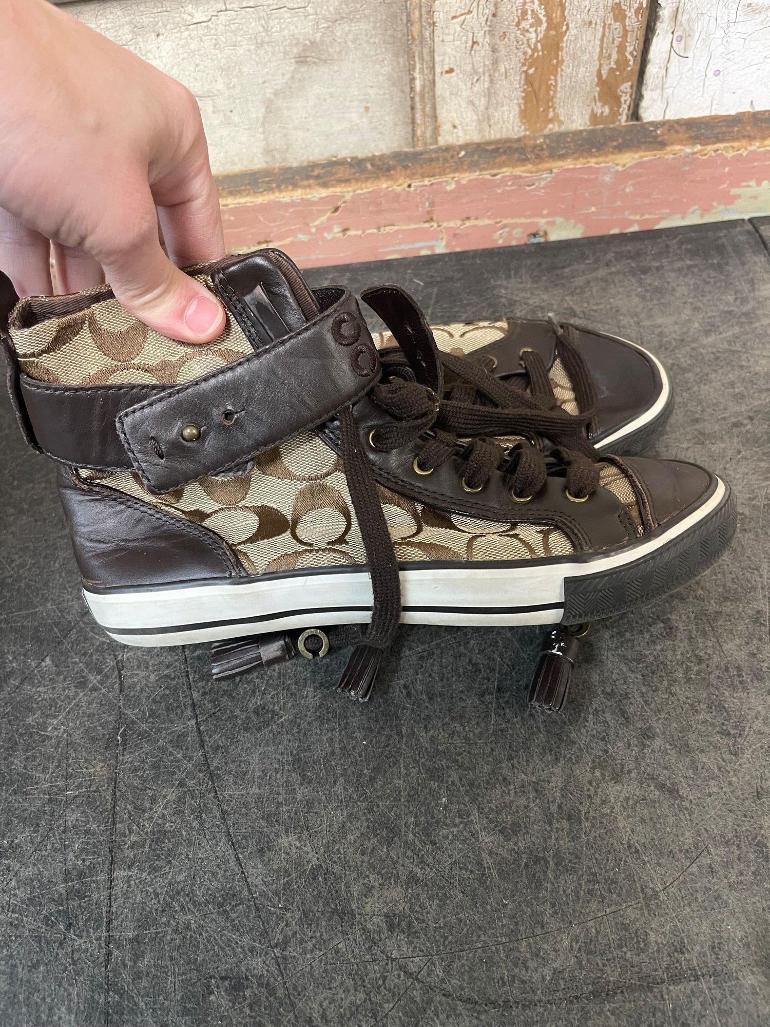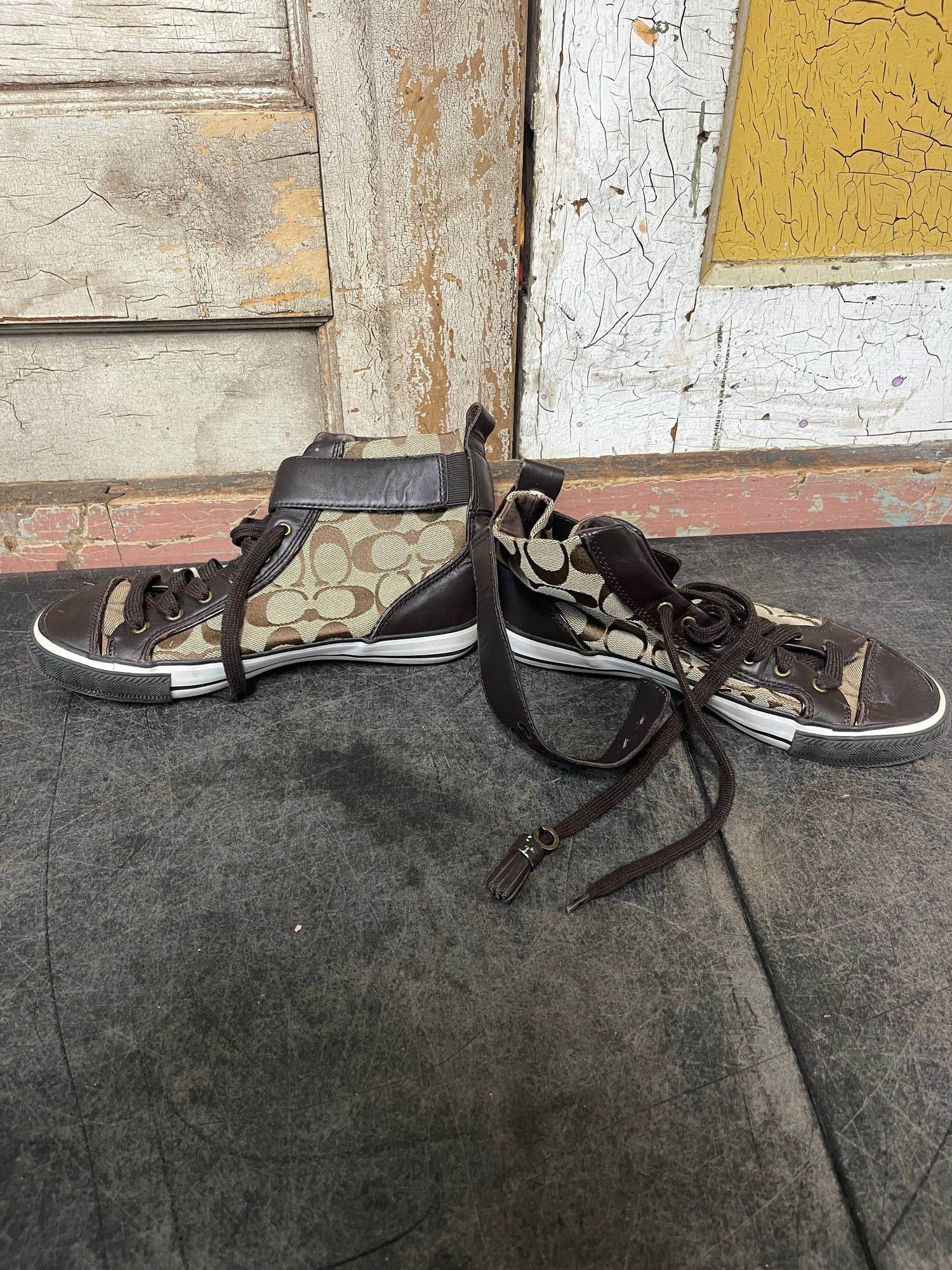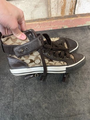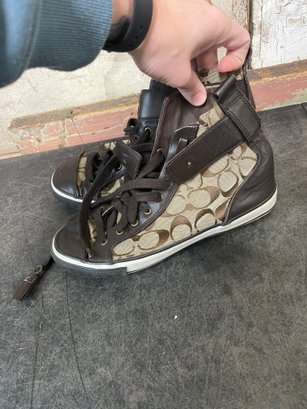 Brown Coach High-top Sneakers With A Signature Canvas Logo Pattern Size 65 (l2)