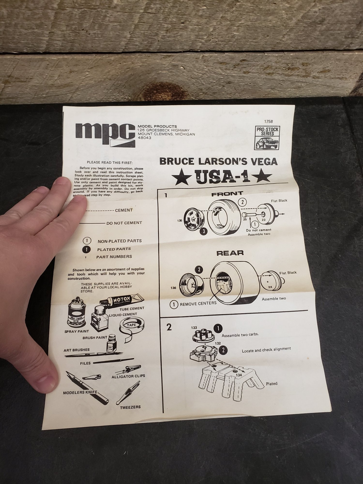 Bruce Larson's MPC 1/25 Scale Model Kit USA-1 1974 Pro Stock Chevrolet Vega Rs4
