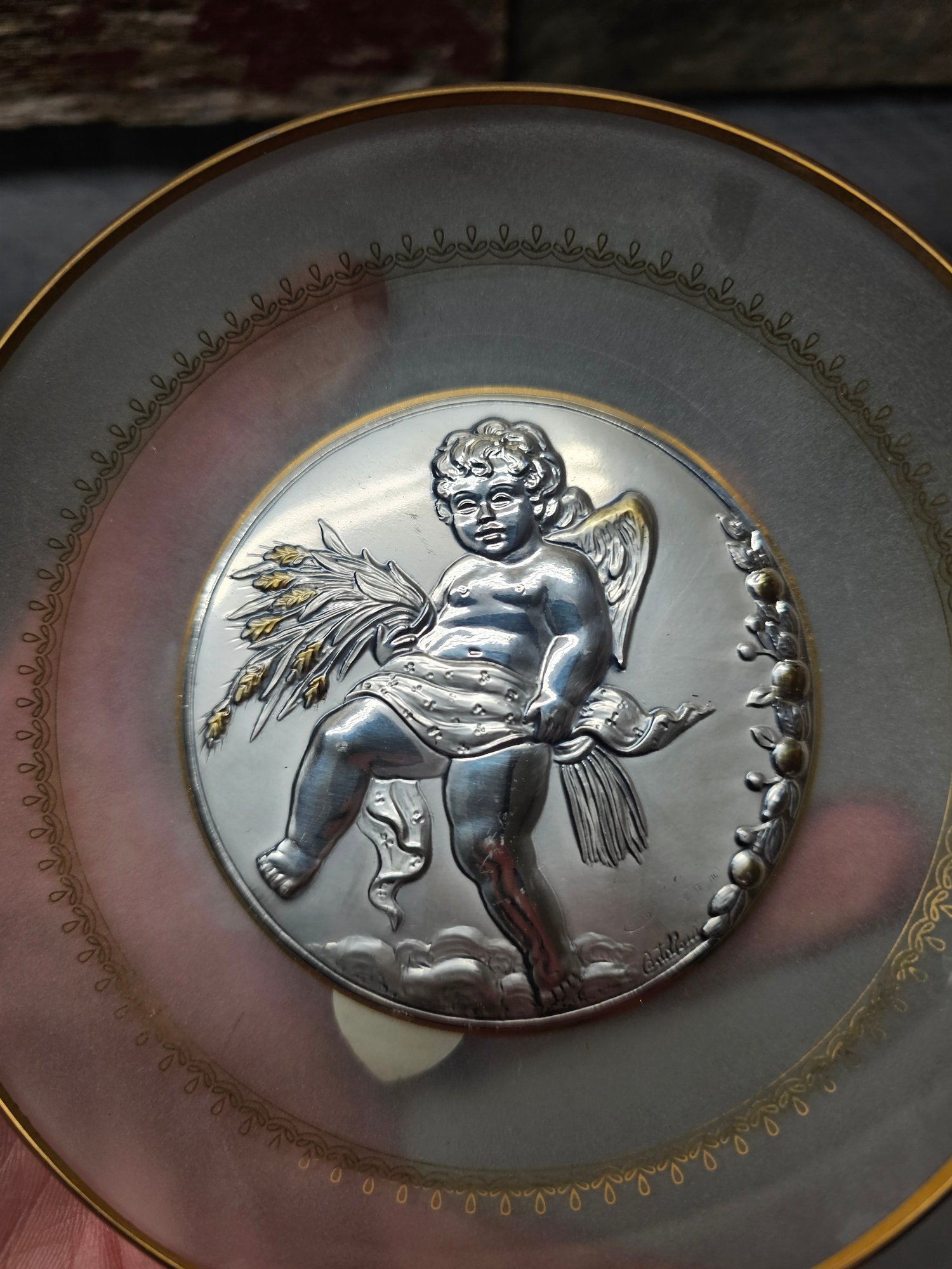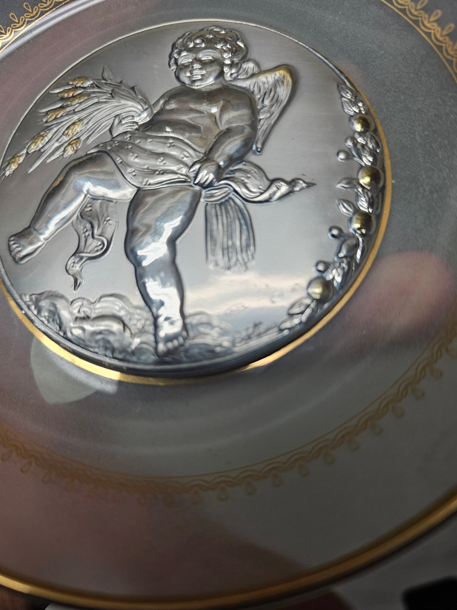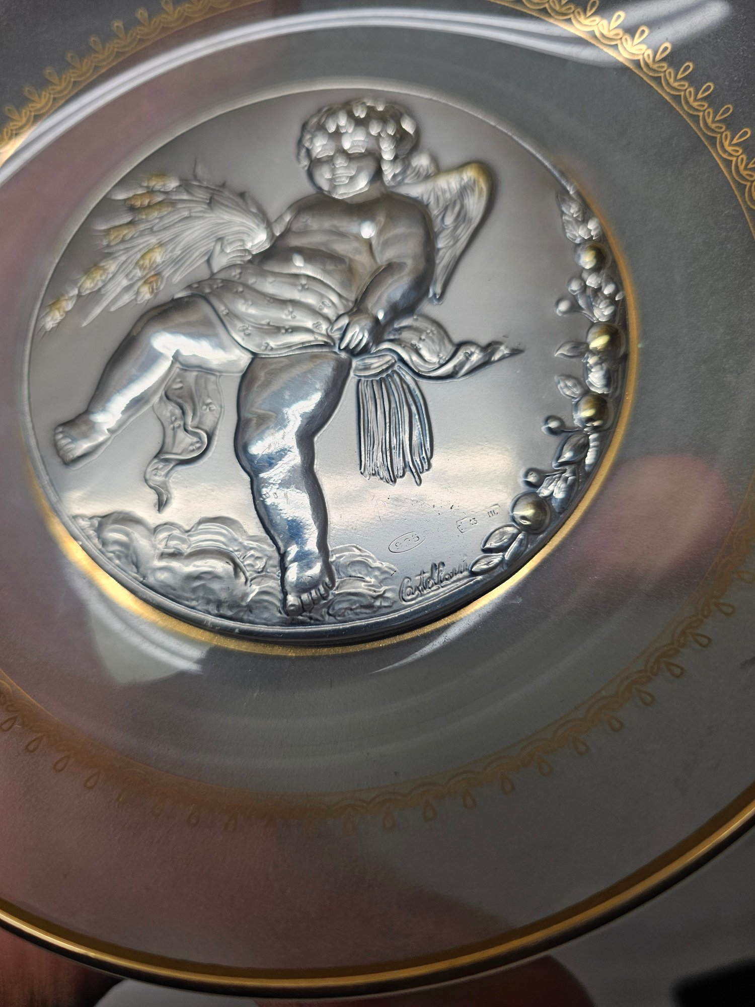 Castellani Silver 925 Round Bas-relief Wall Decor Made In Italy Hand Made A4
