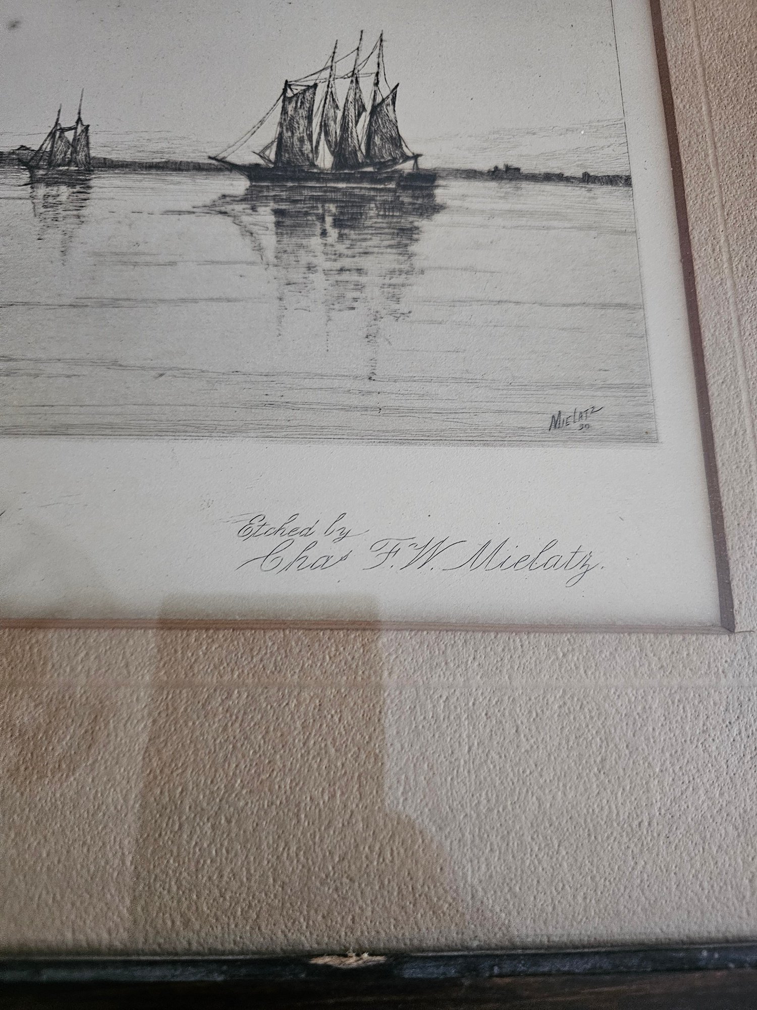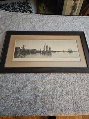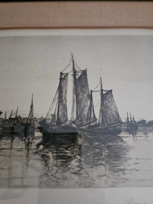 Charles Mielatz Etching Fishing Smacks, Newport Rhode Island A17