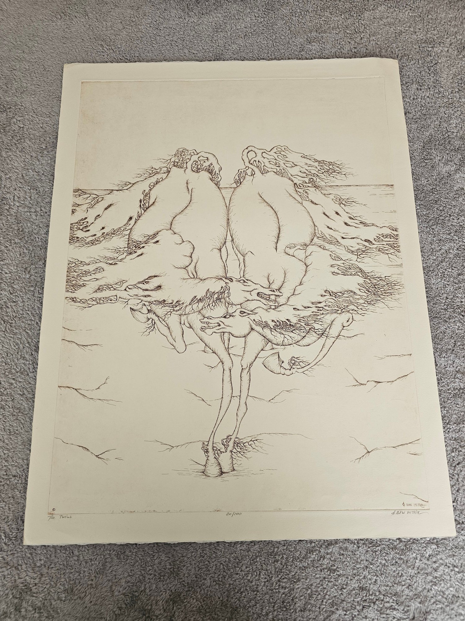 Dan Mitra Signed Etching Numbered 20/100 Titled The Twins D2