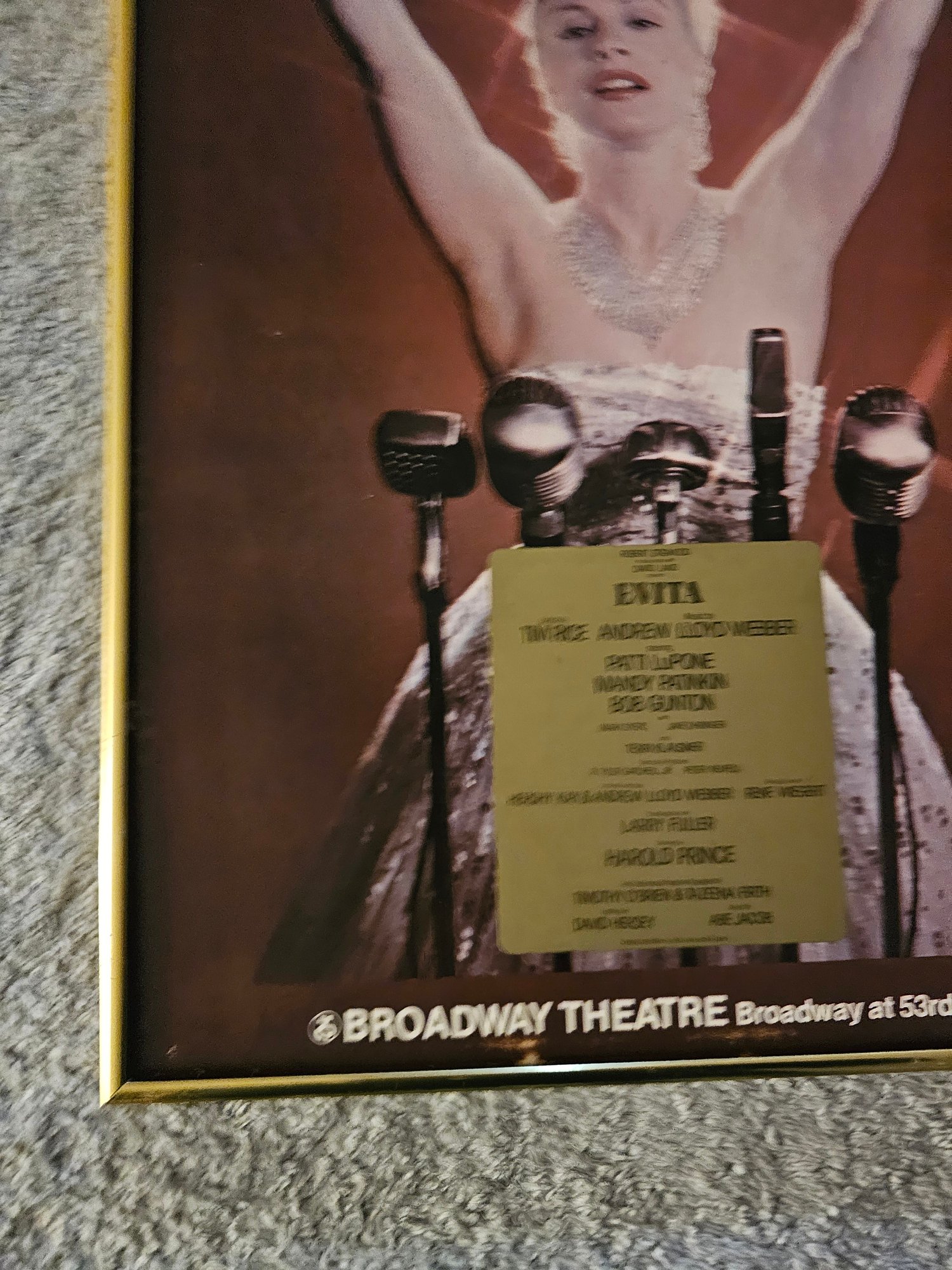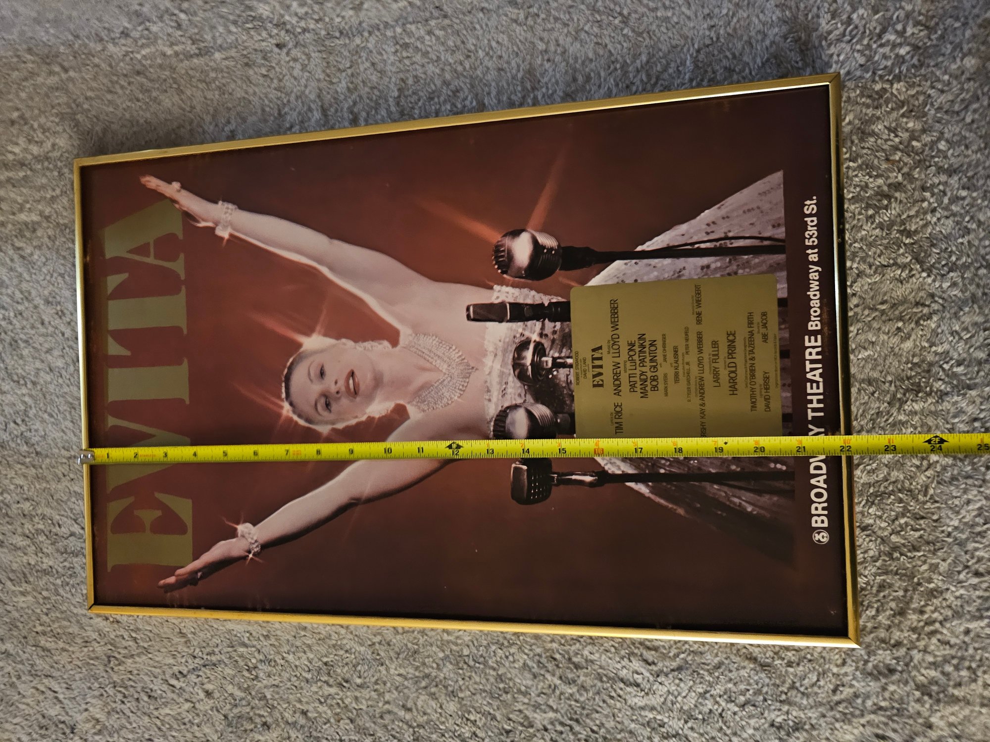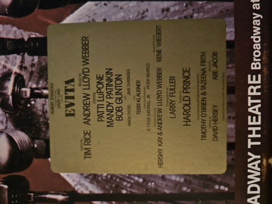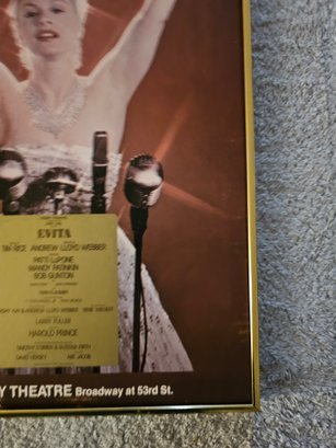 Evita Broadway Theatre Poster Patti LuPone 1979 Window Card Vintage Framed B78