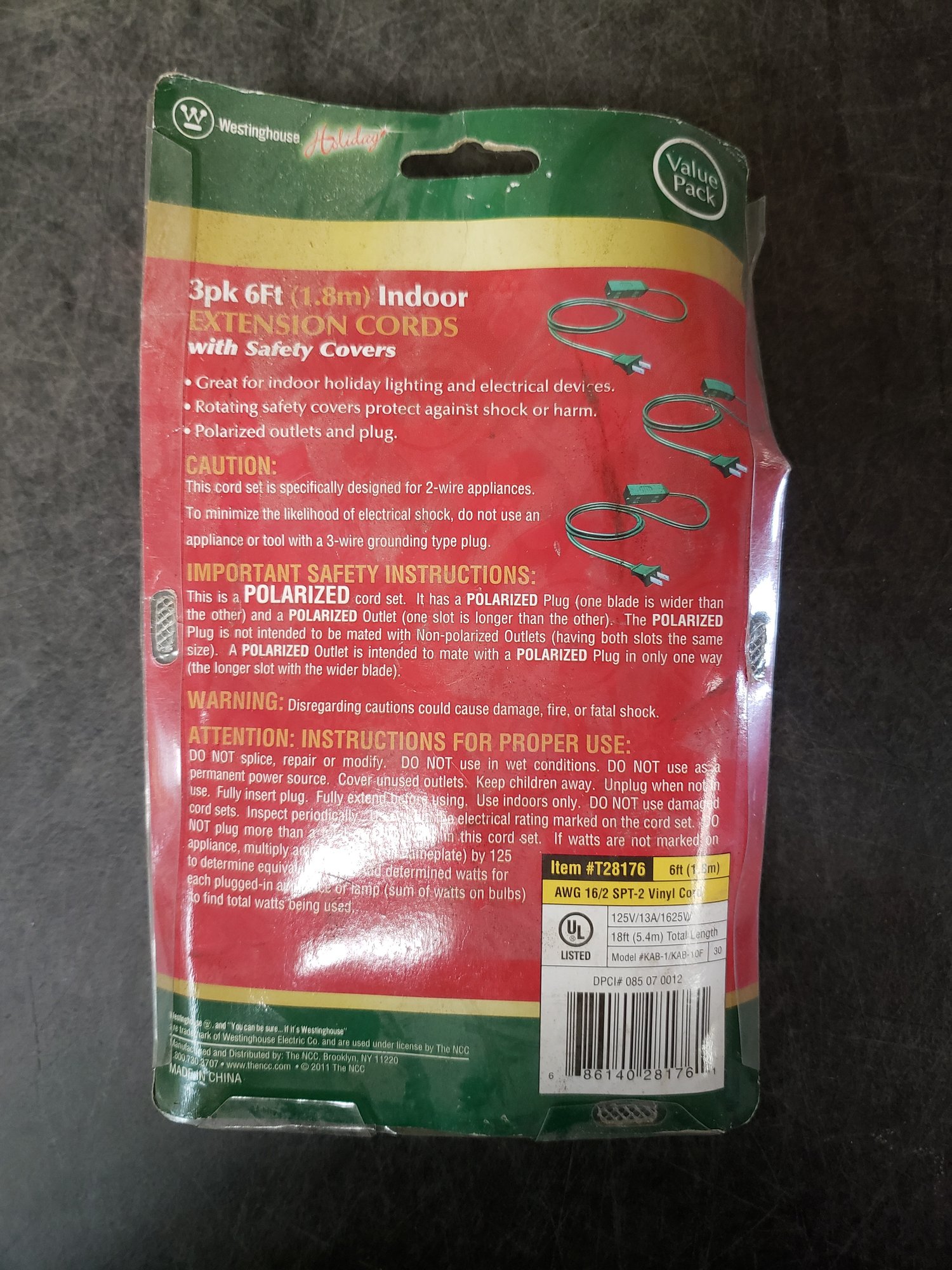 New 3-pack 3-outlet Indoor Extension Cords G3