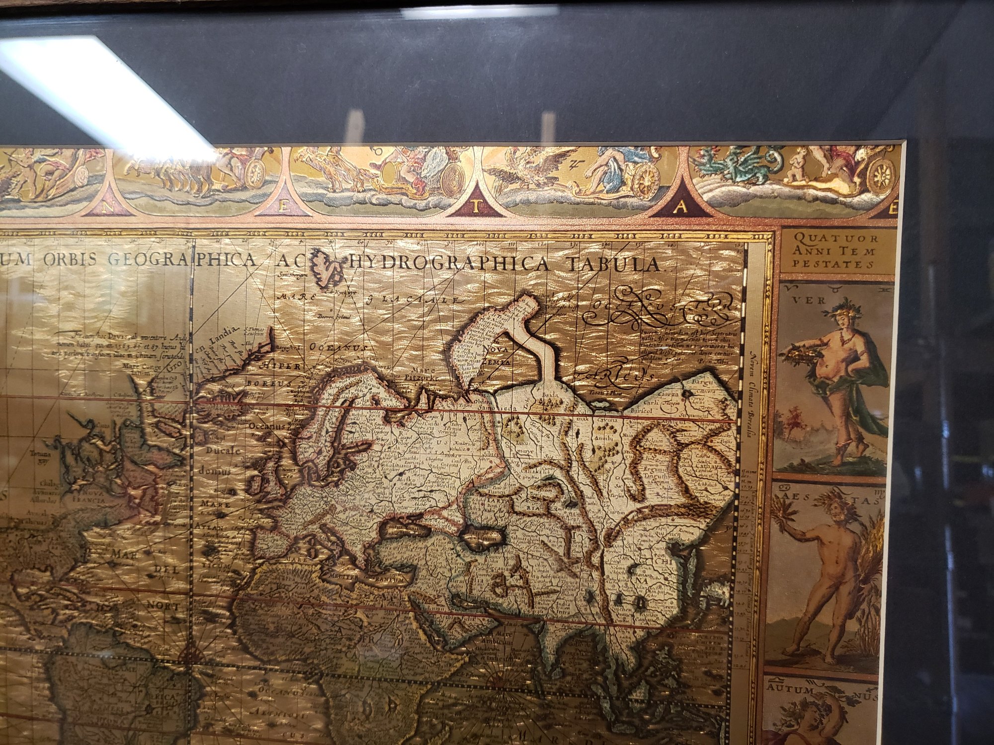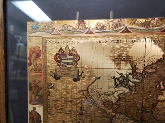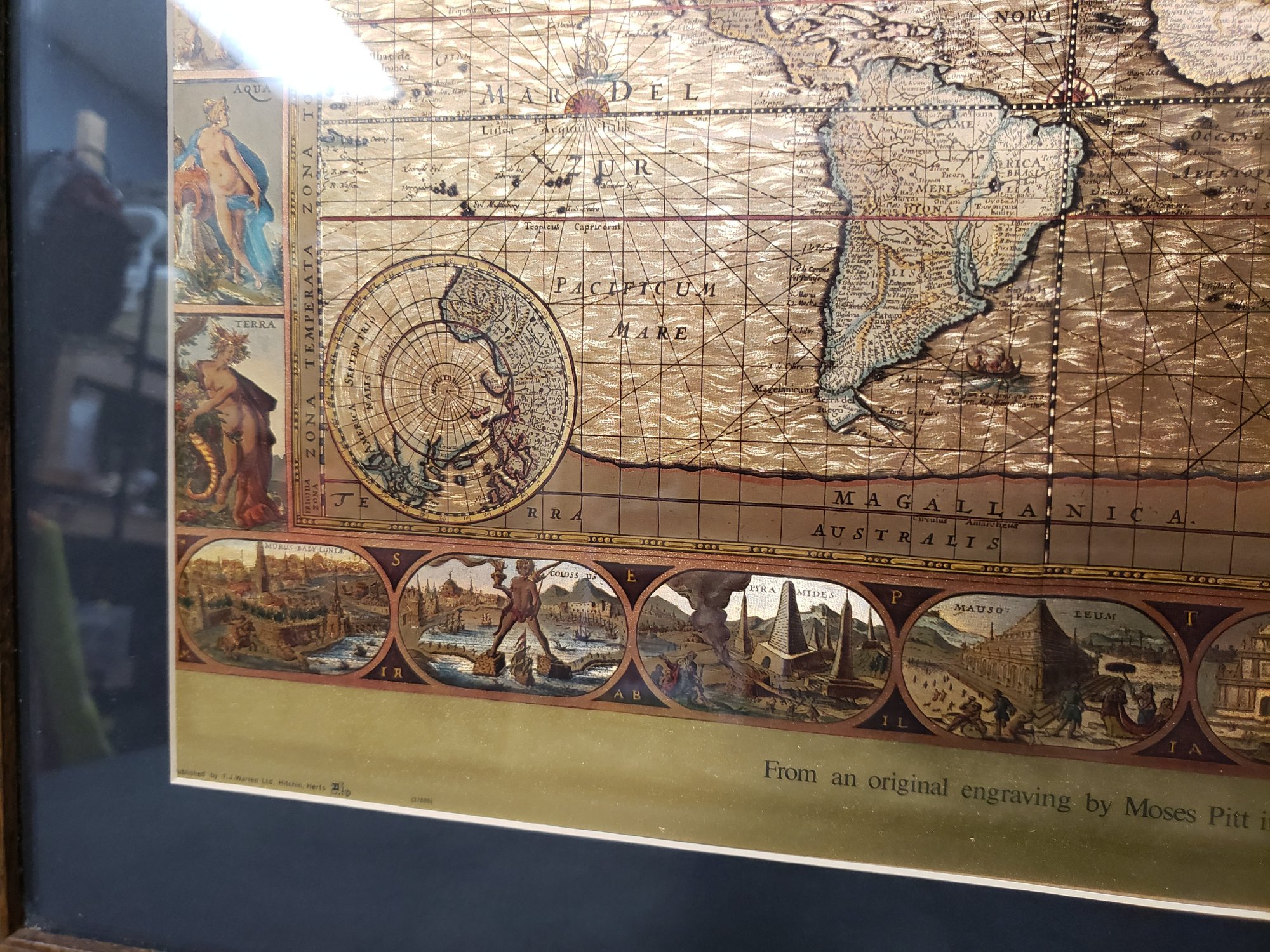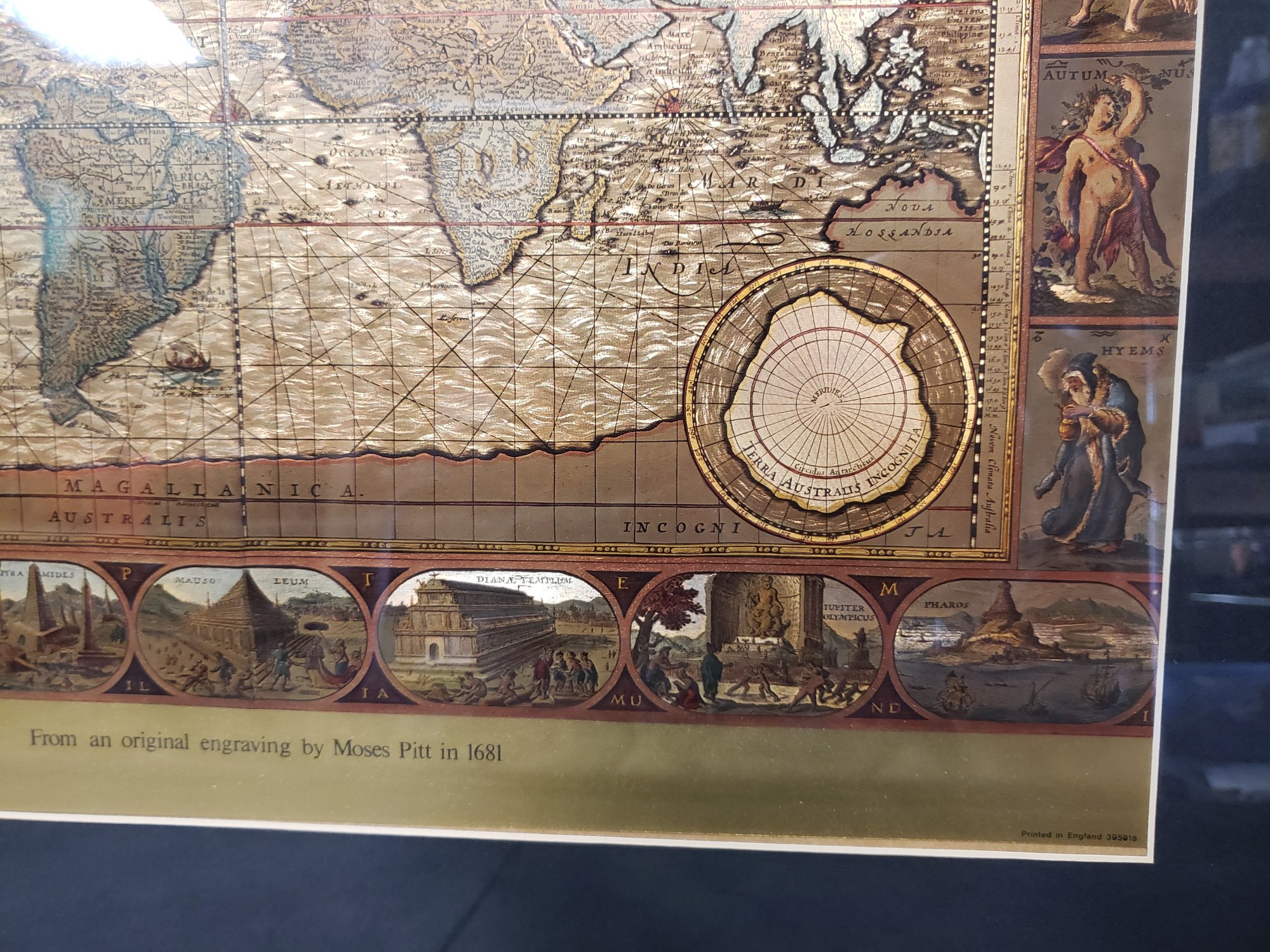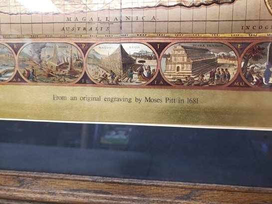 Framed Gilded 1681 Moses Pitt World Map Engraving Copy D1