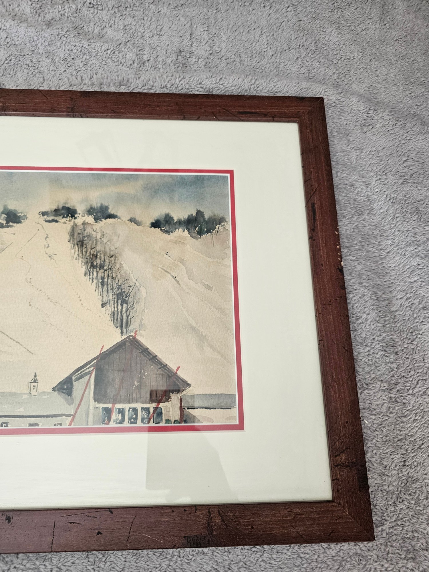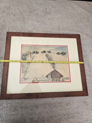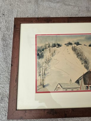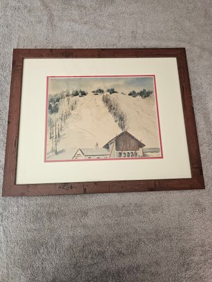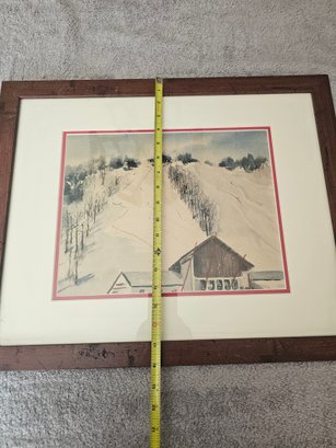 Framed Painting Ski Slope Moutain B42