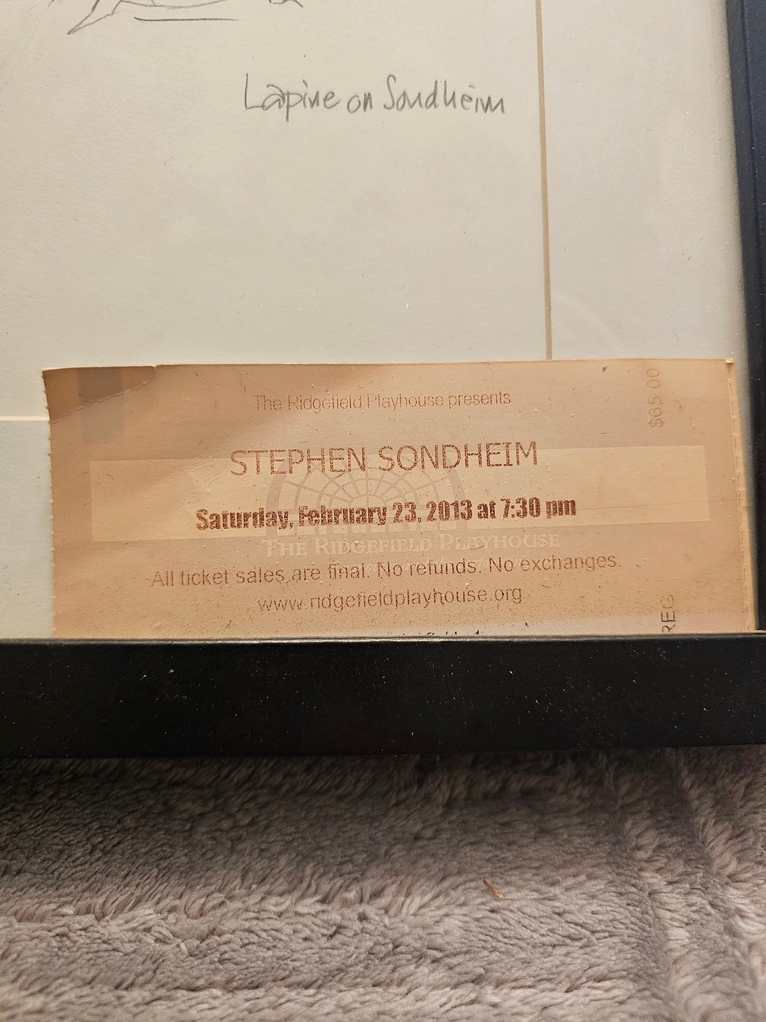 Framed Sketch Of Stephen Sondheim With Ticket E81
