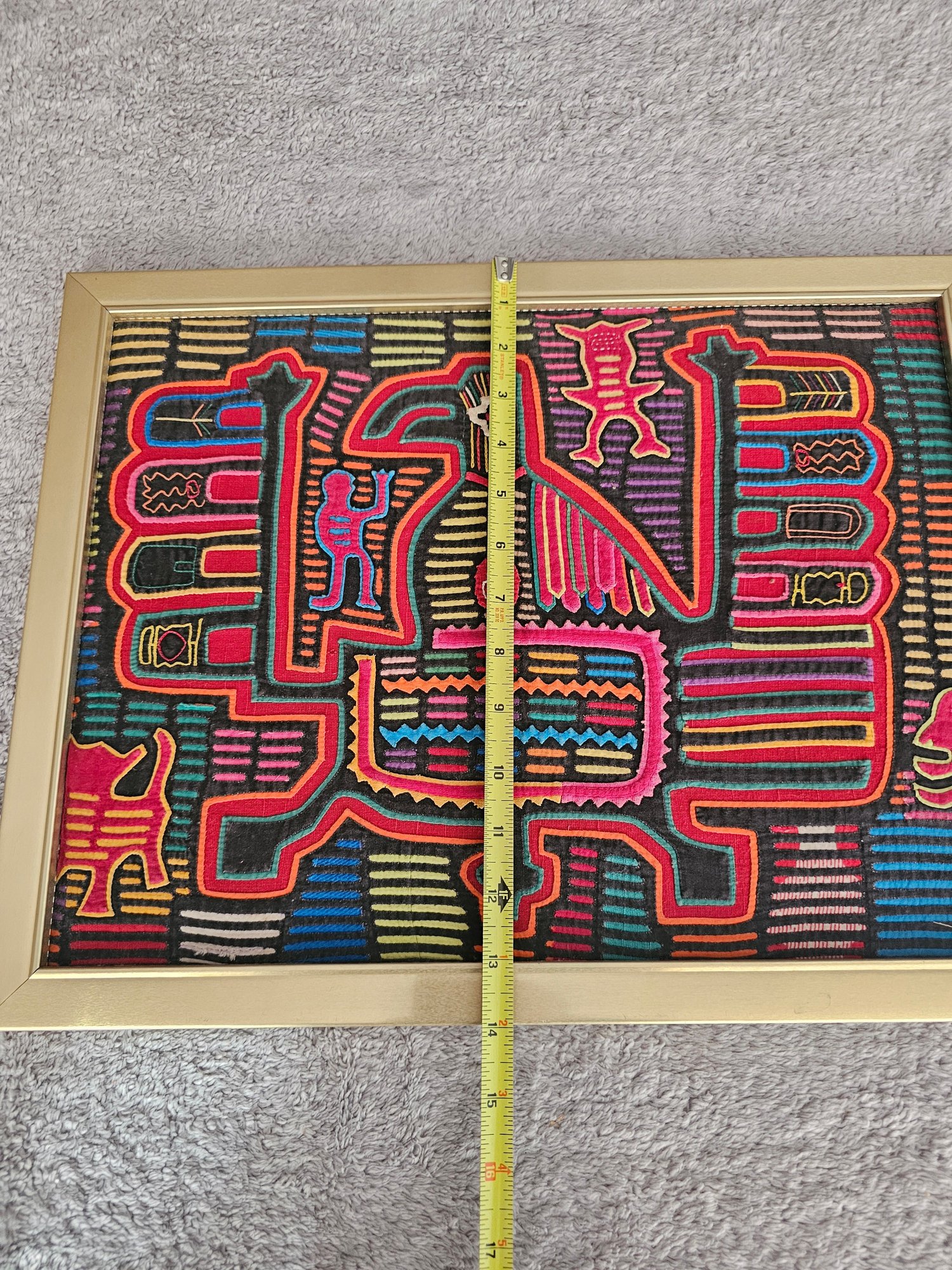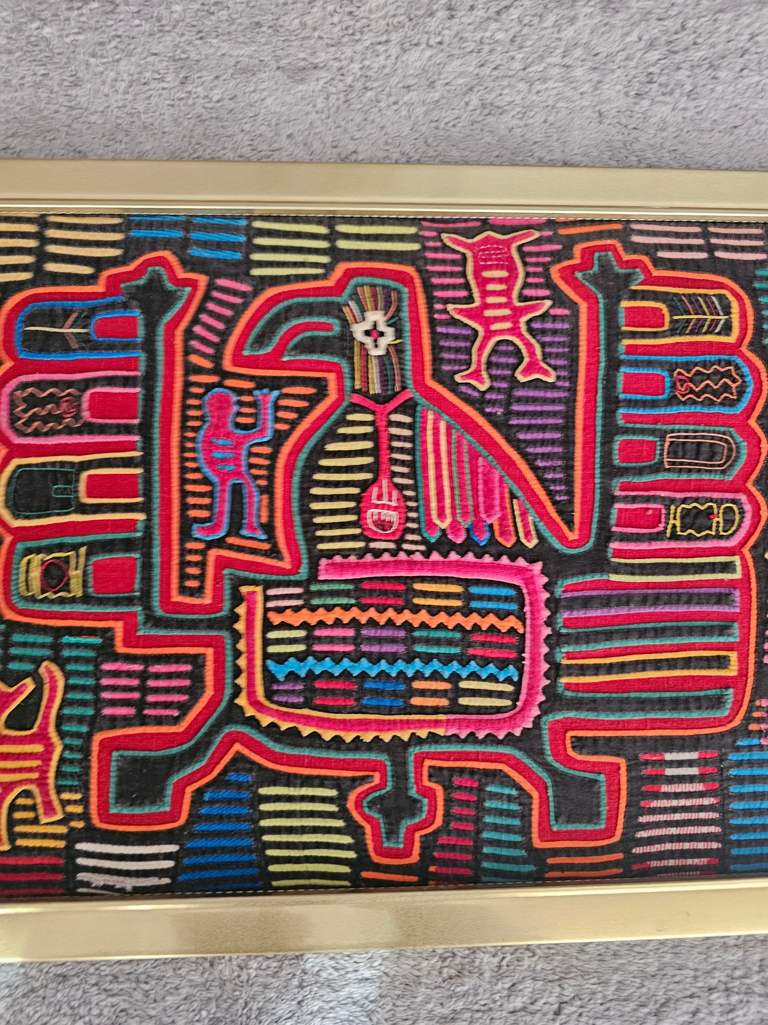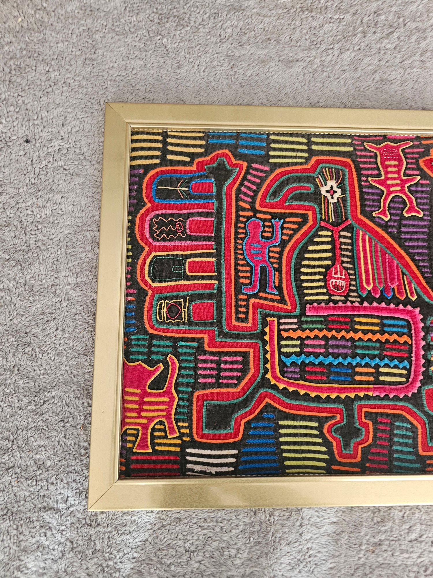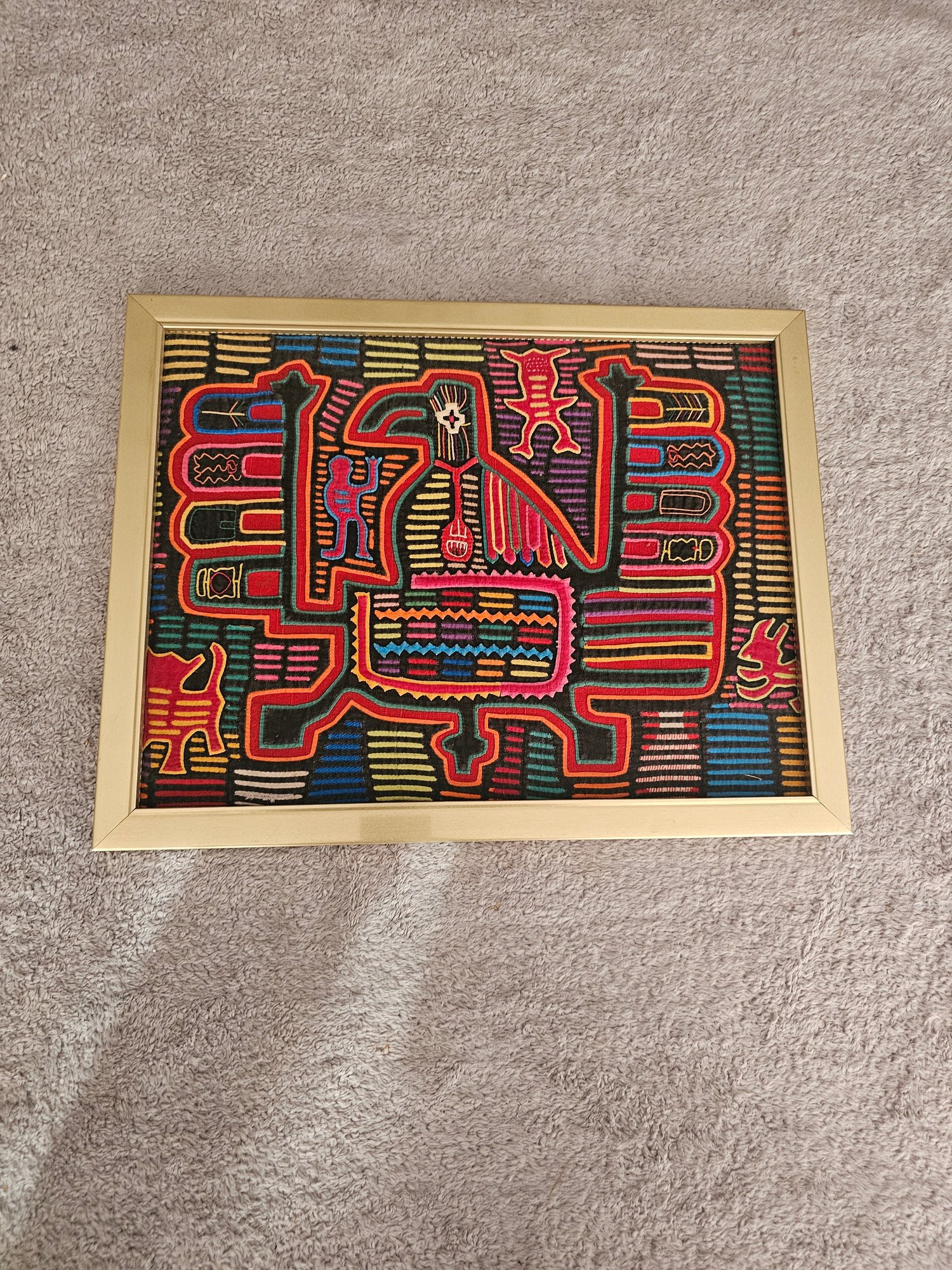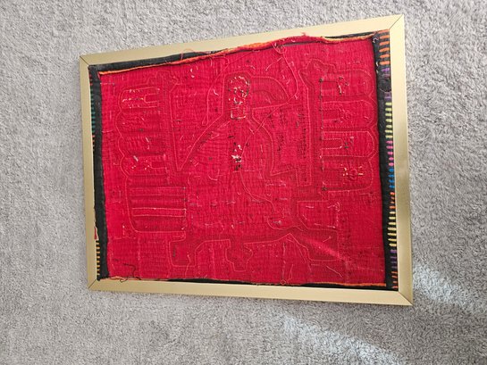 Framed Vintage Traditional Panama Kuna Mola Sewn Applique Folk Art Needlework B74