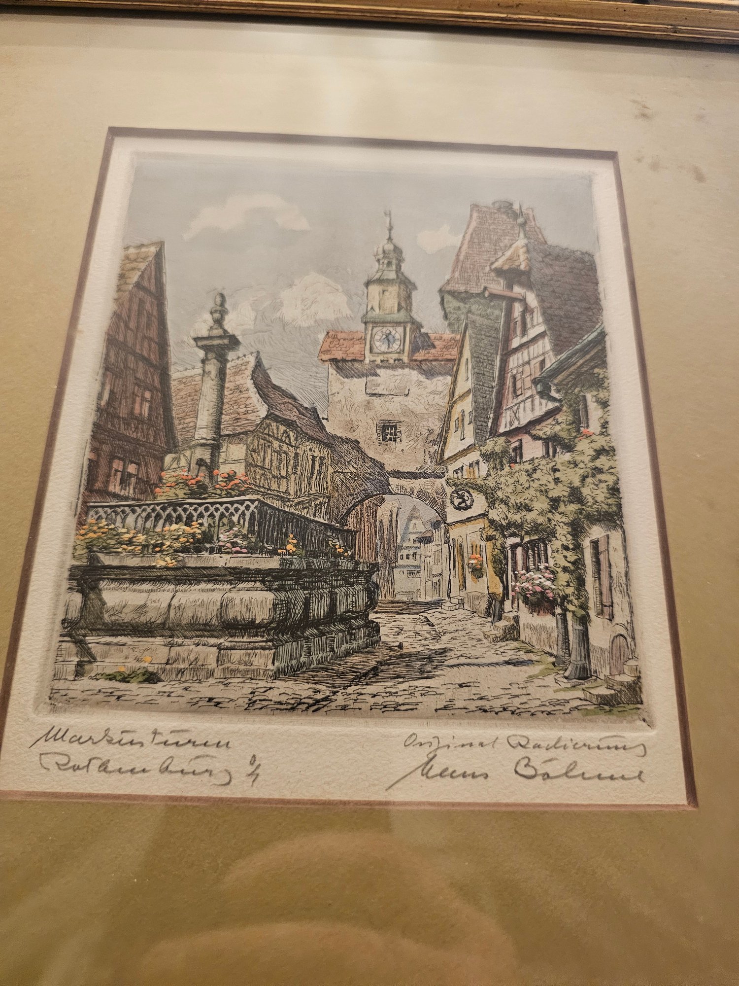 Hans Bohme (1905-1982) Signed & Framed Der Markusturm Germany Hand Color Etching E77