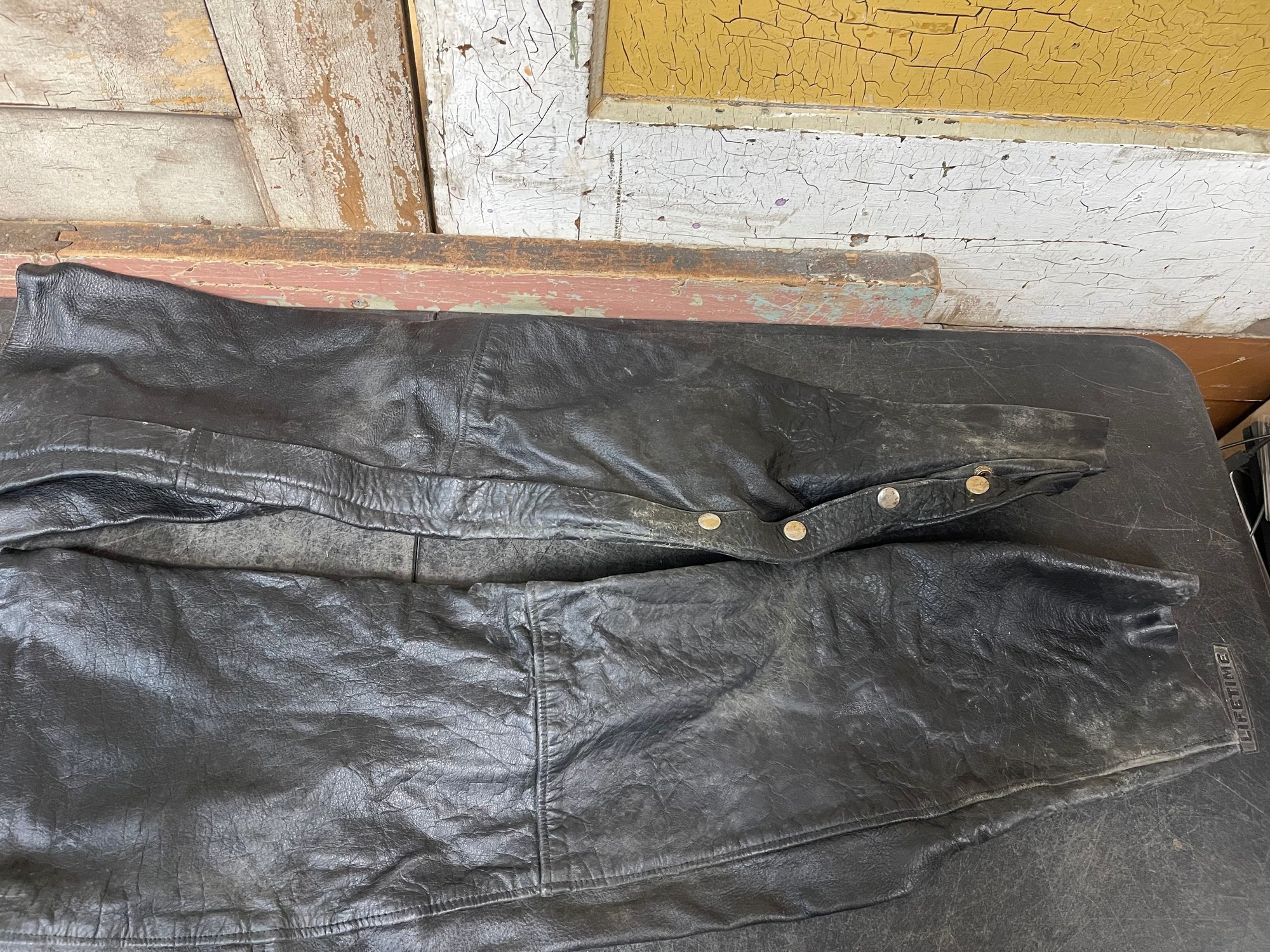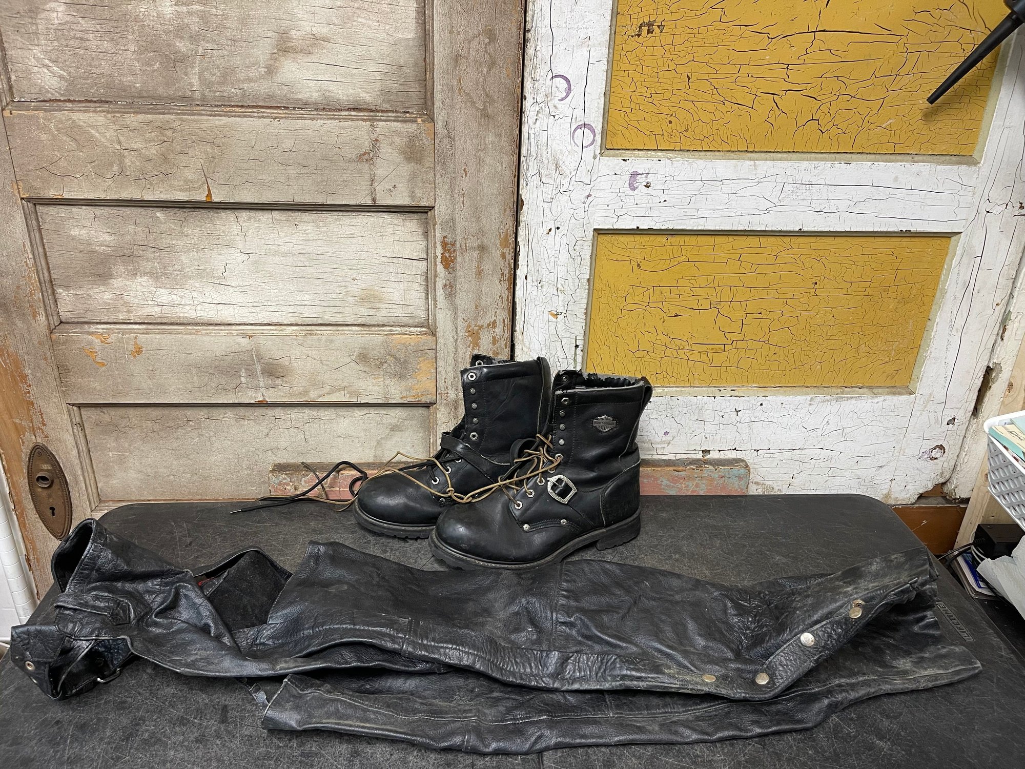 Harley Davidson Boots Size 11 & Hot Leather Chaps Size Small Lot Of 2 (H3)