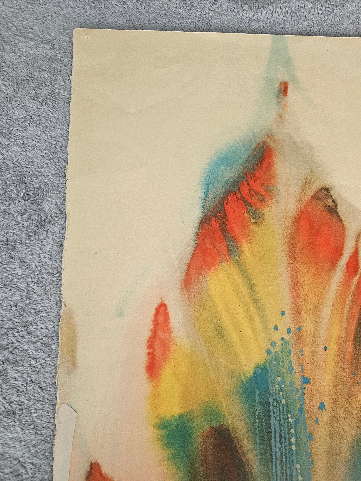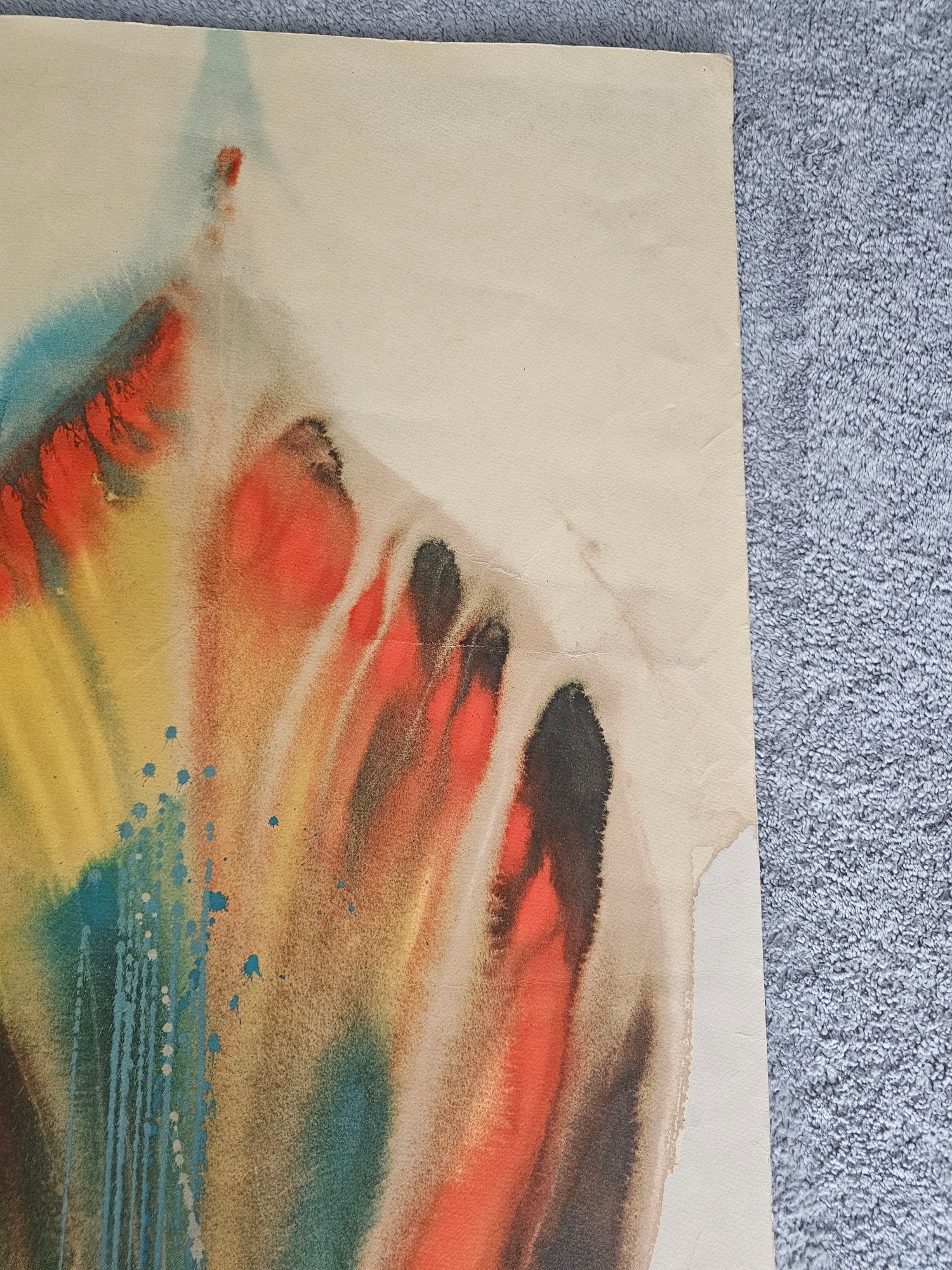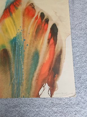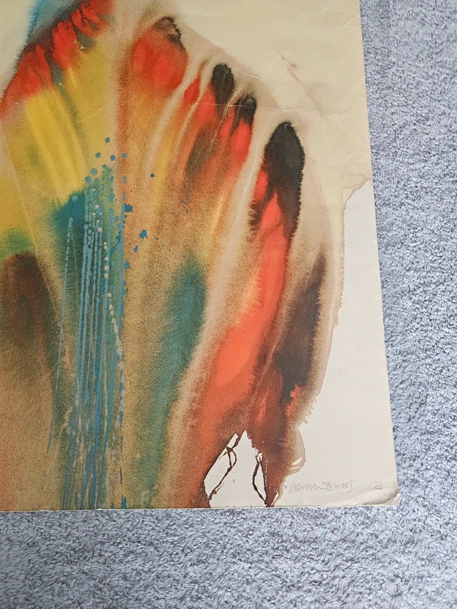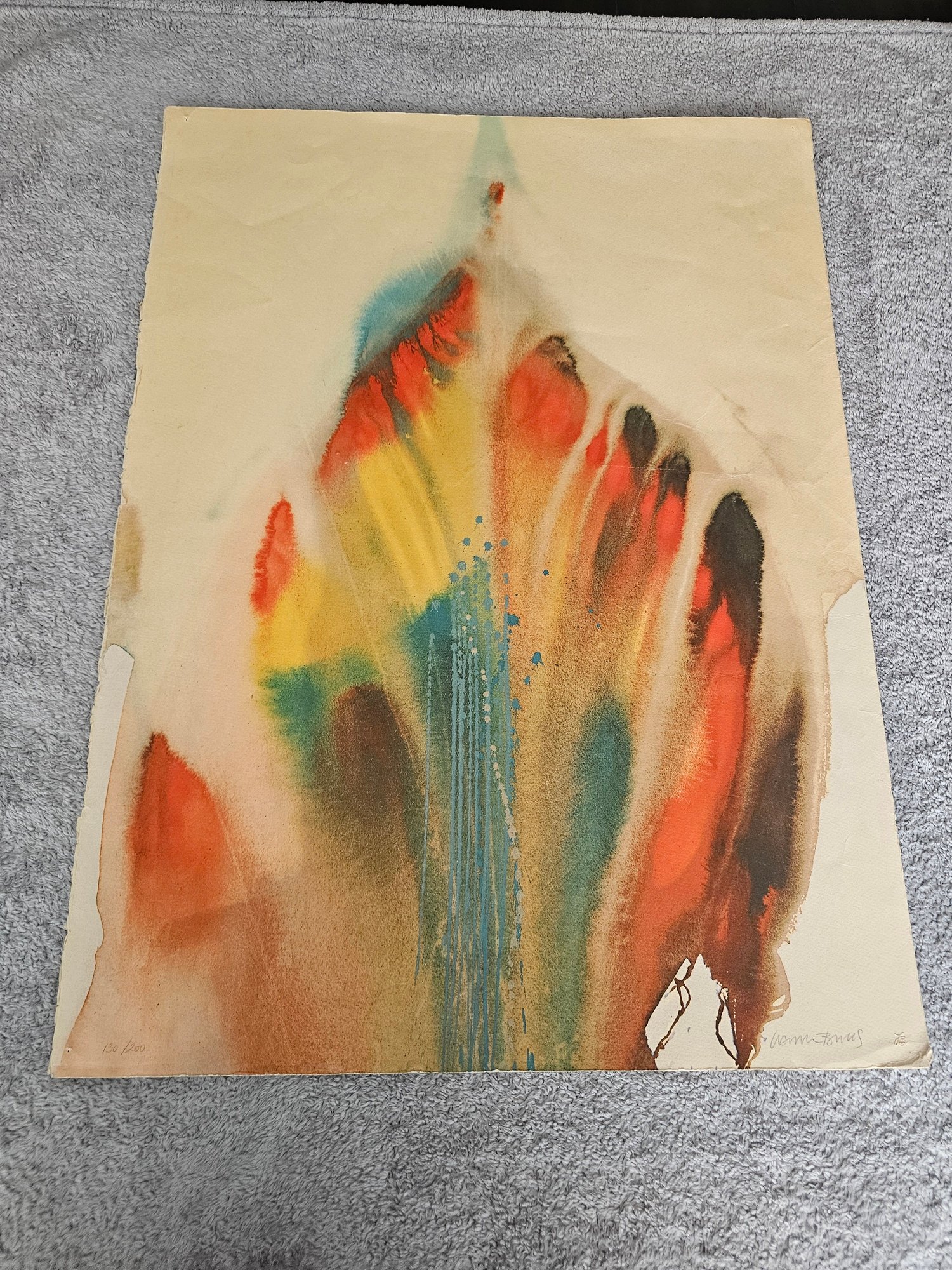 Lamar Briggs FEATHER DANCER Signed Lithograph, Abstract Color Wash, Native American Culture 1978 C76
