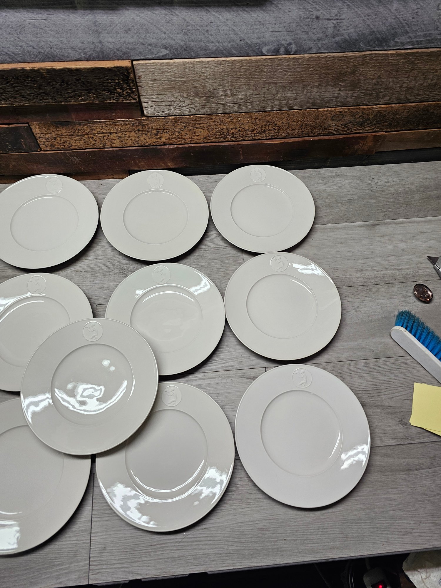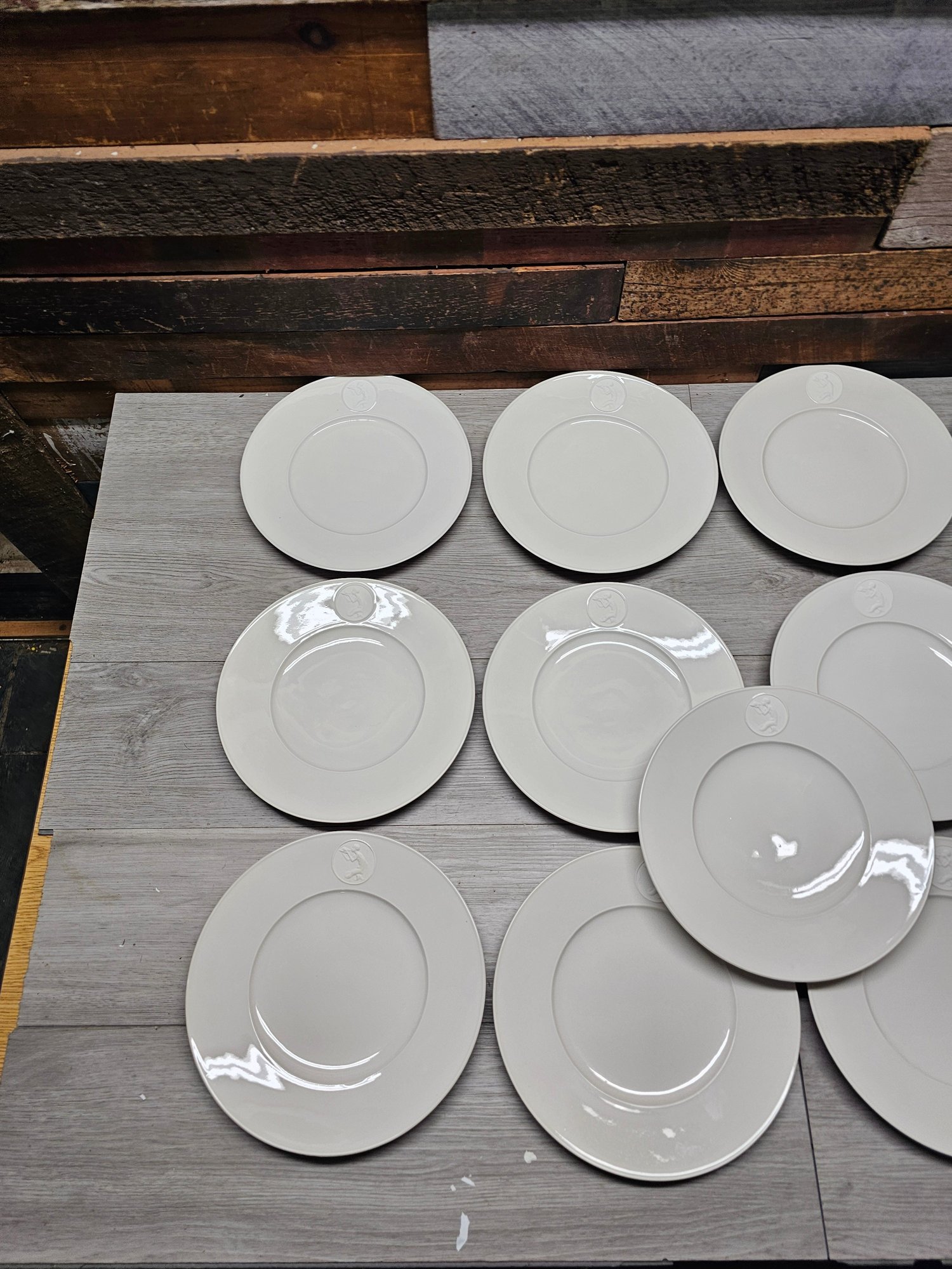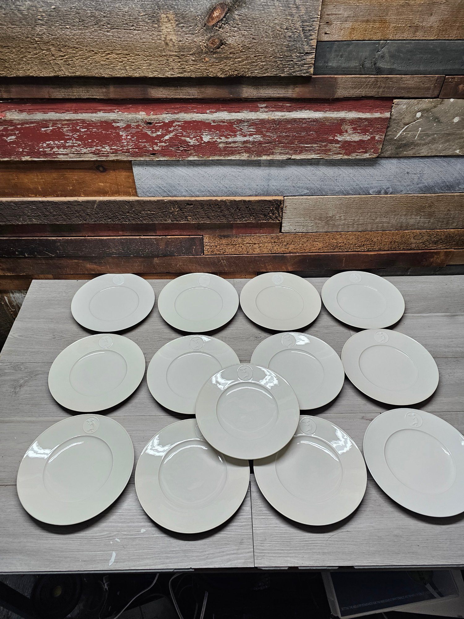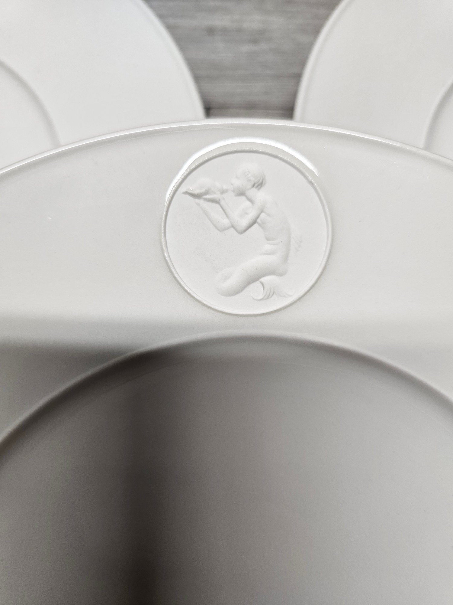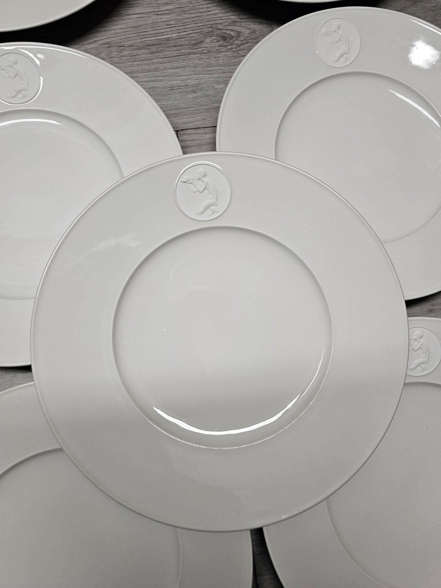 Lot Of 13 Berlin KPM Arkadia Pattern Merman Blowing - White Porcelain Plates 9" A3