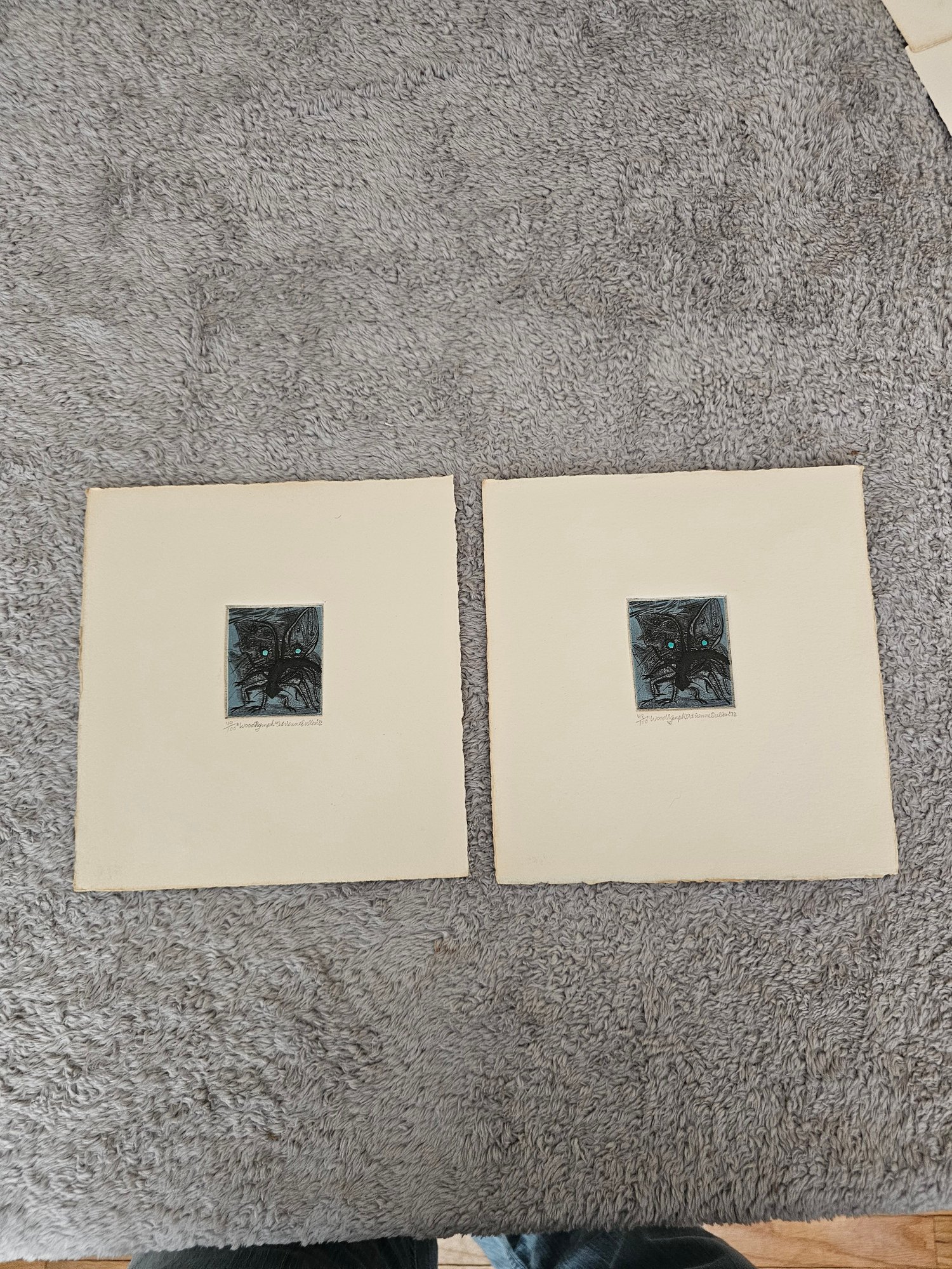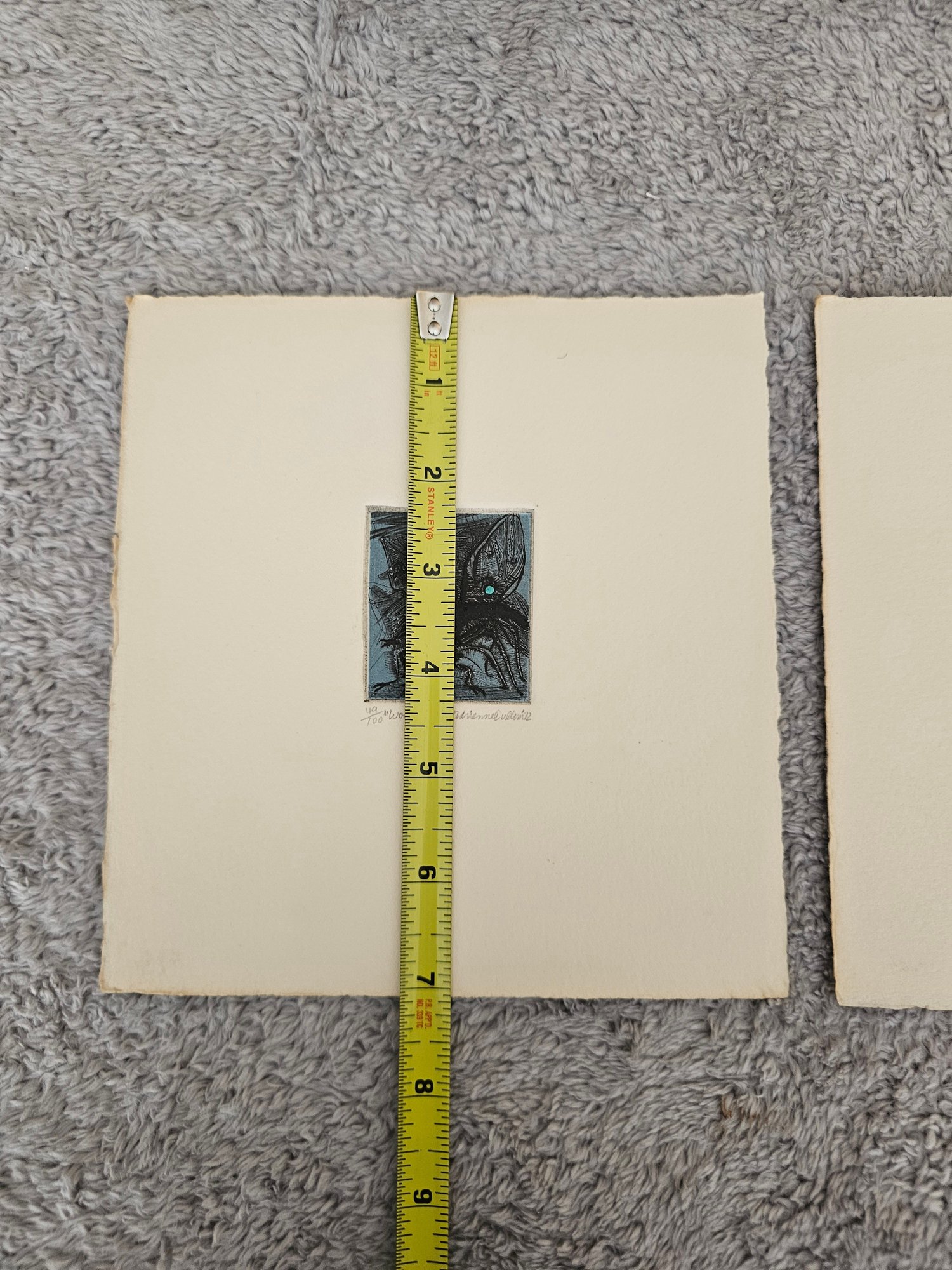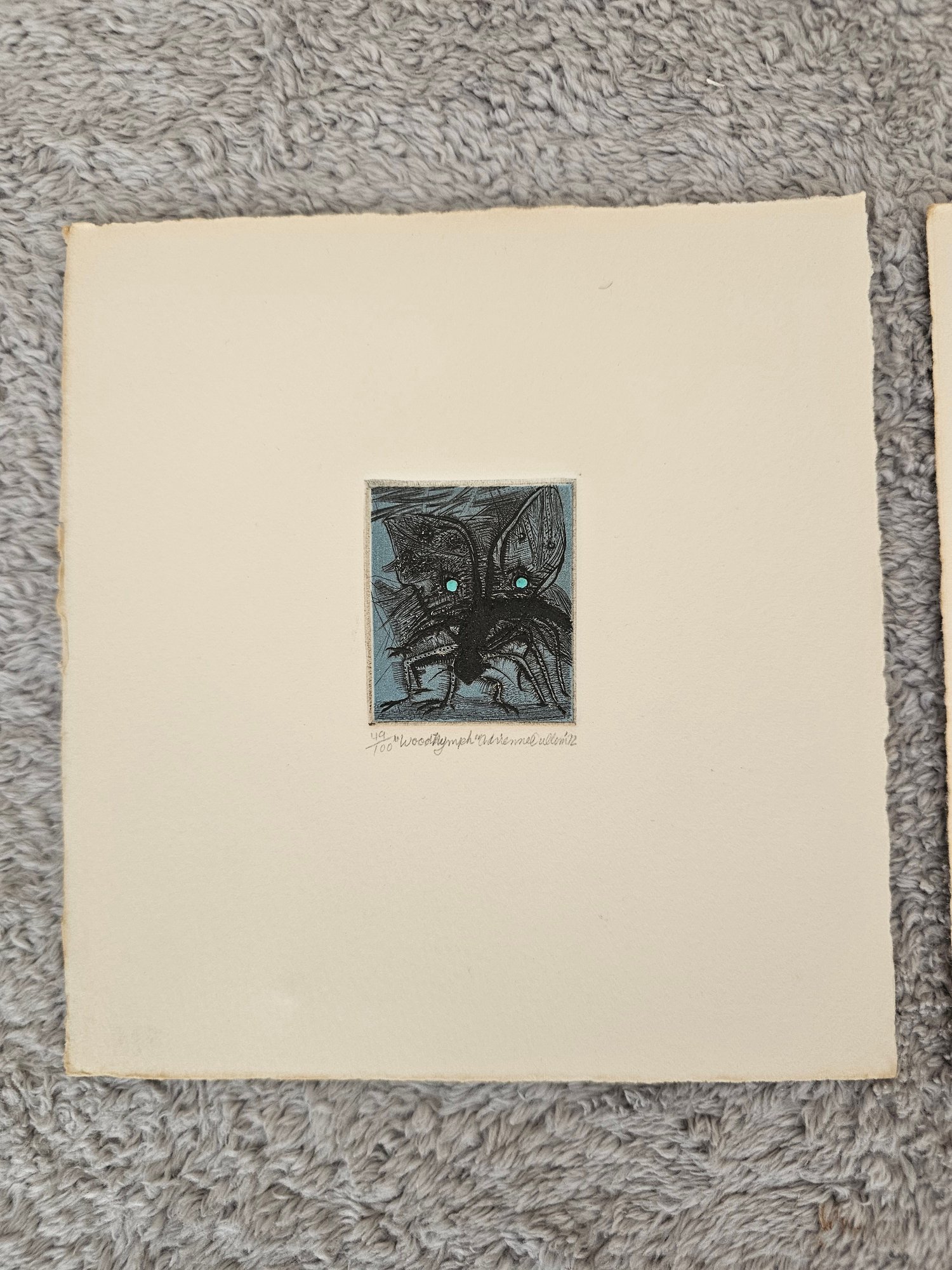 Lot Of 2 1972 Adrienne Cullom Wood Nymph Embossed Etchings 48,49/100 E63