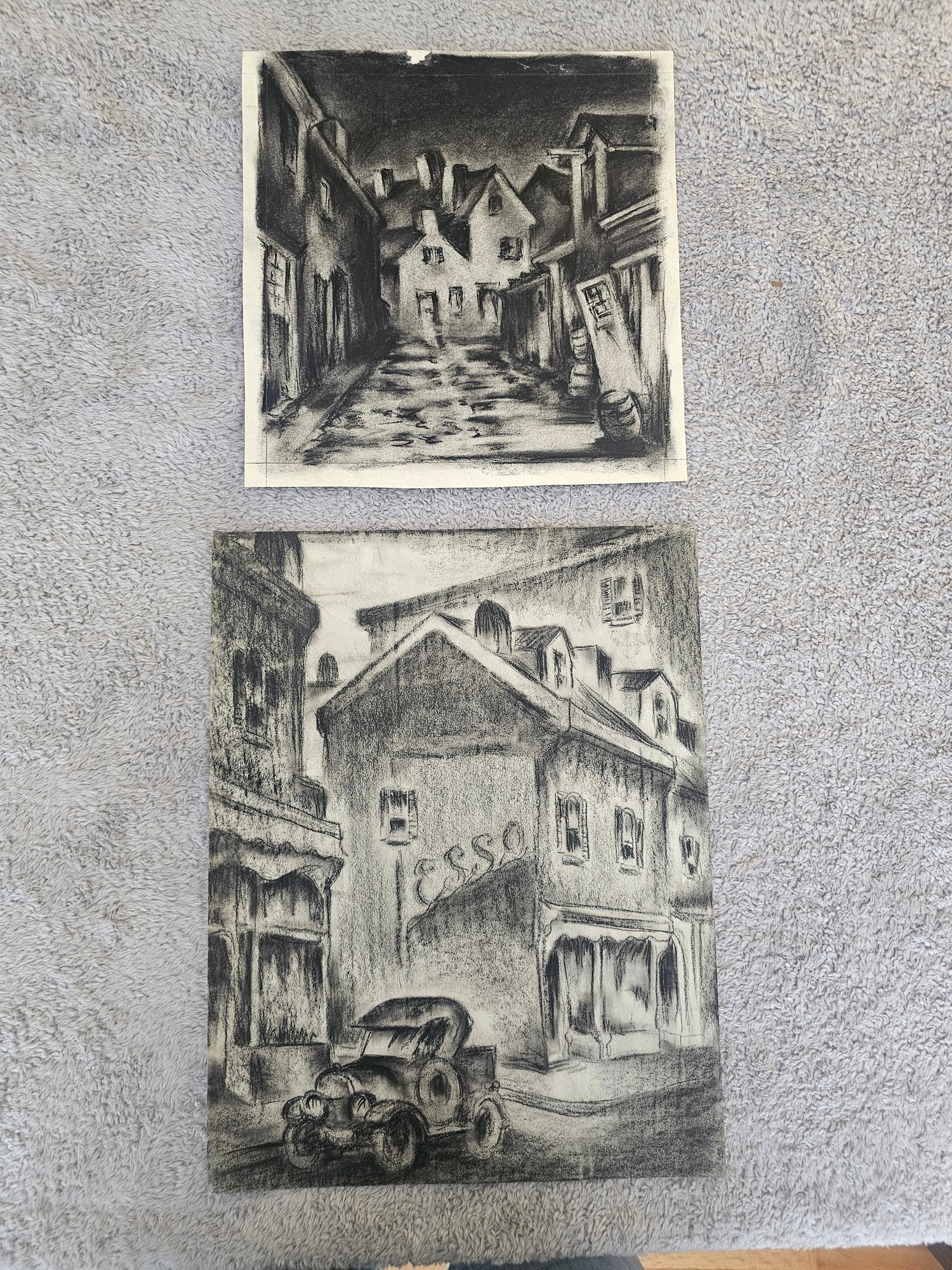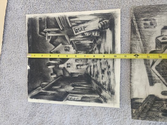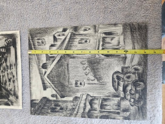 Lot Of 2 Unsigned Etchings? Charcoal? D86