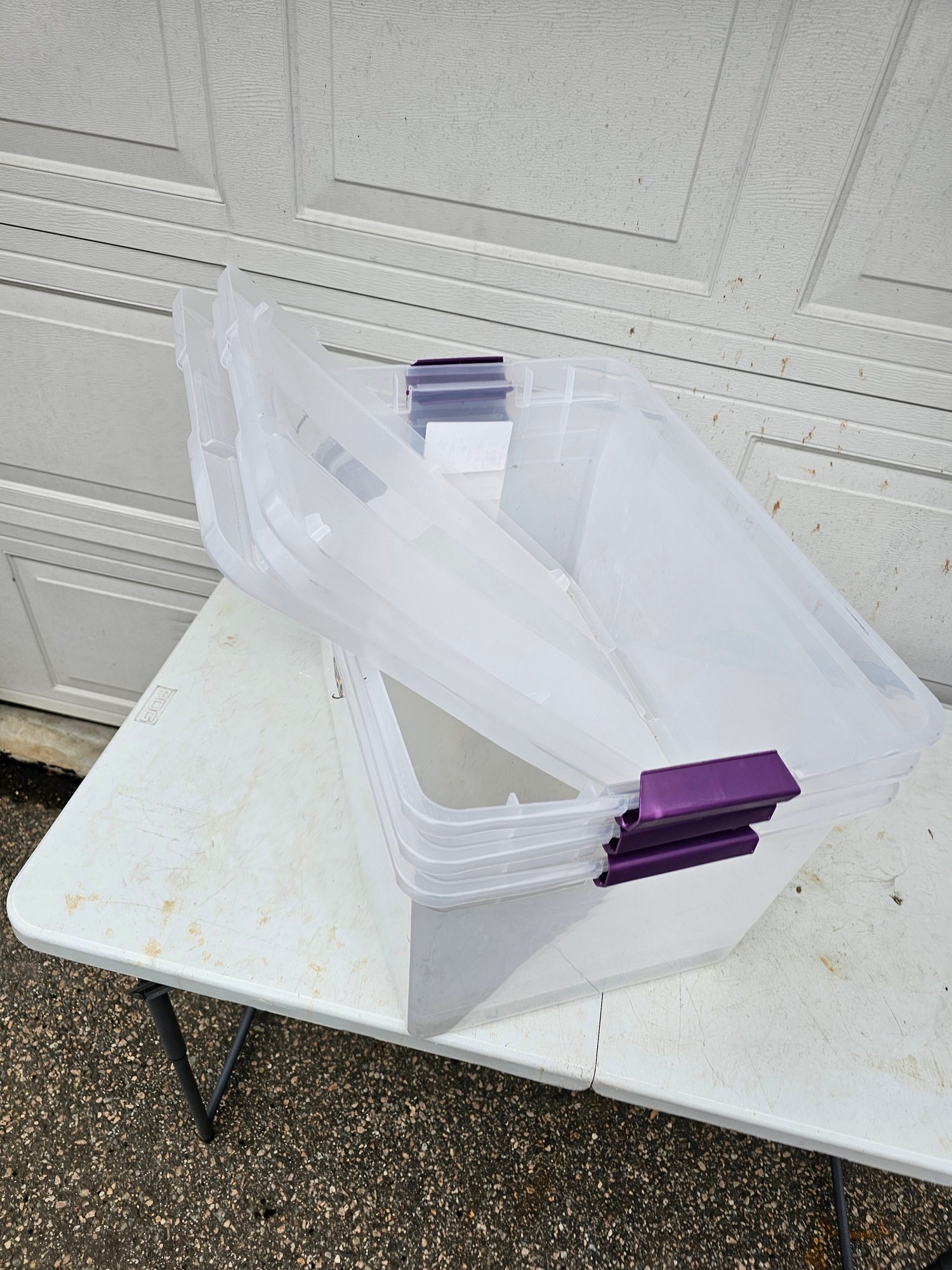 Lot Of 3 Clear Sterilite 66 Quart Bins With Lids