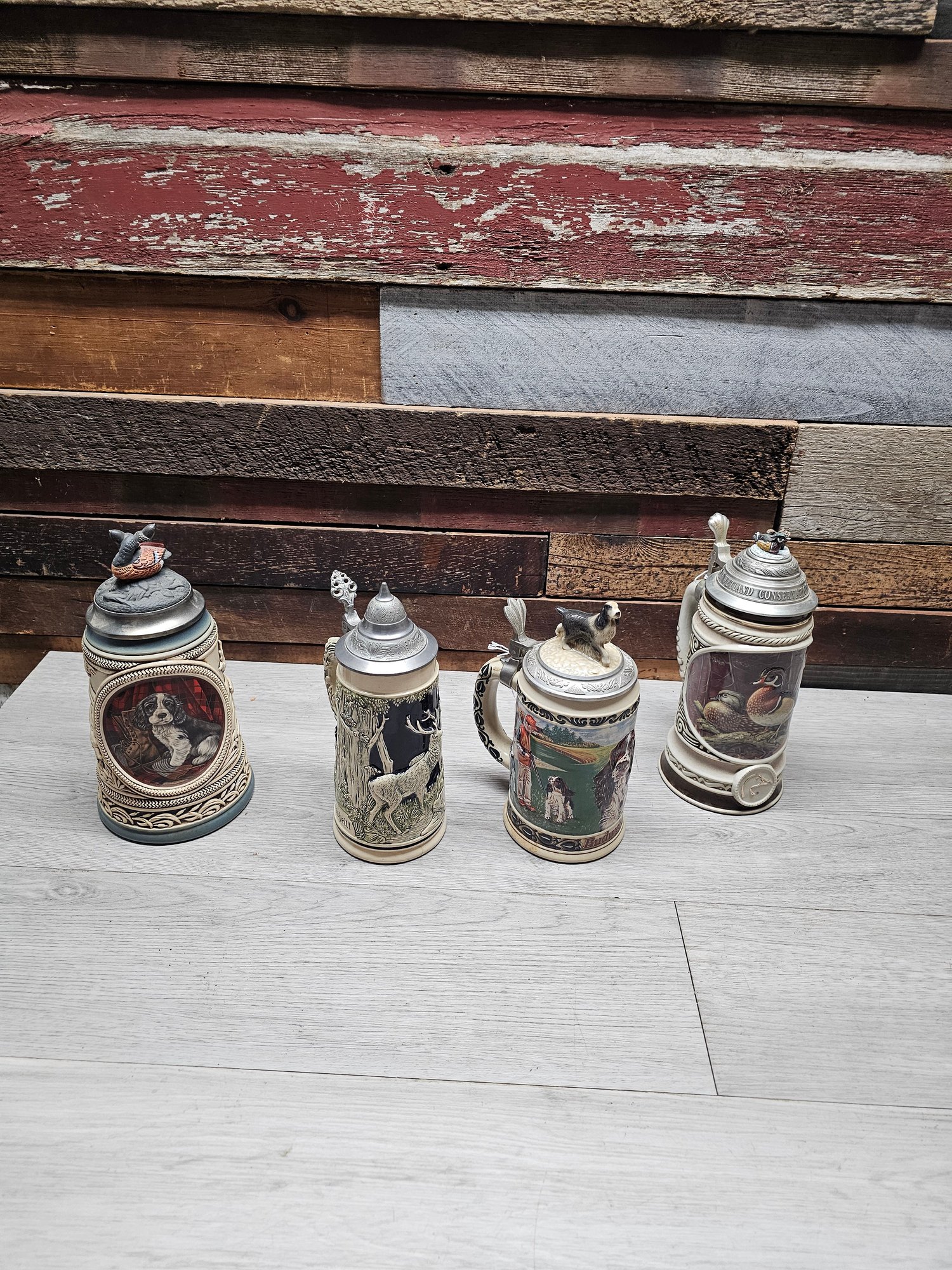 Lot Of 4 Very Nice Hunting Theme Steins A1