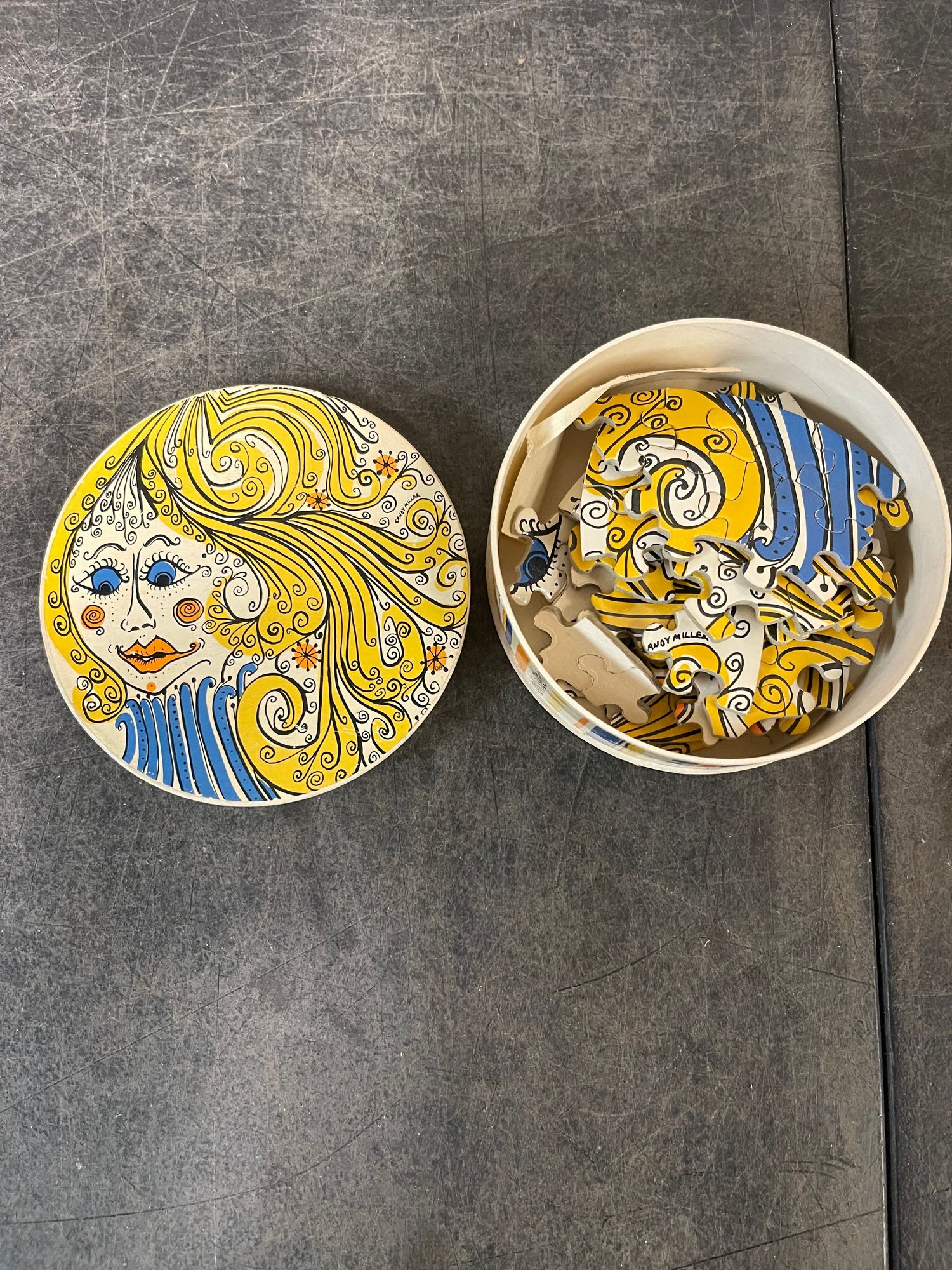 "Mod Thingies" Circular Jigsaw Puzzles, Designed By Sandy Mille Lot Of 2 (K1)
