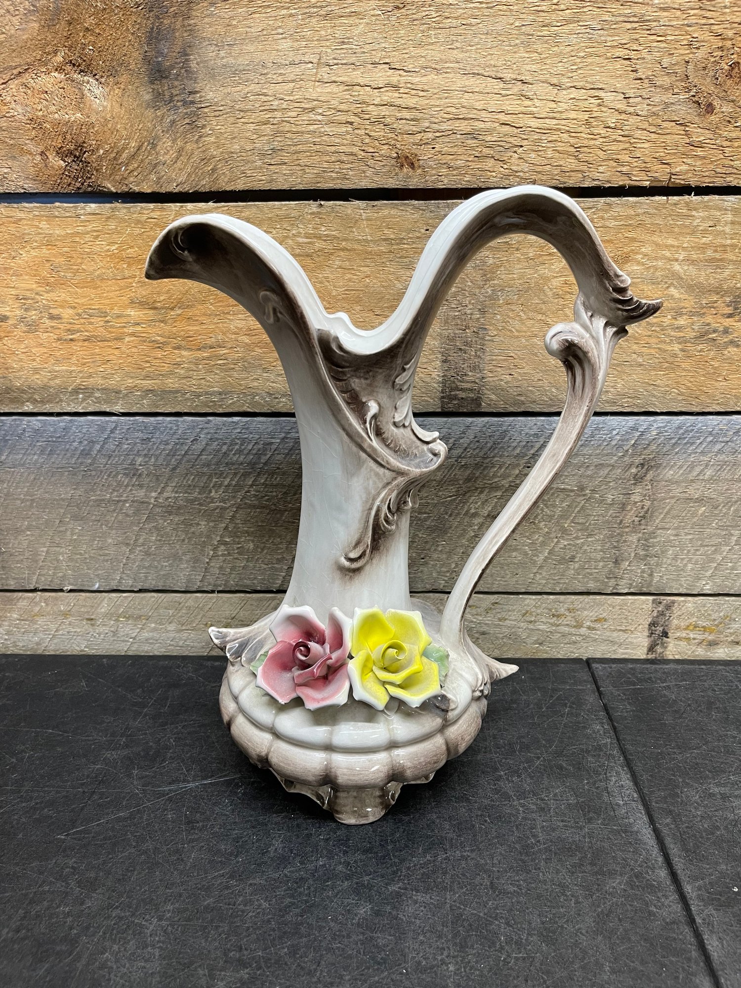Porcelain Pitcher Vase Vintage Nuova Capodimonte Fili Savastano C3