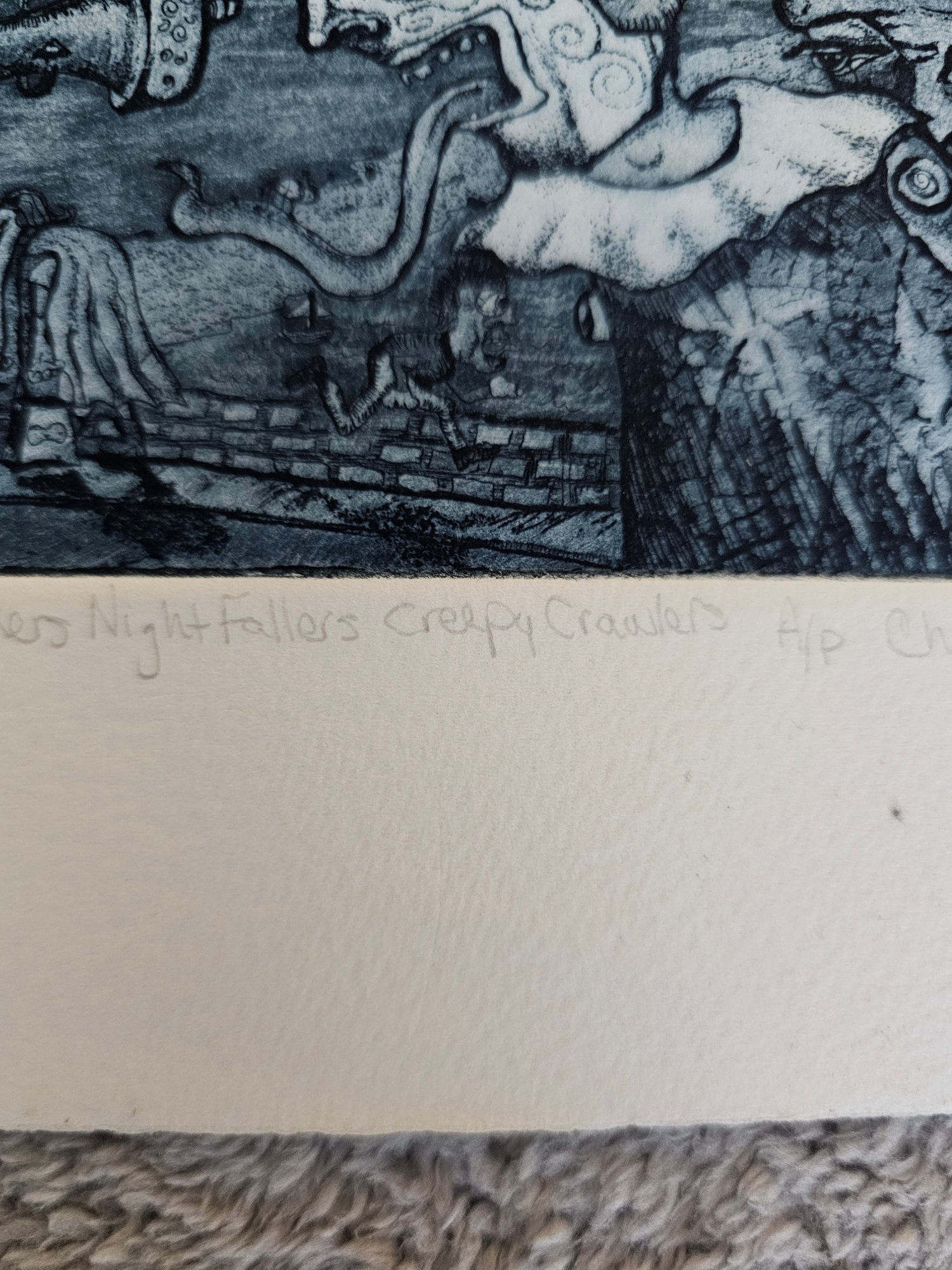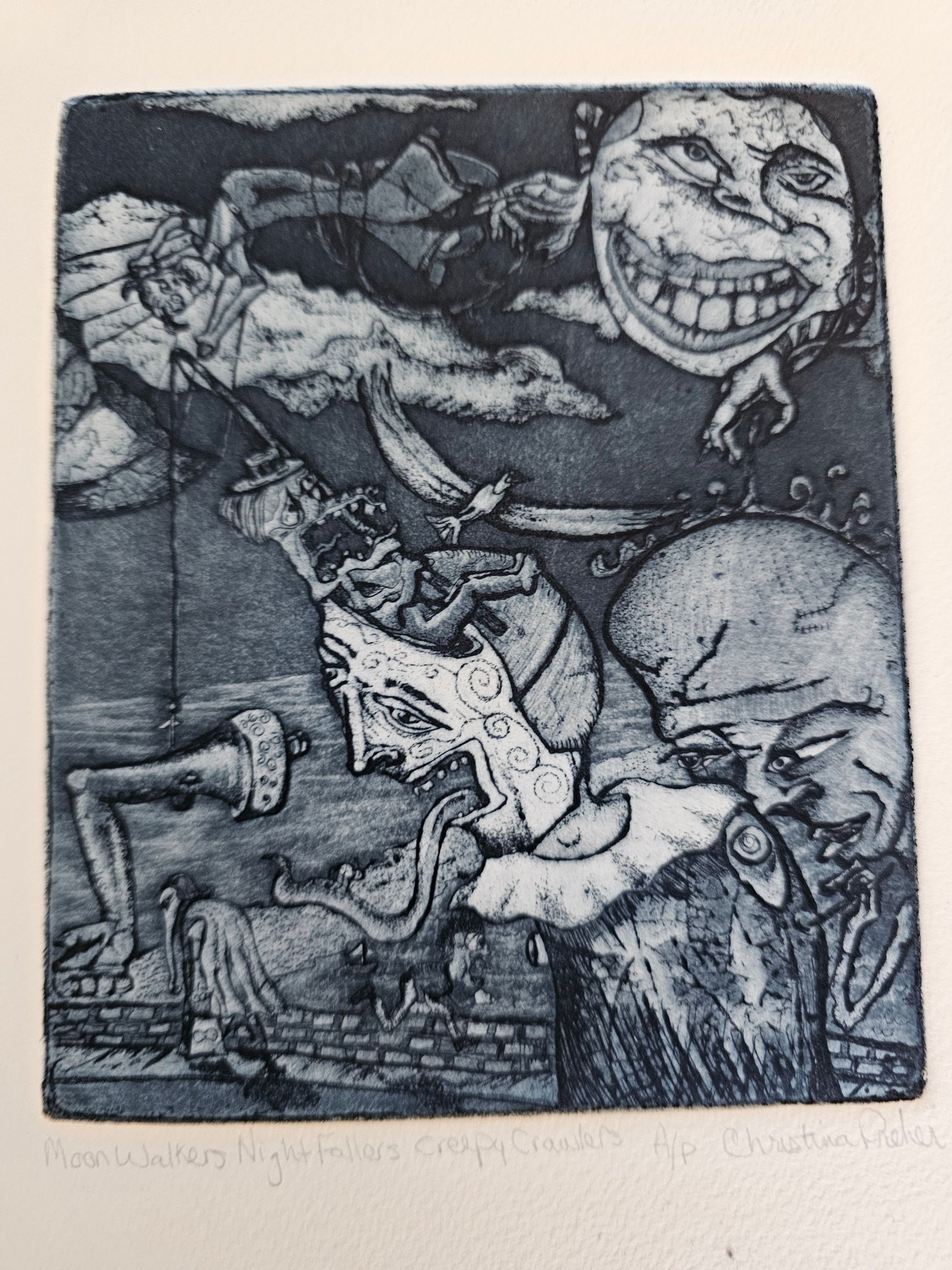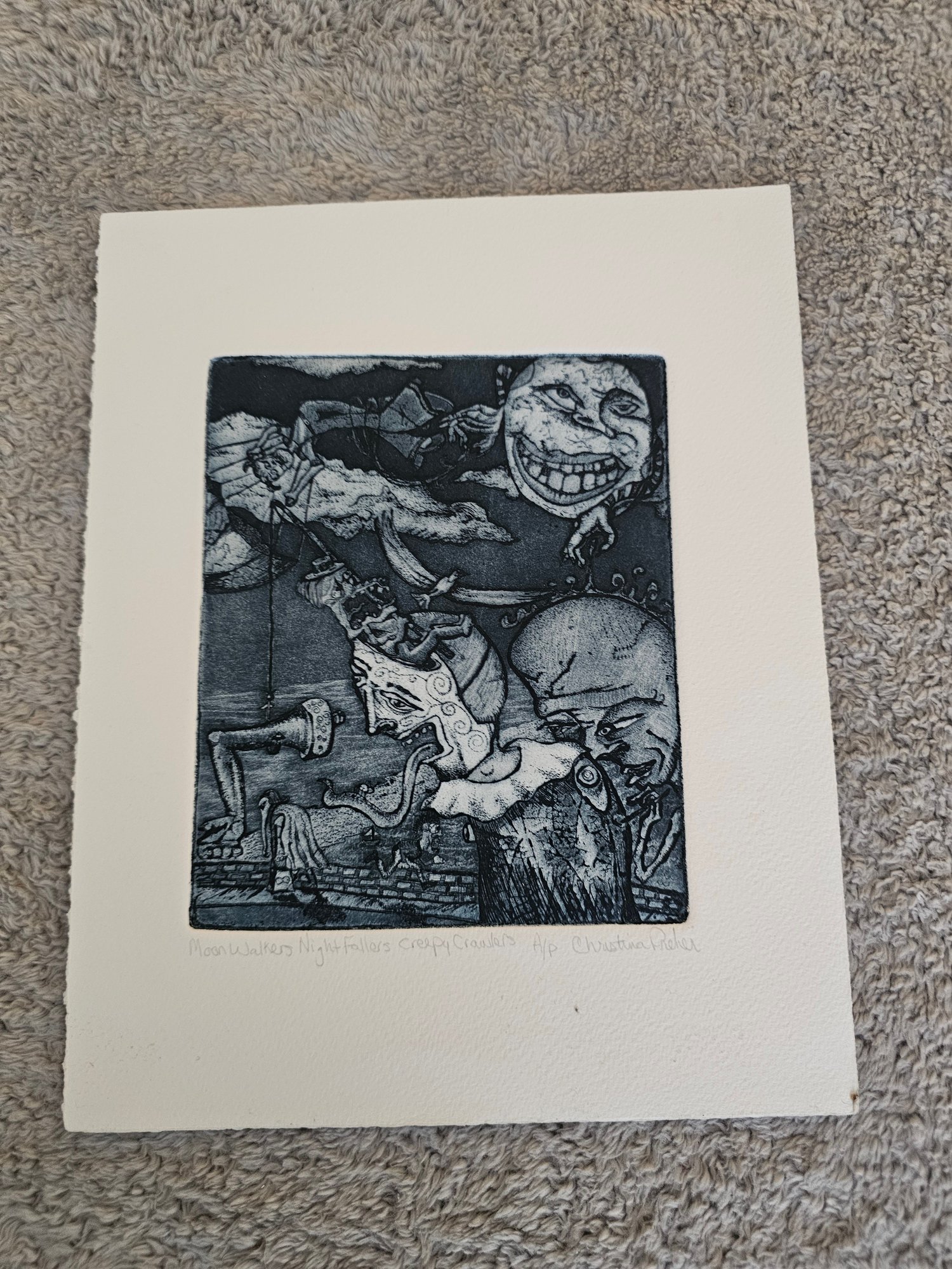 Rare Artist Proof Signed Etching Titled Moon Walkers Nigh Fallers Creppy Crawlers E27